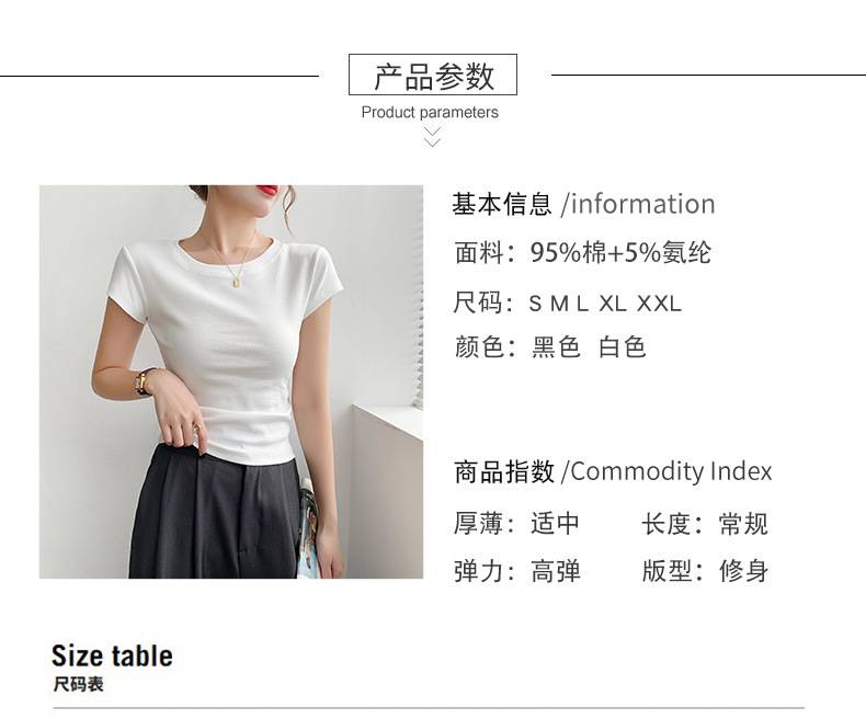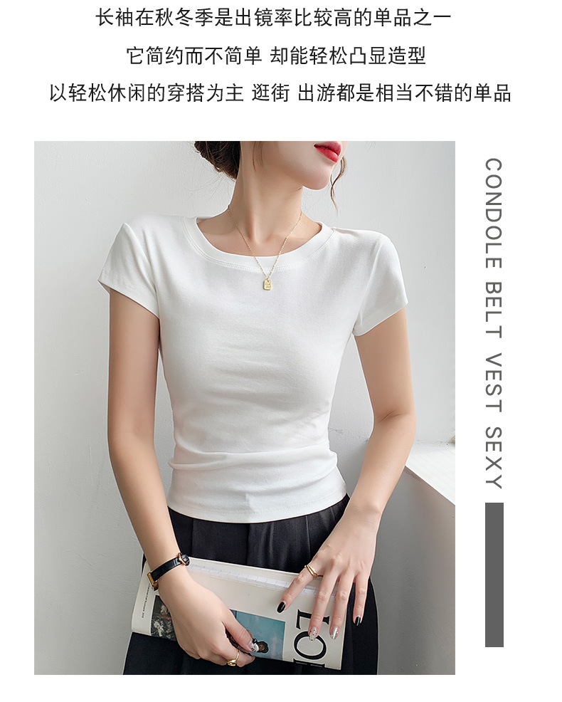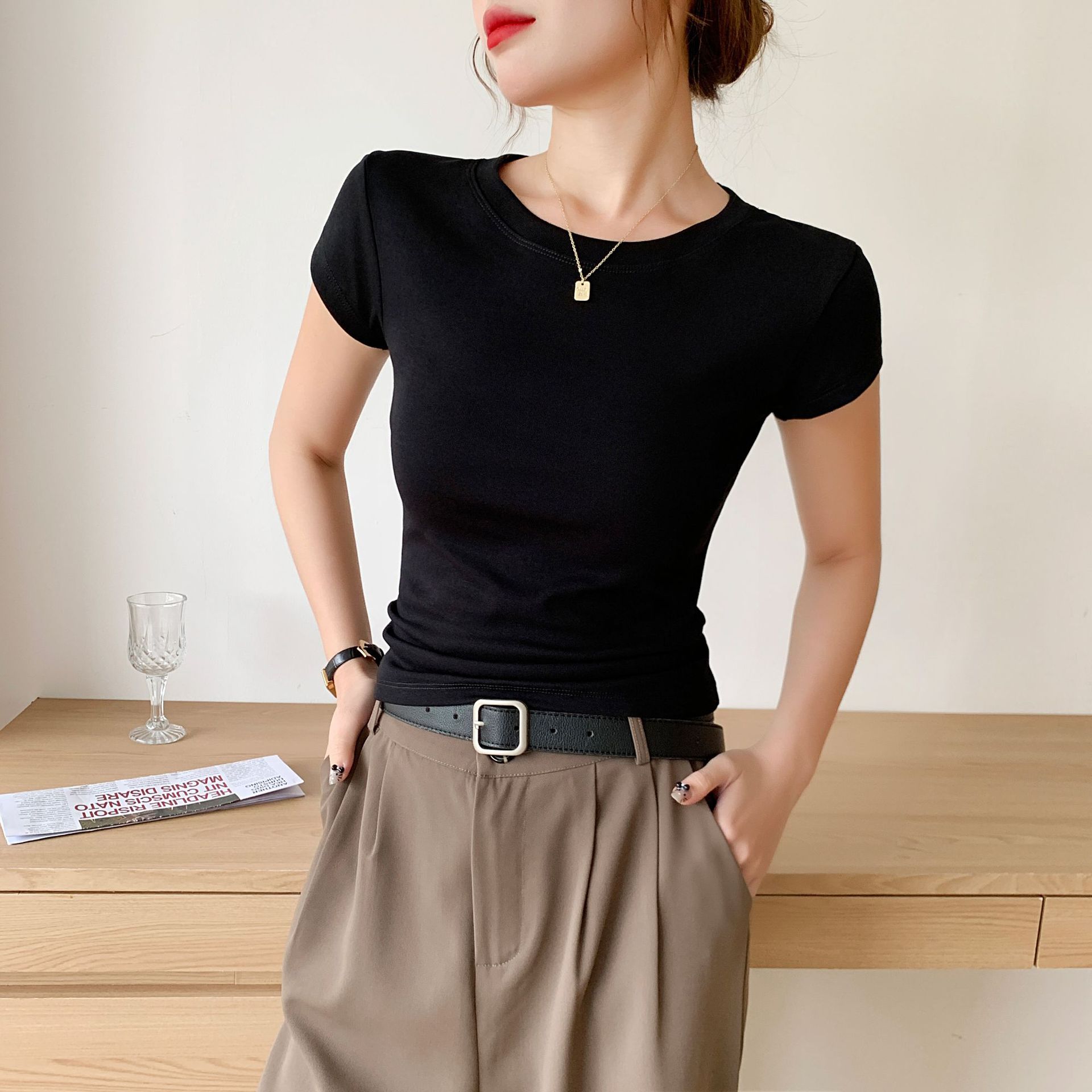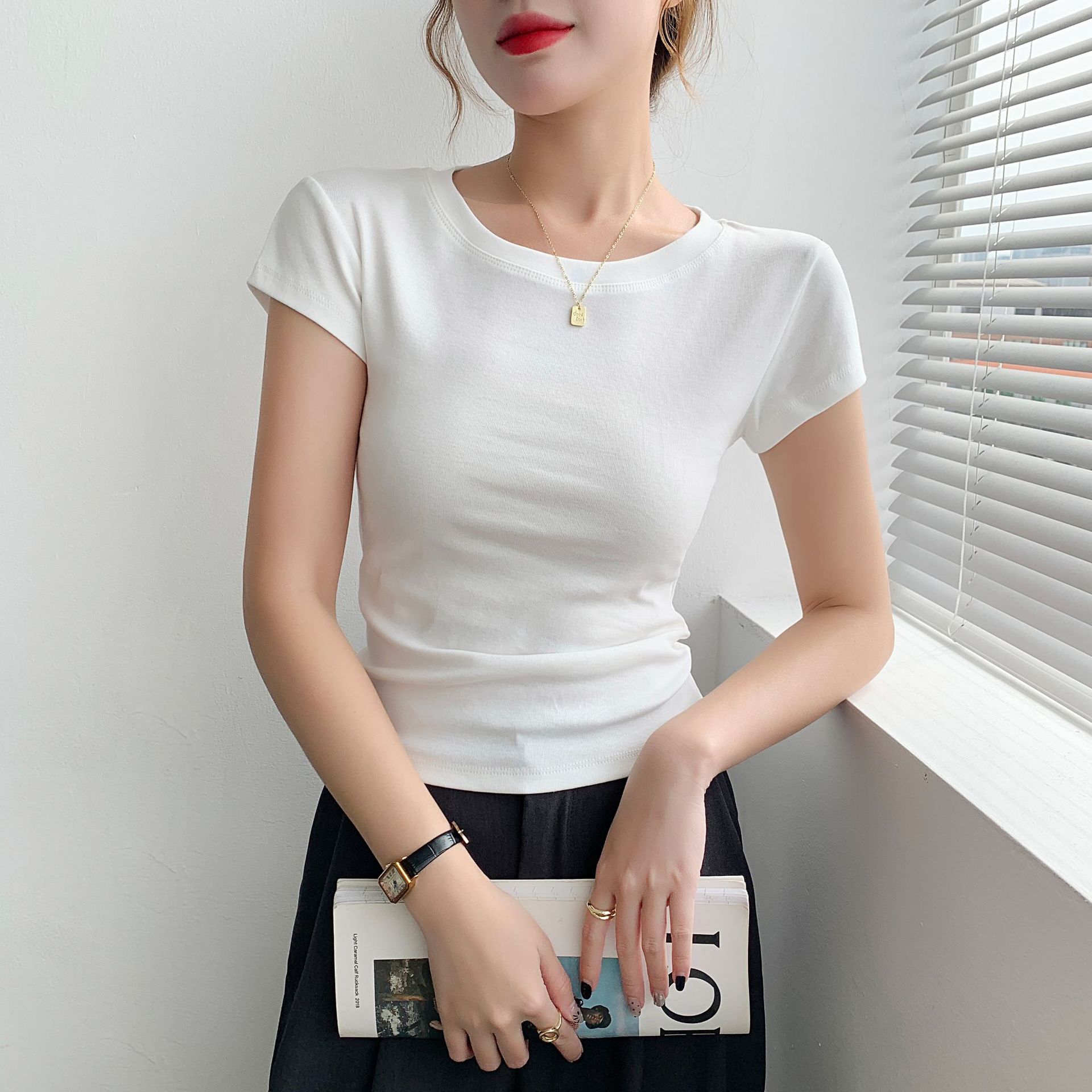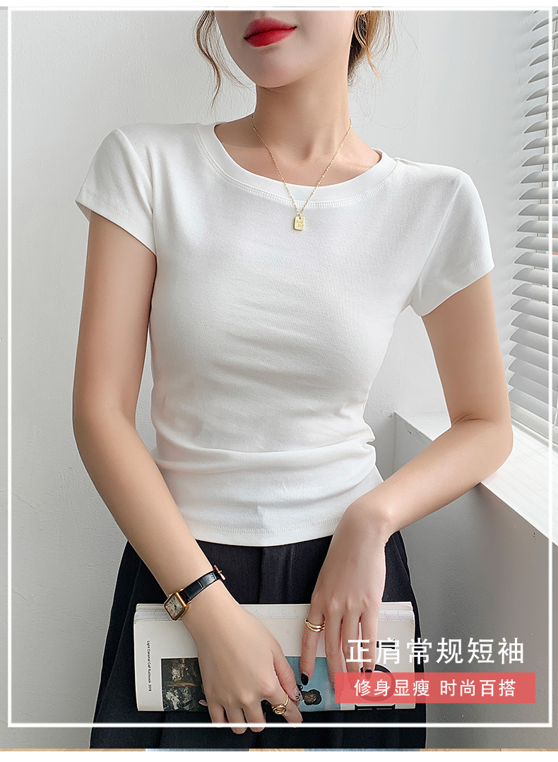 화이트 크루 넥 반팔 티셔츠 여성 2025 년 봄과 여름 새로운 슬림 디자인 센스 타이트 허리 슬림 숄더 탑