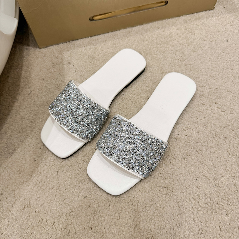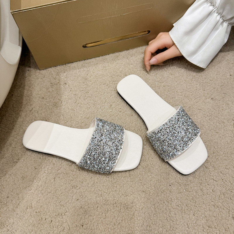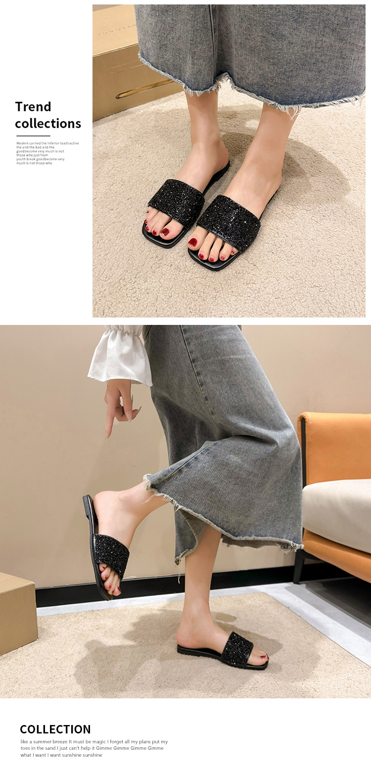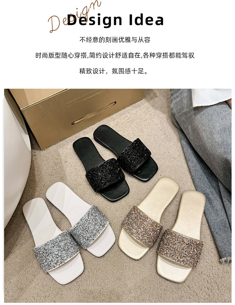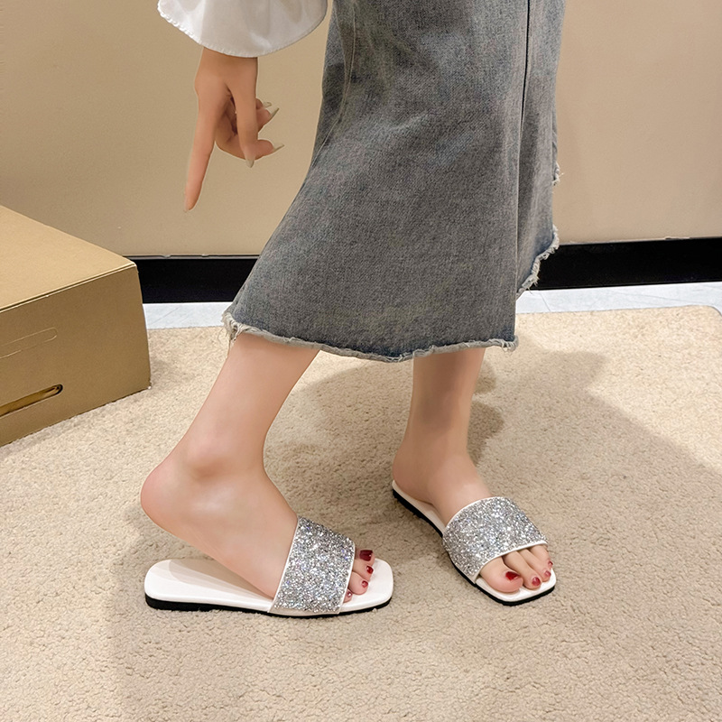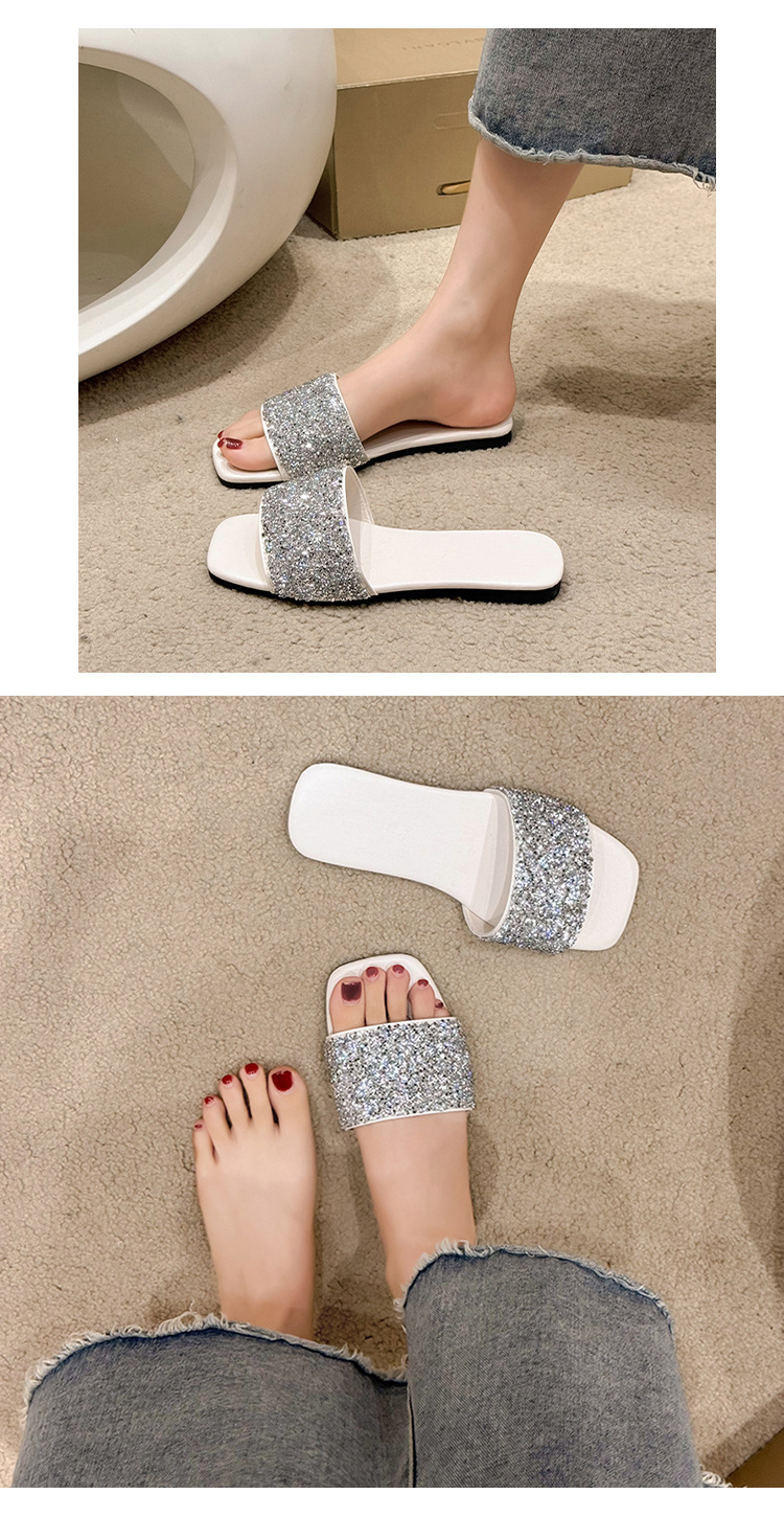 여성 플랫 슬리퍼 새로운 패션 골든 라인스톤 간단한 편안한 비치 여성용 플랫 슬리퍼 플러스 사이즈스토어 가기