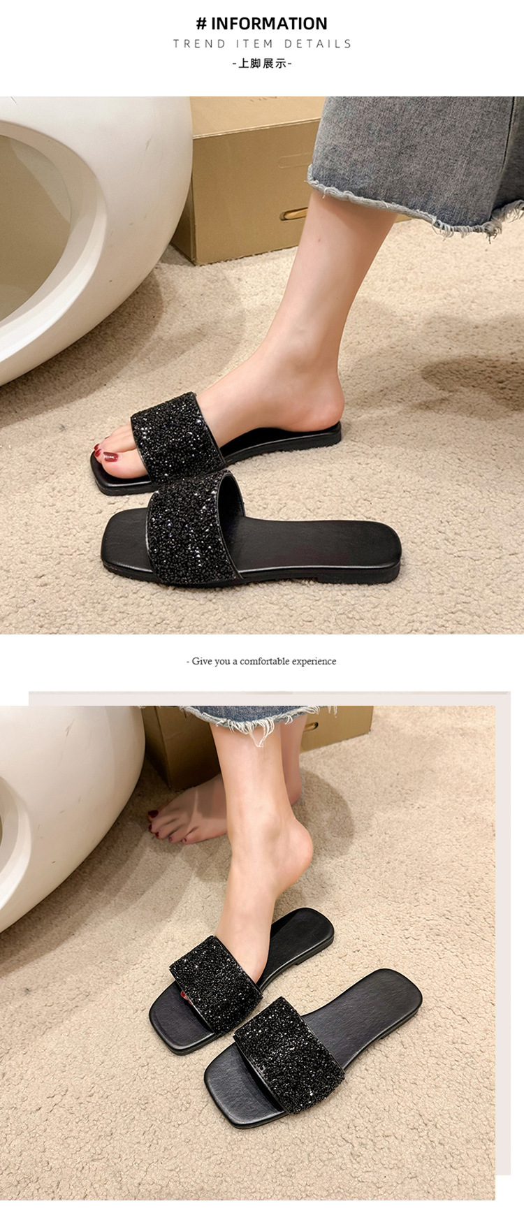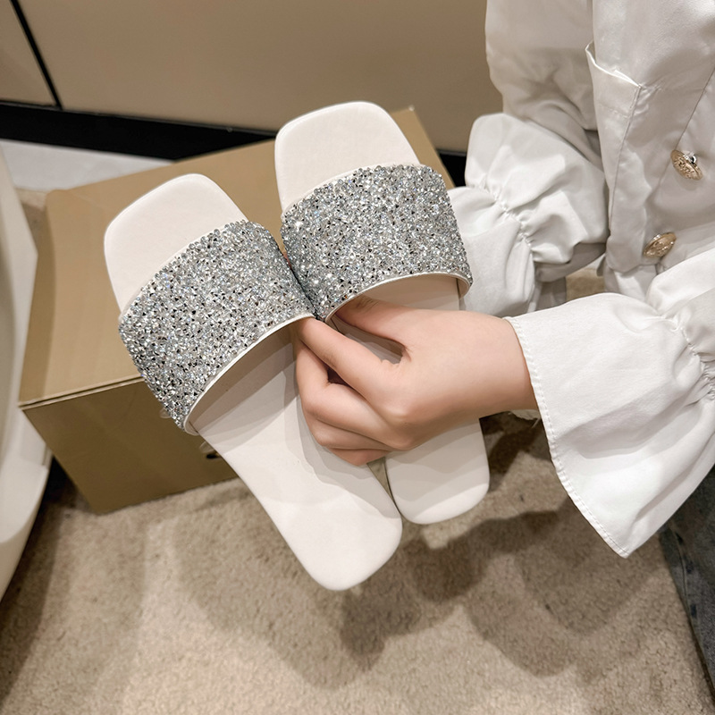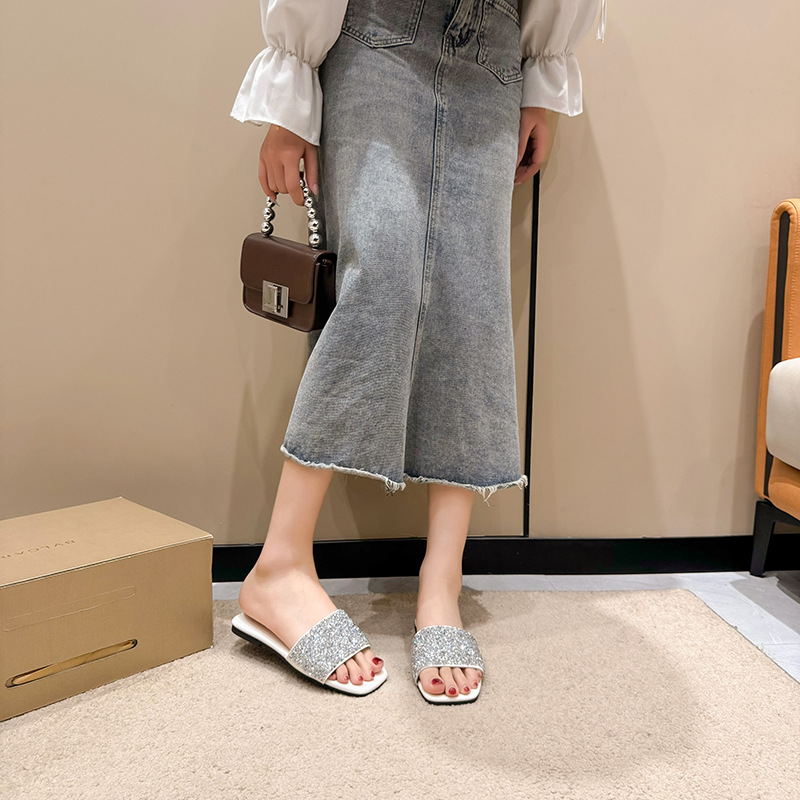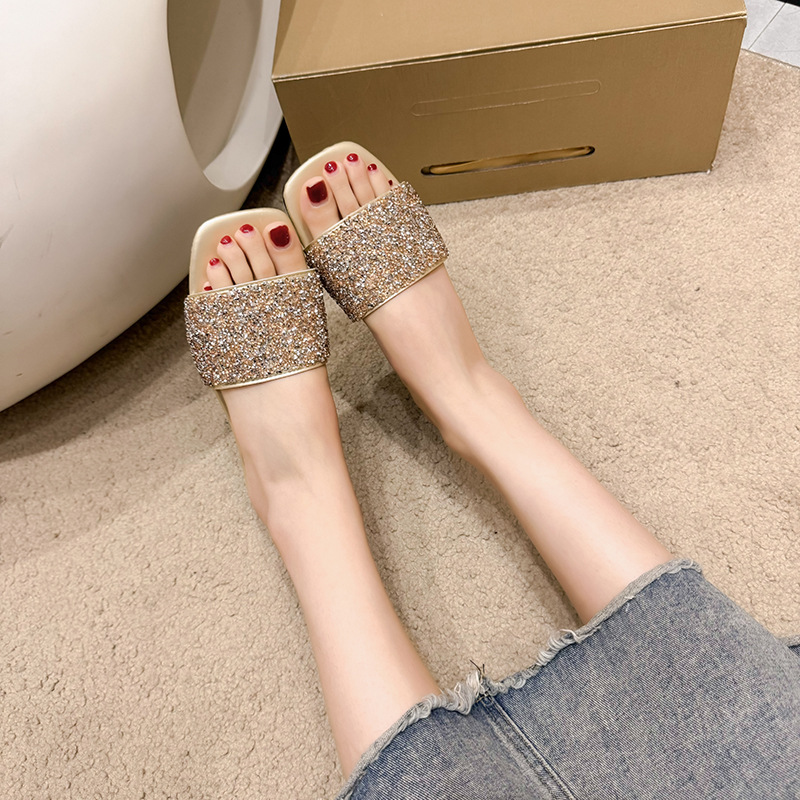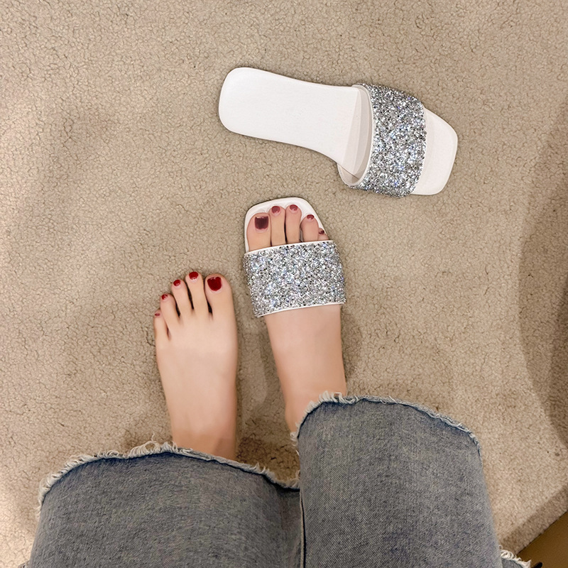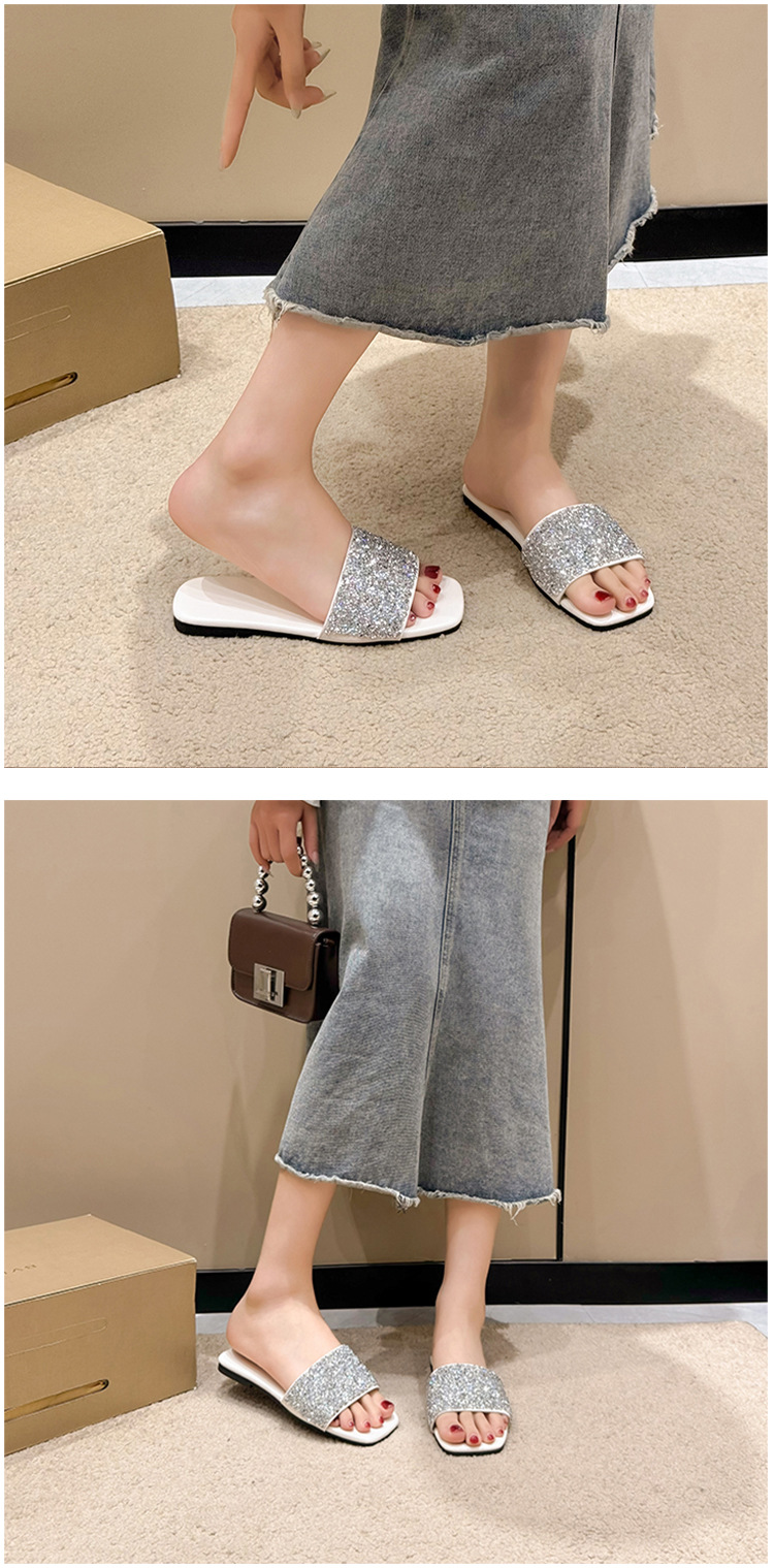 여성 플랫 슬리퍼 새로운 패션 골든 라인스톤 간단한 편안한 비치 여성용 플랫 슬리퍼 플러스 사이즈스토어 가기