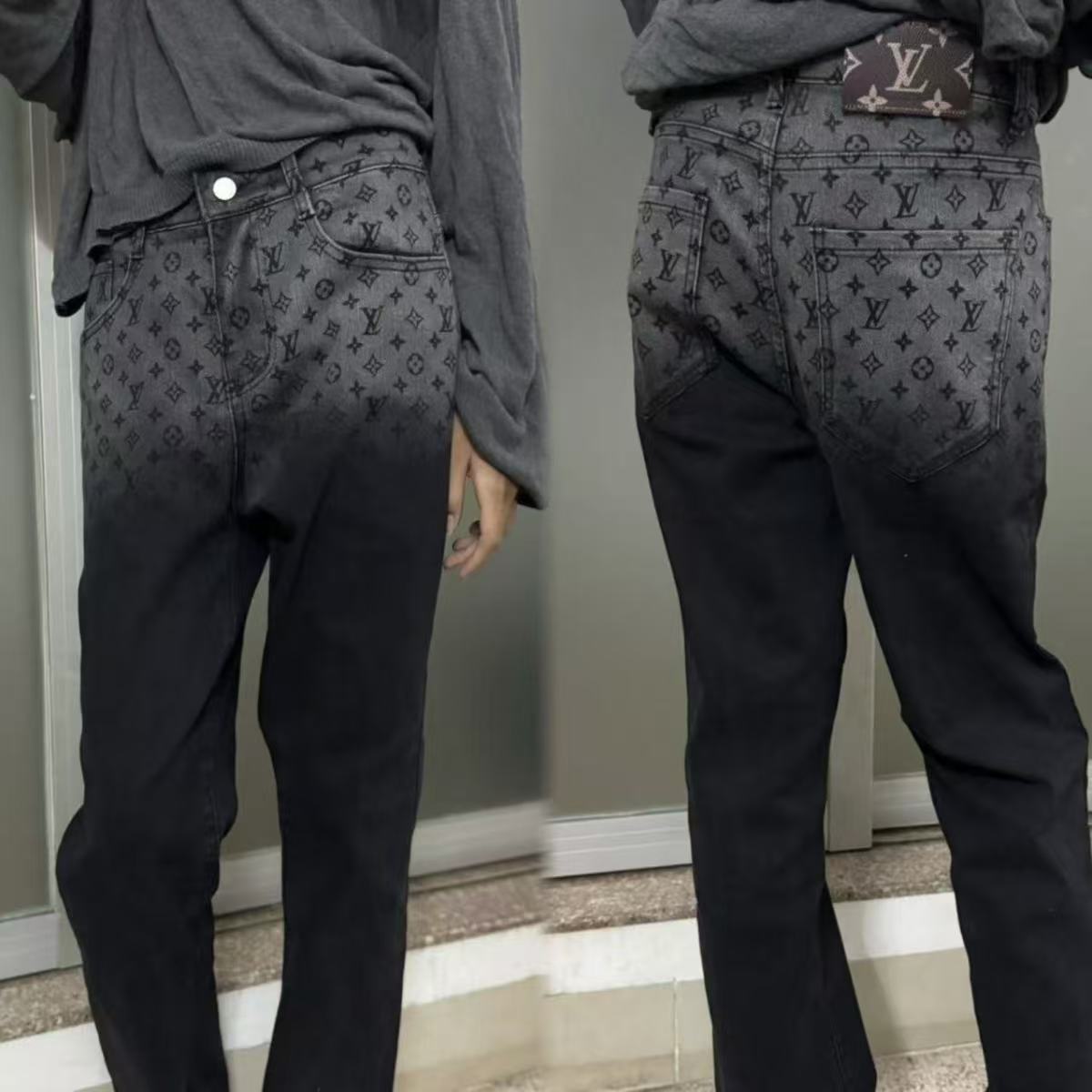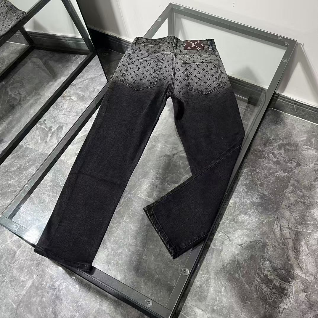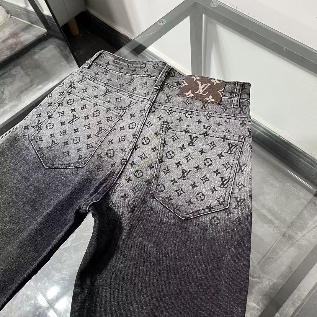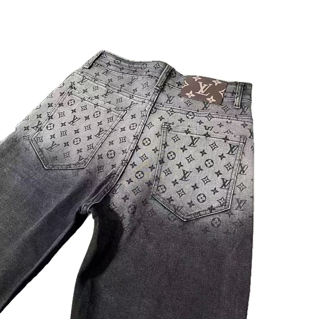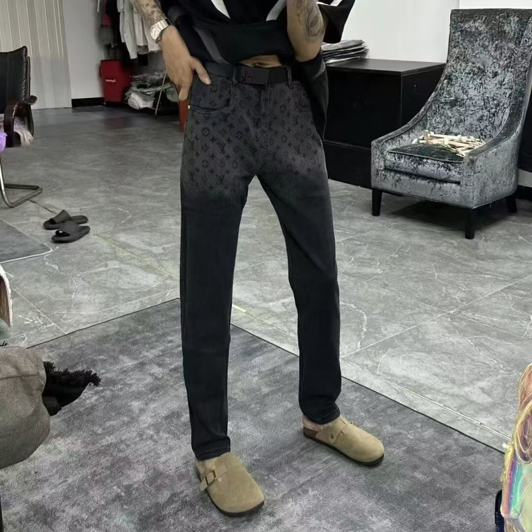 2025 새로운 패션 브랜드 청바지 자카드 스트레이트 튜브 풀 프린트 탄성 슬림 캐주얼 크롭 팬츠 라이트 럭셔리 바지스토어 가기