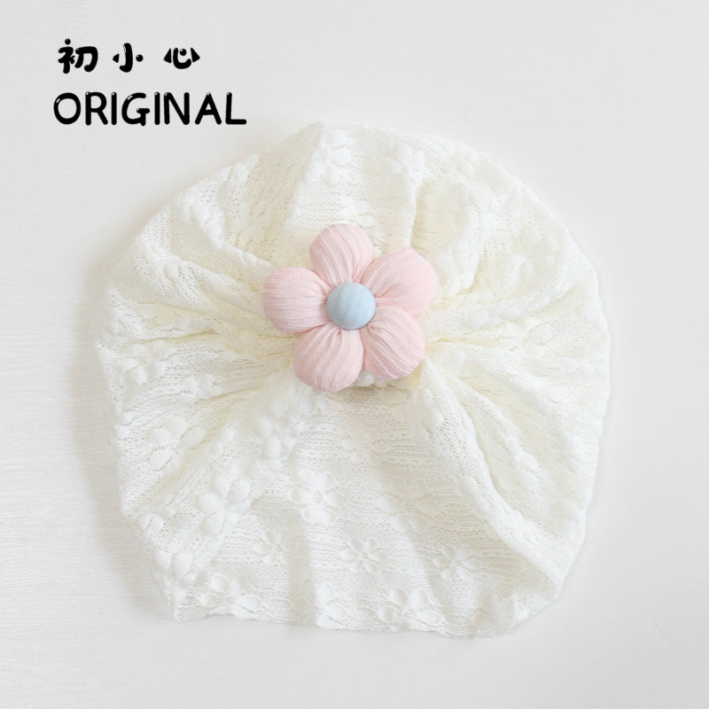 영유아 보호 모자, 여름용 얇은 신생아 부드럽고 통기성이 좋은 태아 모자, 아기 레이스 꽃 인도 모자스토어 가기