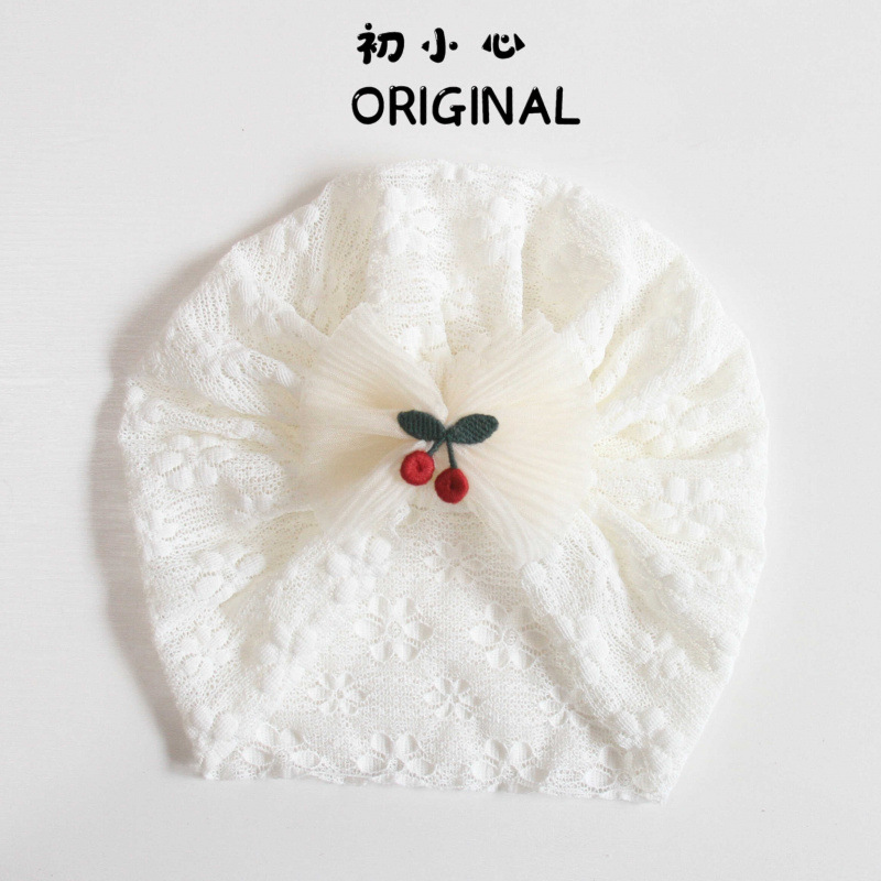 • 화이트 레이스 태아 모자 - 체리 리본