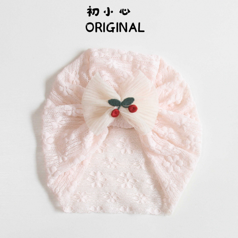 • 핑크 레이스 태아 모자 - 체리 리본