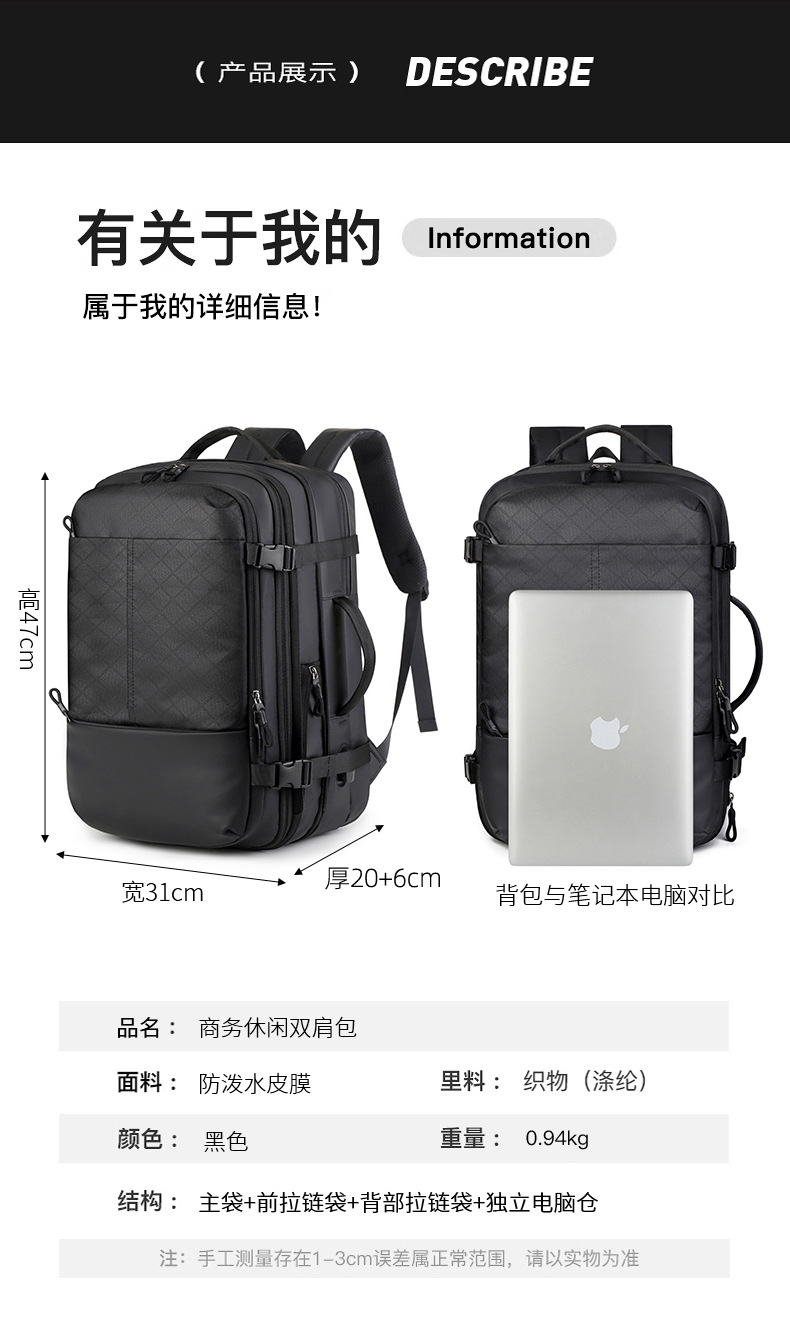 국경 간 배낭 확장 가능한 대용량 다기능 패션 배낭 여행 가방 캐주얼 가방 남자 배낭스토어 가기