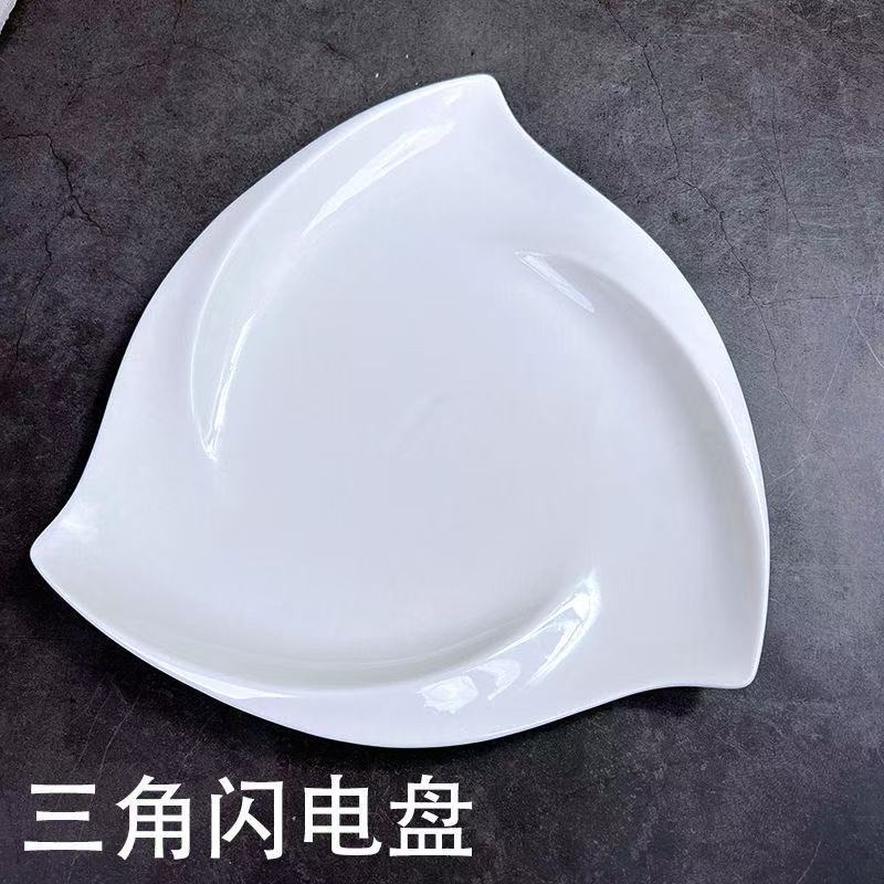 순백색 심플 세라믹 접시 삼각 접시 호텔 레스토랑 불규칙한 핫 접시 스낵 접시 스테이크 파스타 접시 차가운 요리