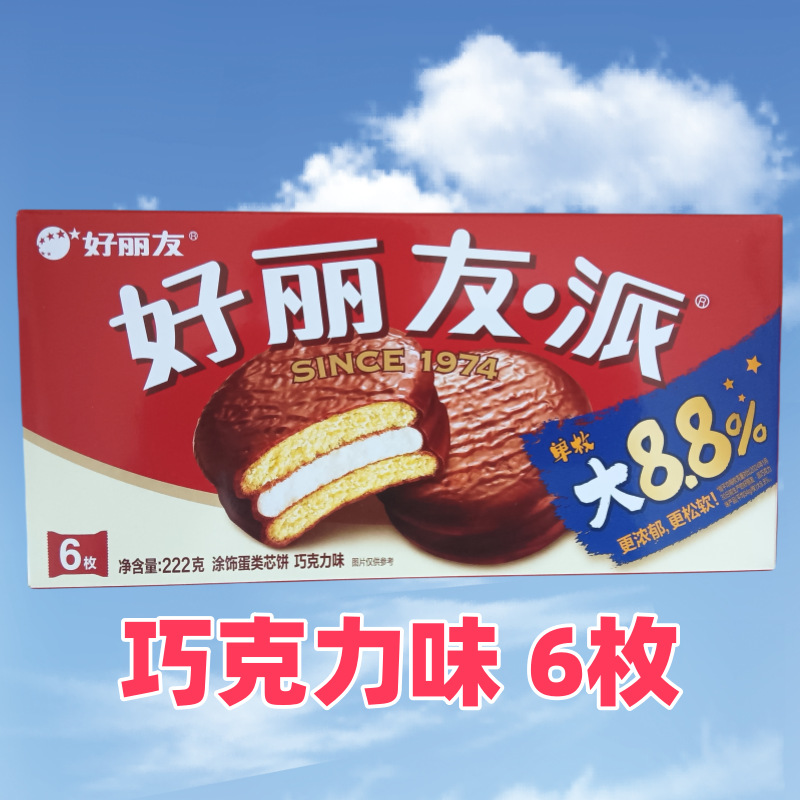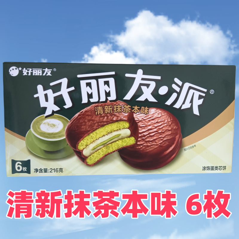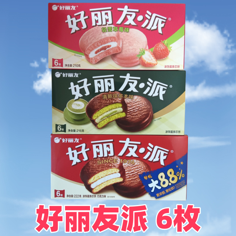 Haoliyou Pie 6 초콜릿 파이 Matcha 달걀 노른자 딸기 맛 아침 식사 케이크 도매 스낵스토어 가기
