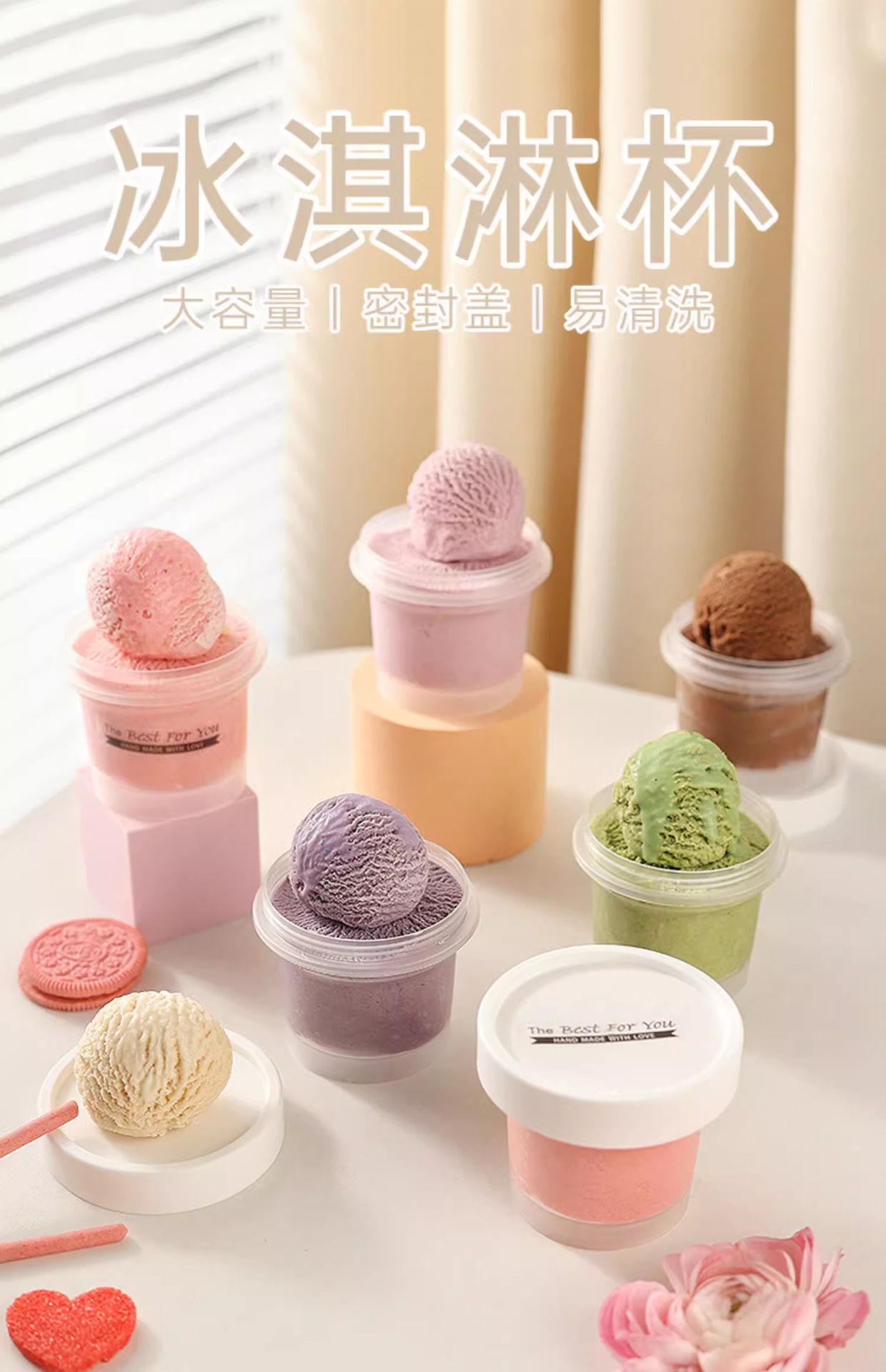 • 핑크 아이스크림 컵 10개 [무료 라벨 10개]