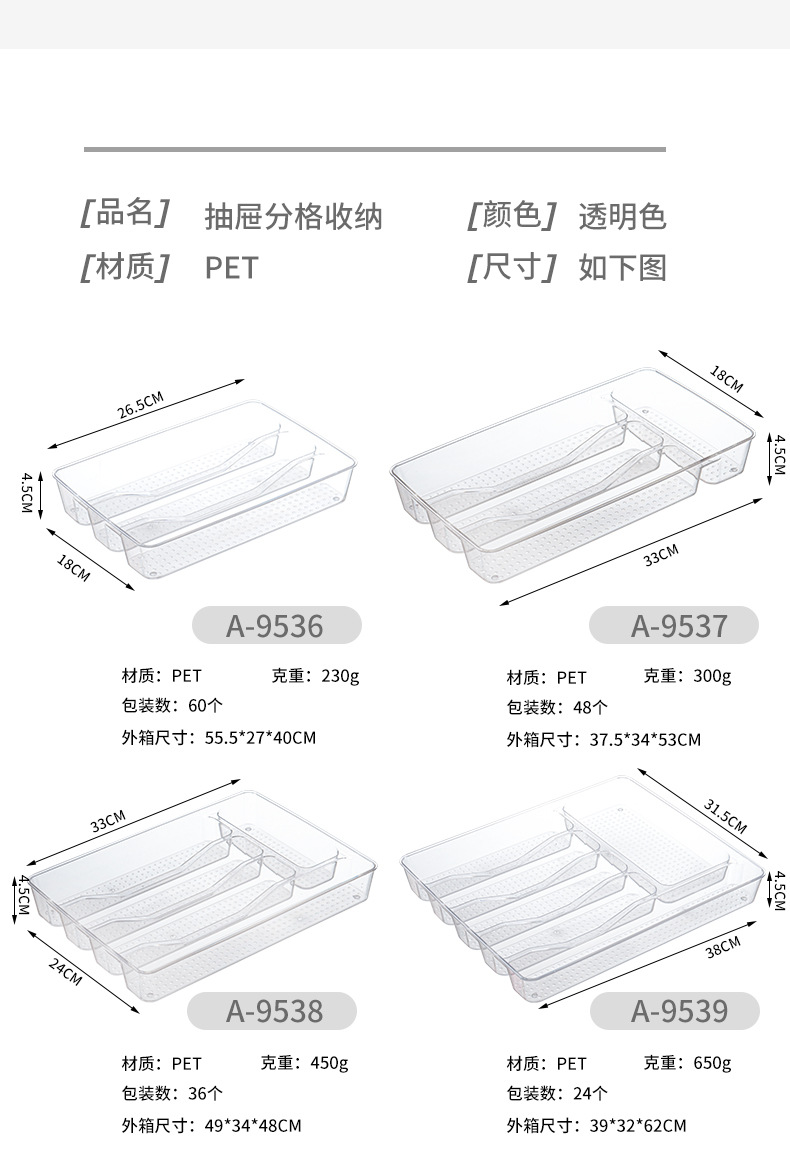투명 아크릴 PET 서랍 보관 상자 DIY 잡다한 식기 보관 및 정리 상자 데스크탑 문구 홈 주방