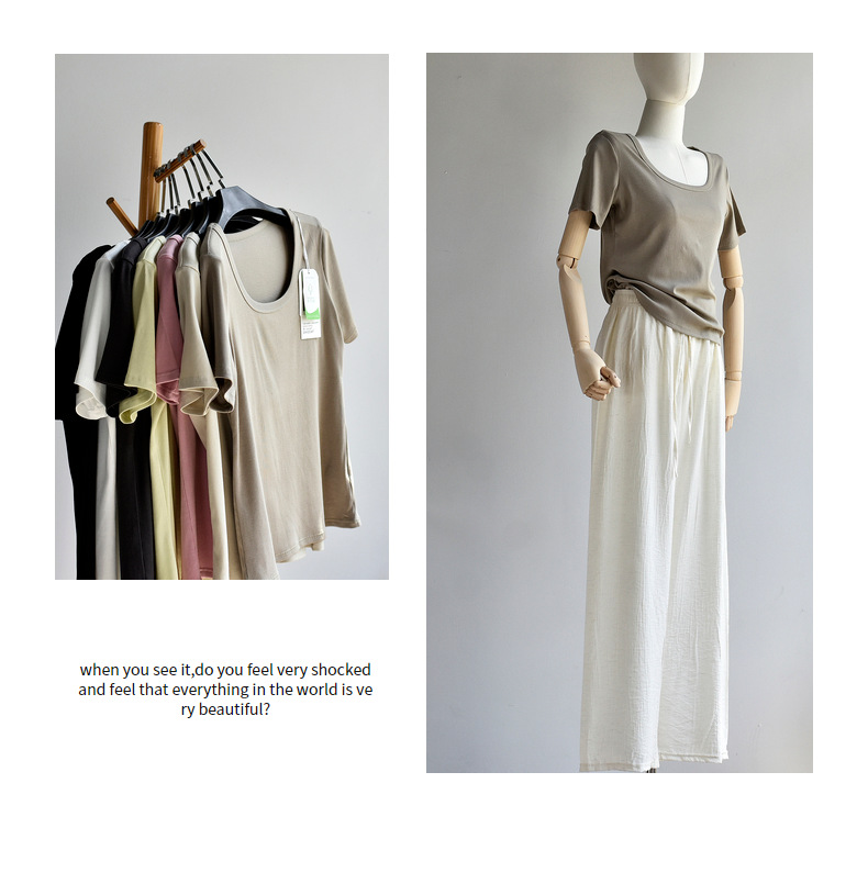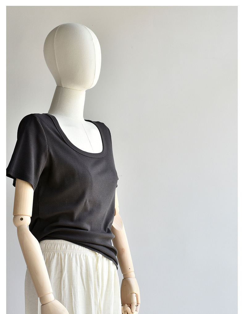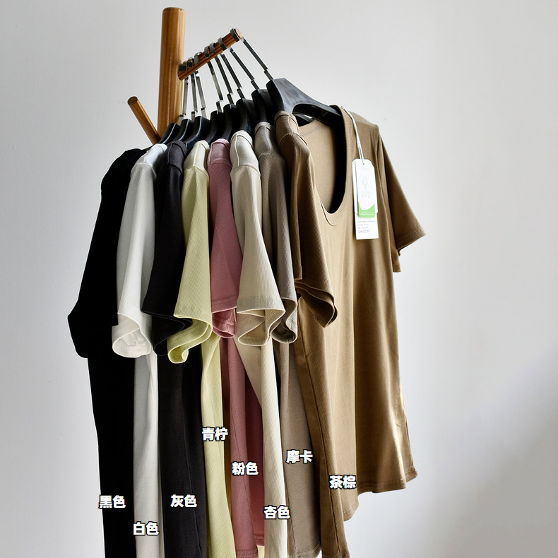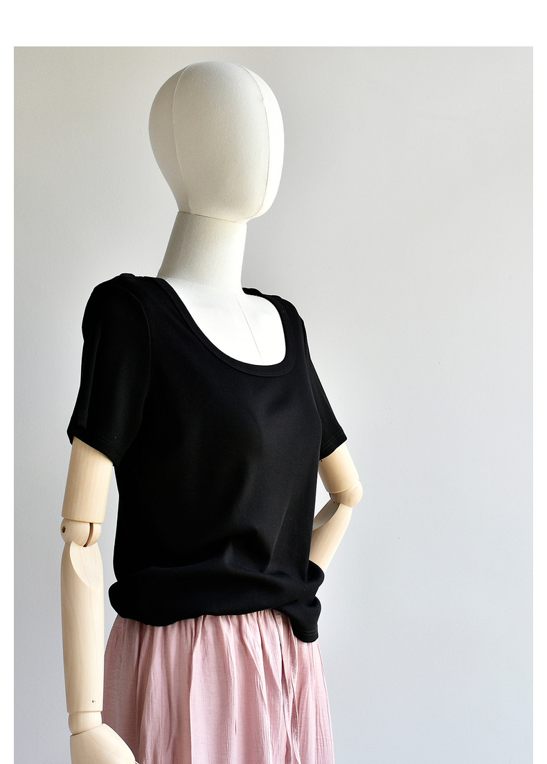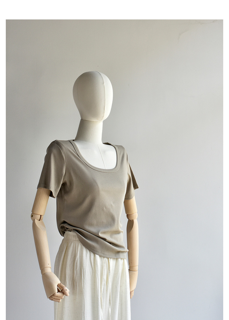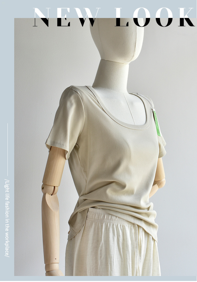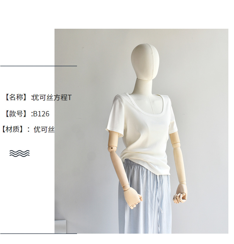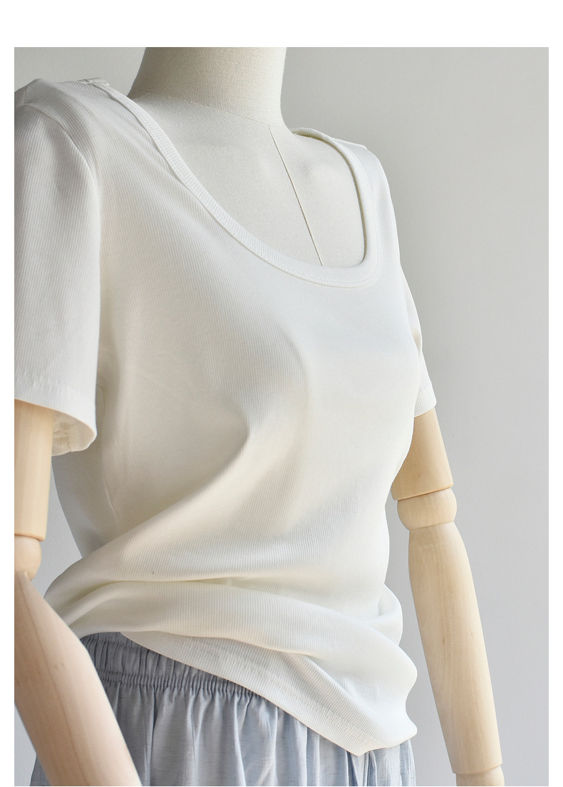 [유코시 방정식 T] 여름 새 여성 U-넥 스퀘어 넥 화이트 루즈 티셔츠 짧은 소매 낮은 목 어깨 탑스토어 가기