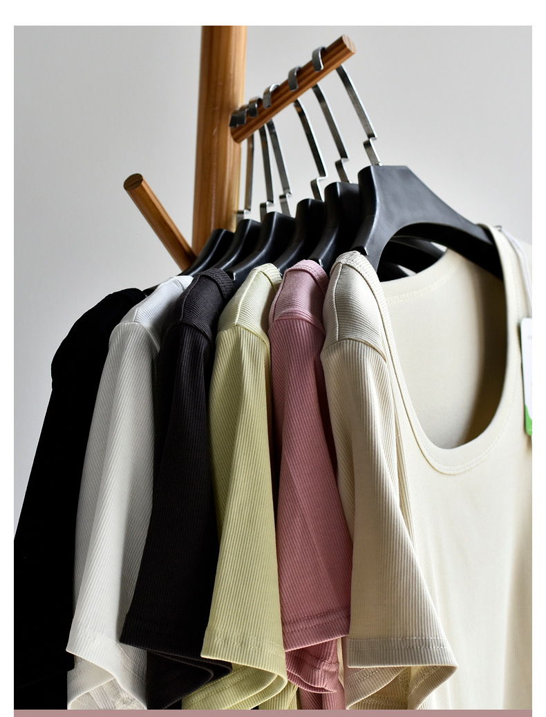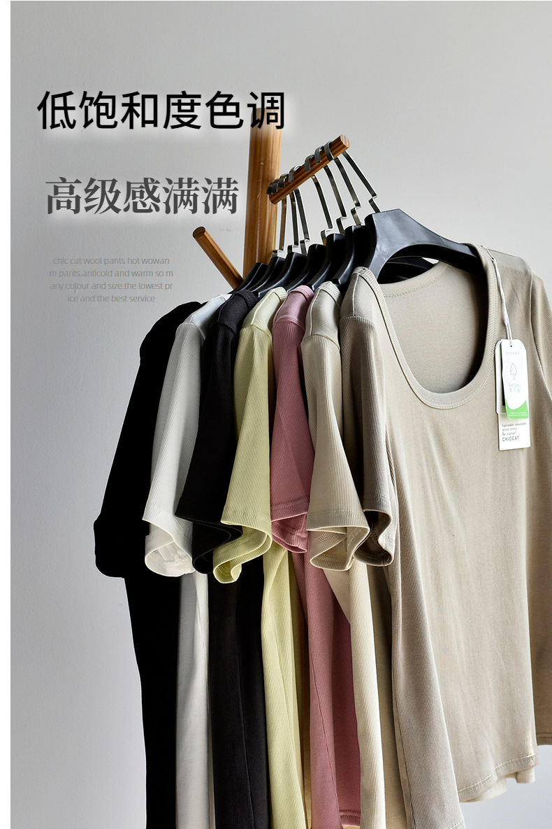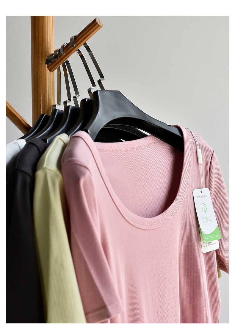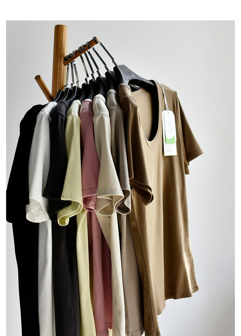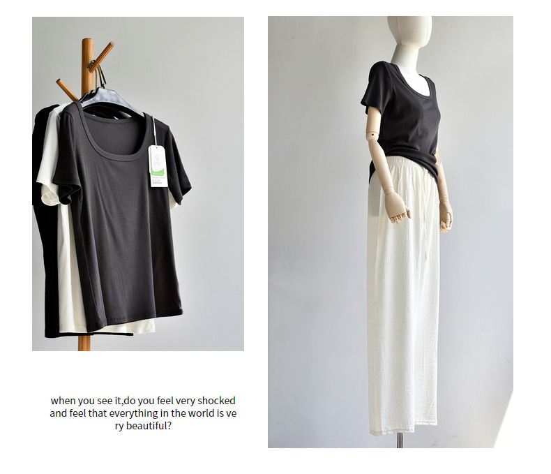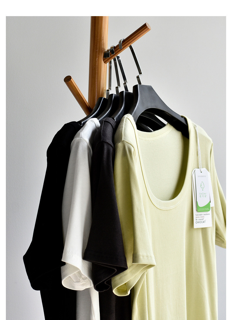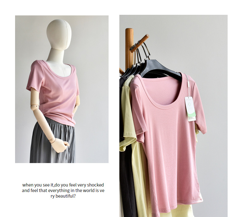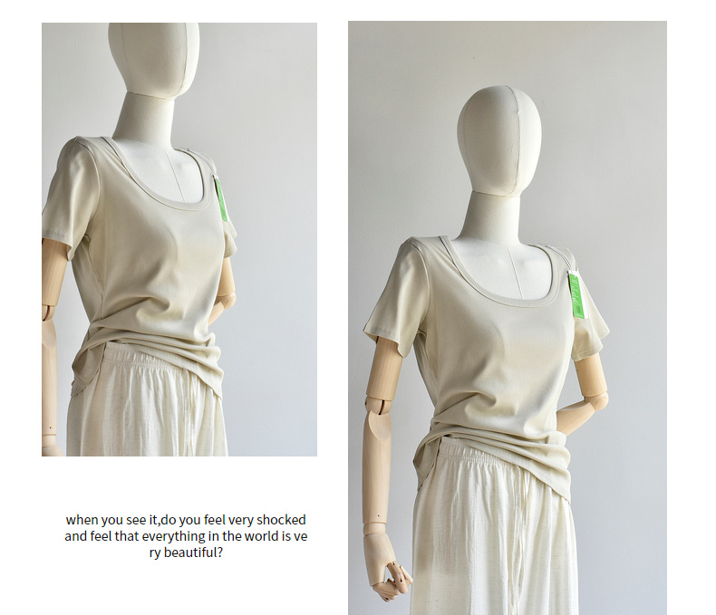 [유코시 방정식 T] 여름 새 여성 U-넥 스퀘어 넥 화이트 루즈 티셔츠 짧은 소매 낮은 목 어깨 탑스토어 가기