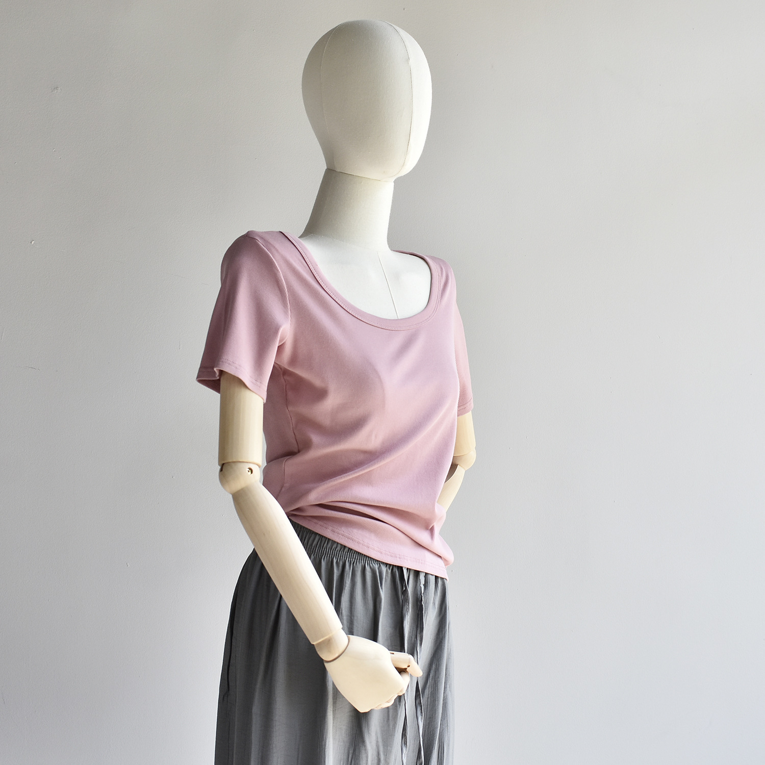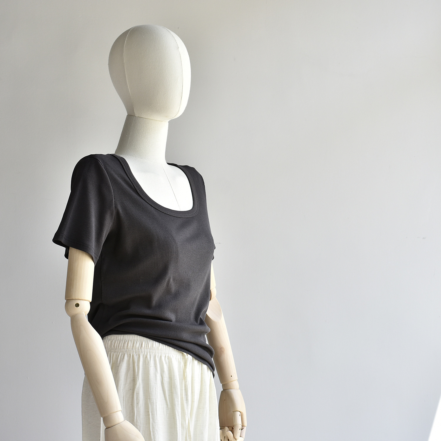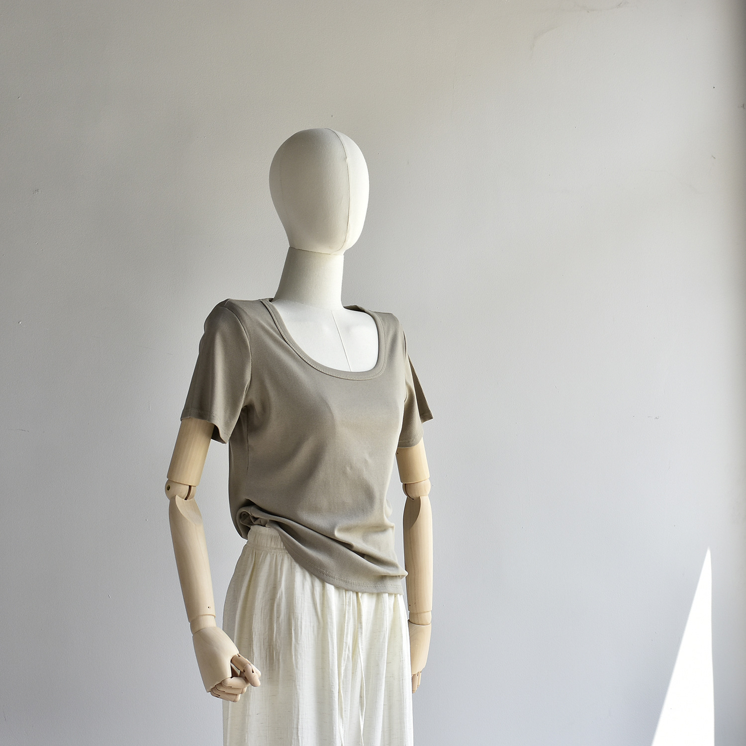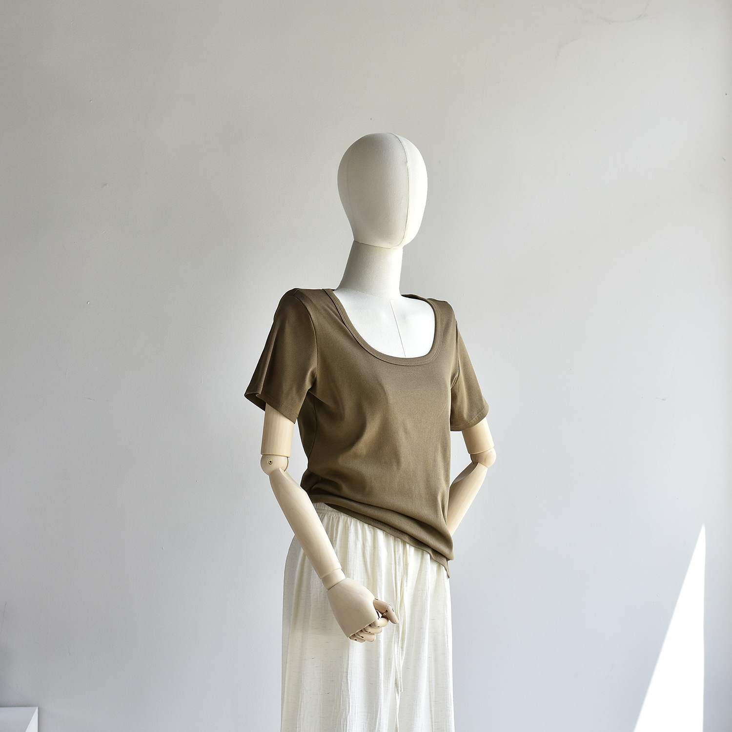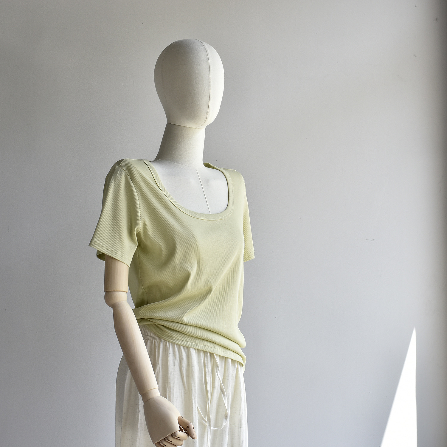 [유코시 방정식 T] 여름 새 여성 U-넥 스퀘어 넥 화이트 루즈 티셔츠 짧은 소매 낮은 목 어깨 탑스토어 가기