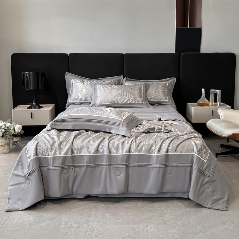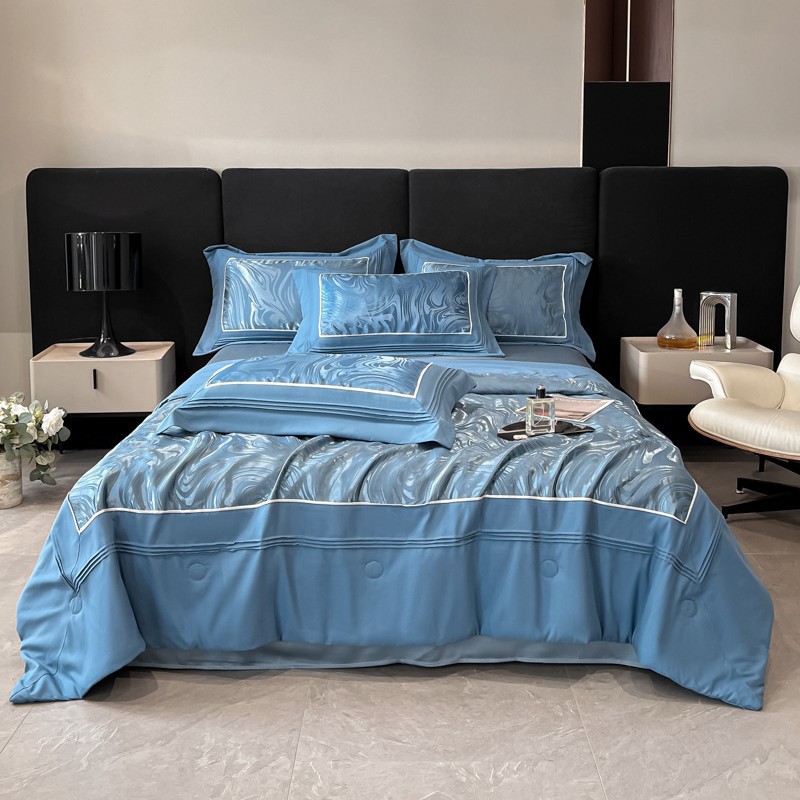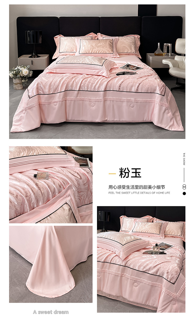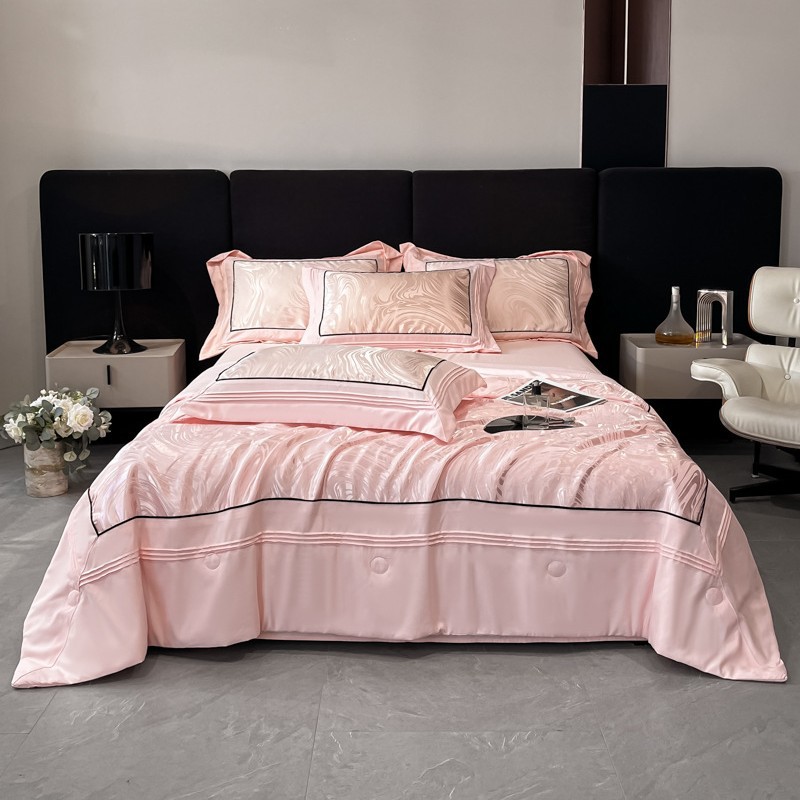 고급 자카드 워싱 텐셀 여름 이불 4종 세트, 우아하고 실키한 에어컨 이불, 새틴 얇은 이불, 가벼운 럭셔리 스타일 침구
