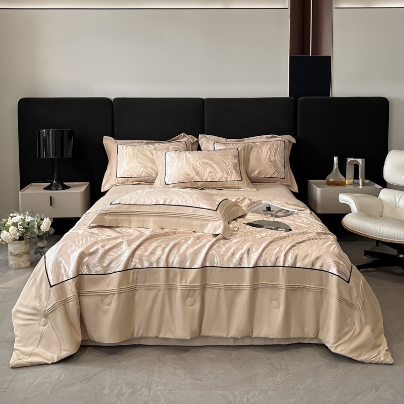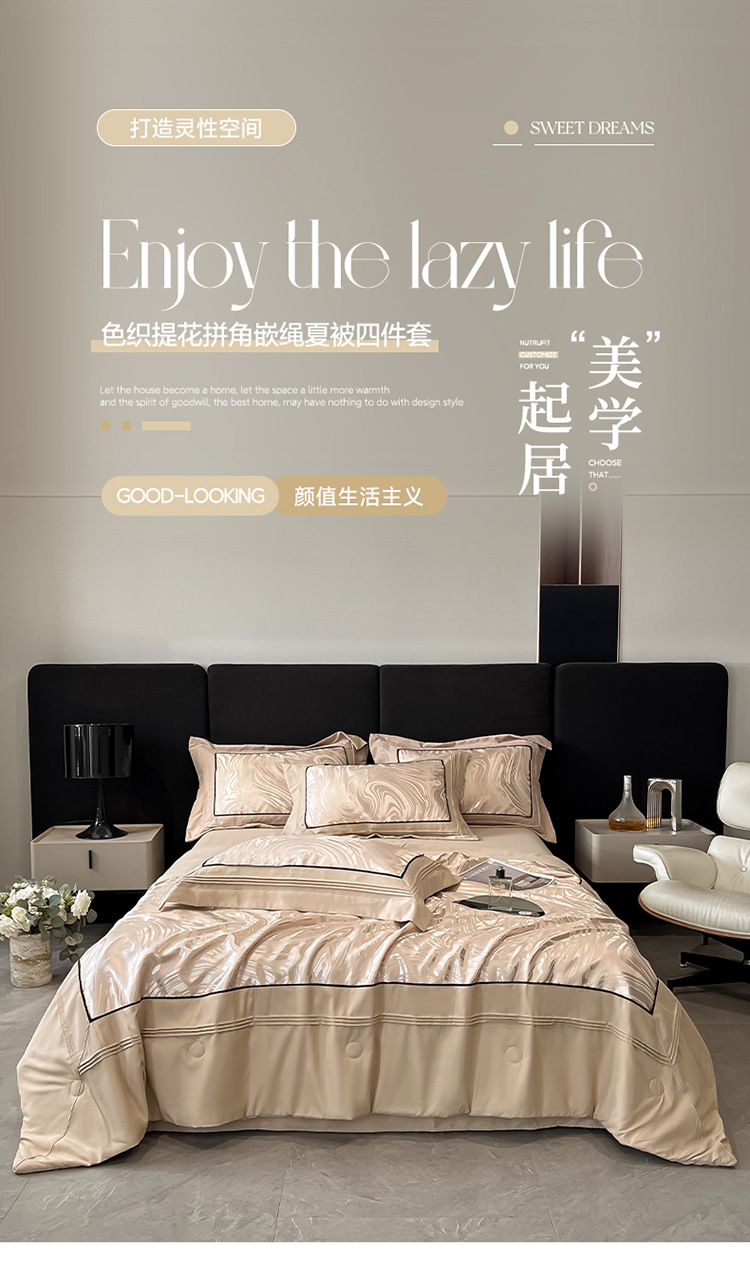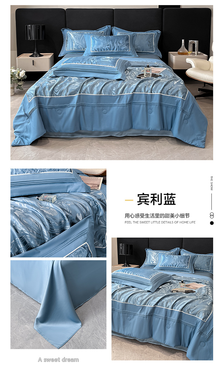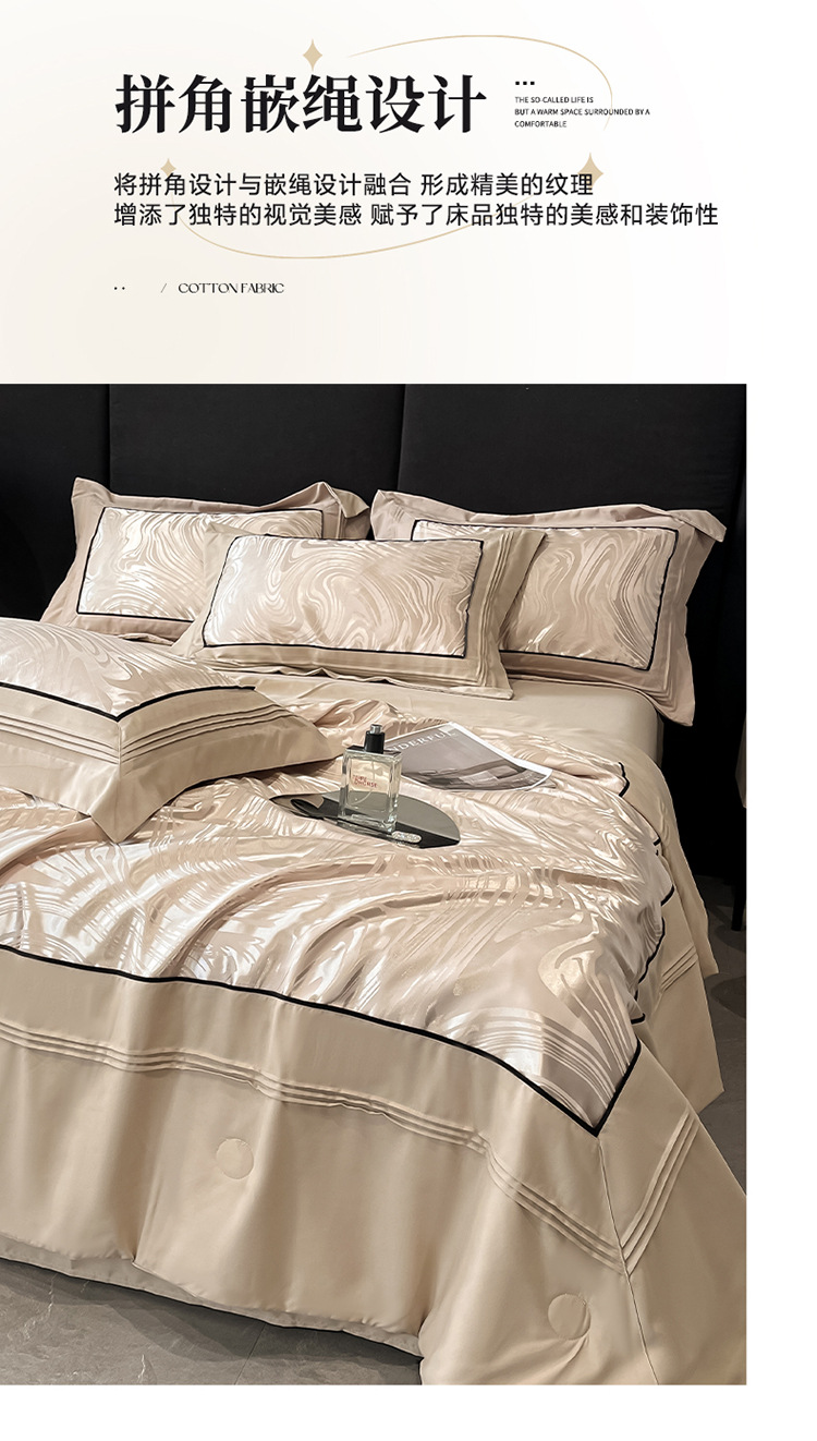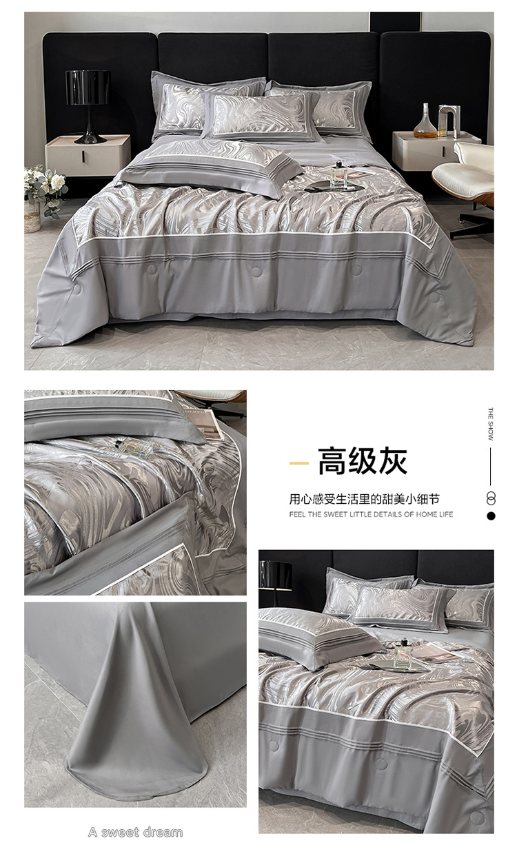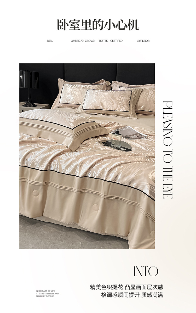 고급 자카드 워싱 텐셀 여름 이불 4종 세트, 우아하고 실키한 에어컨 이불, 새틴 얇은 이불, 가벼운 럭셔리 스타일 침구스토어 가기