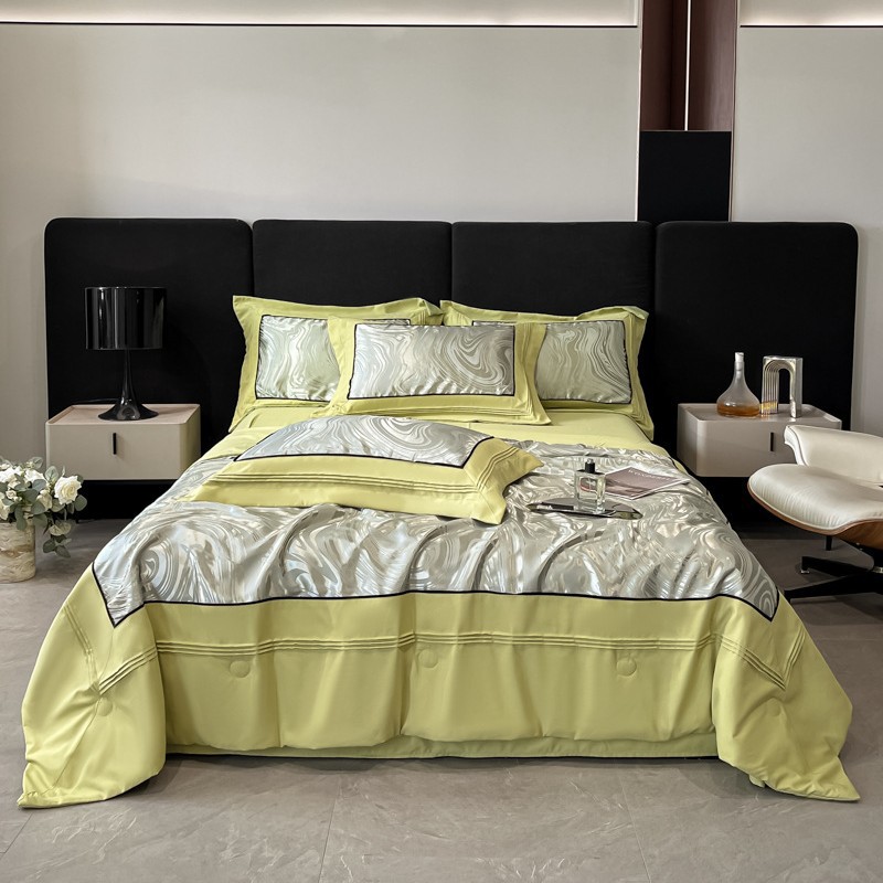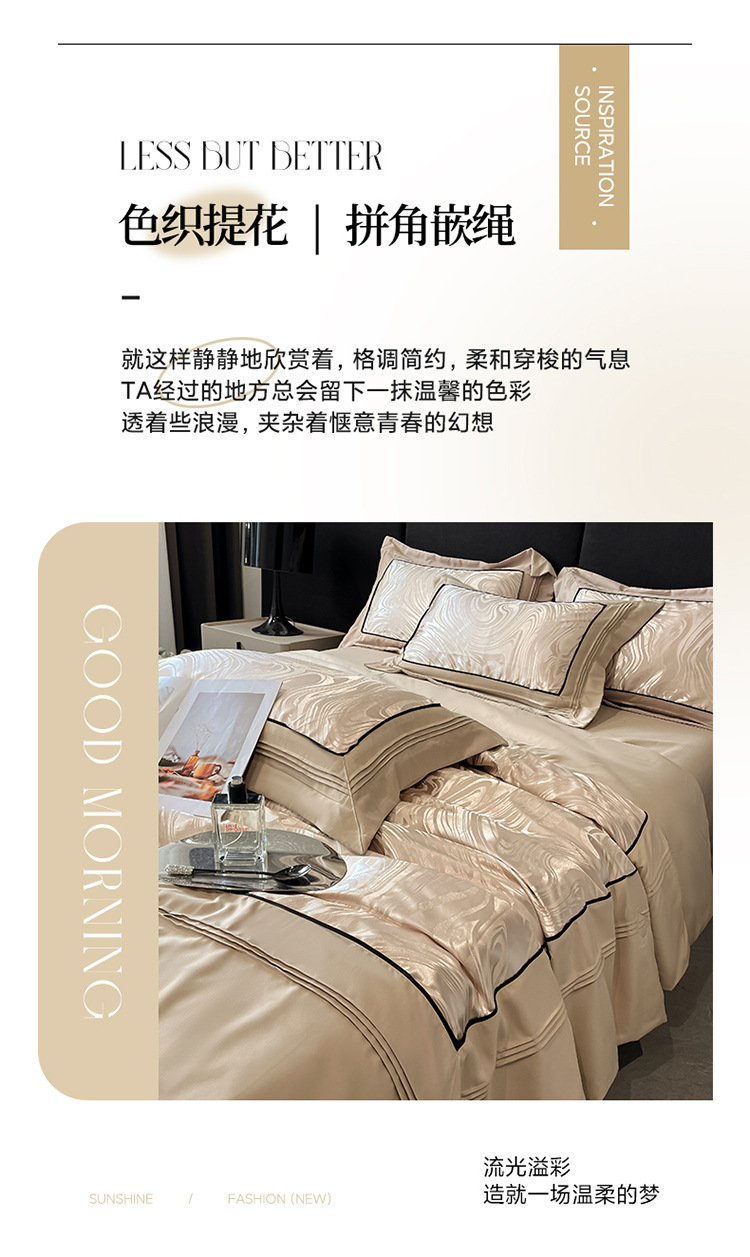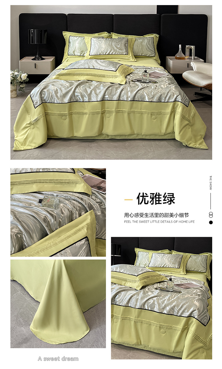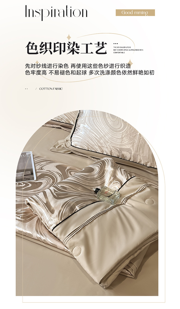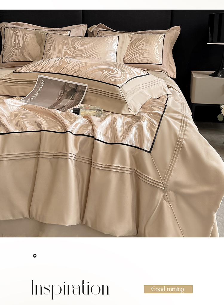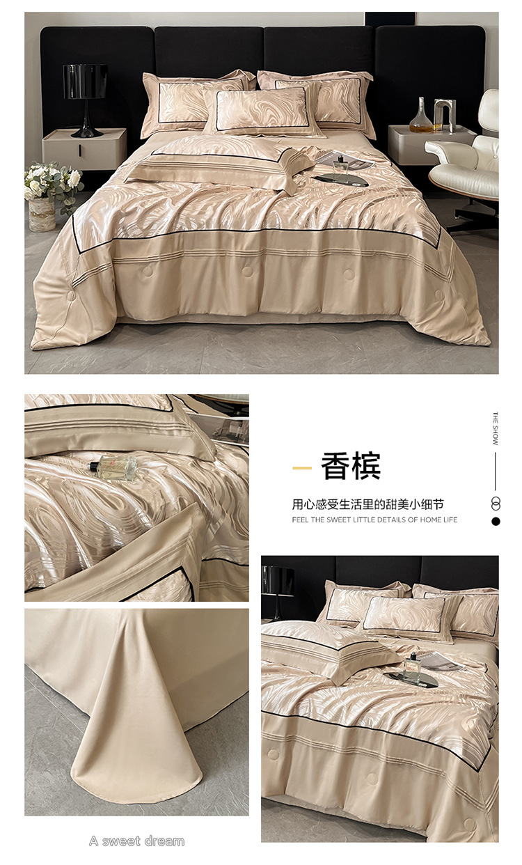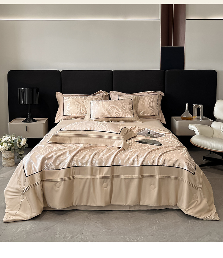 고급 자카드 워싱 텐셀 여름 이불 4종 세트, 우아하고 실키한 에어컨 이불, 새틴 얇은 이불, 가벼운 럭셔리 스타일 침구스토어 가기