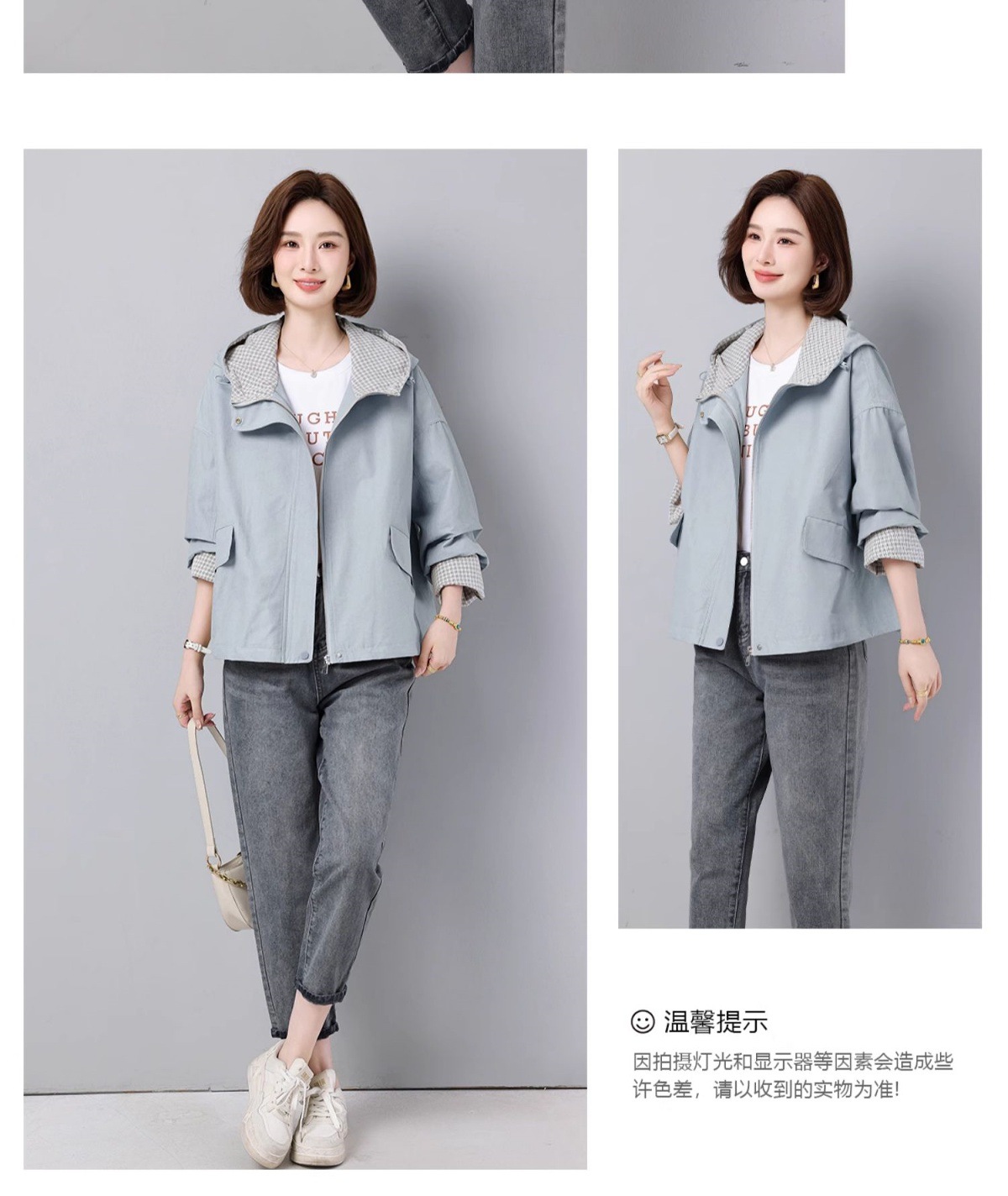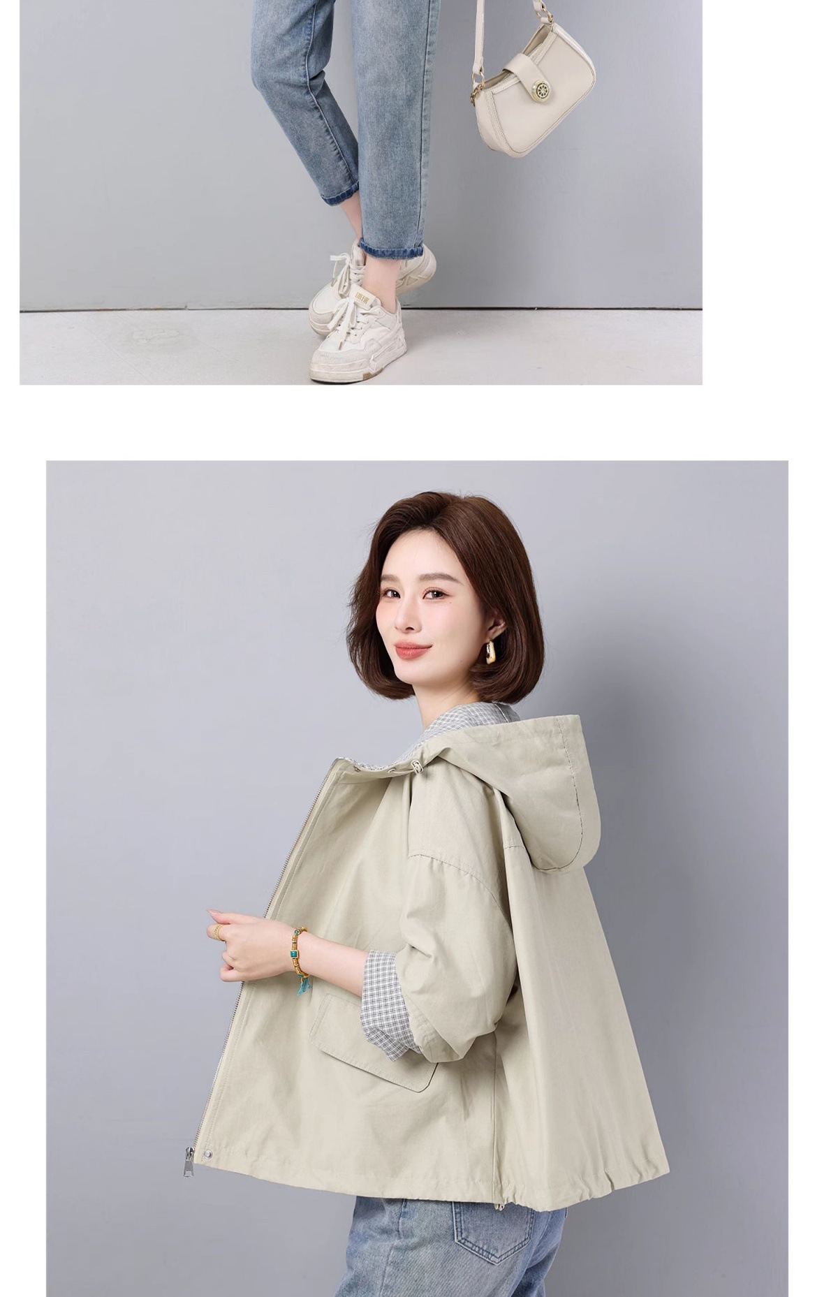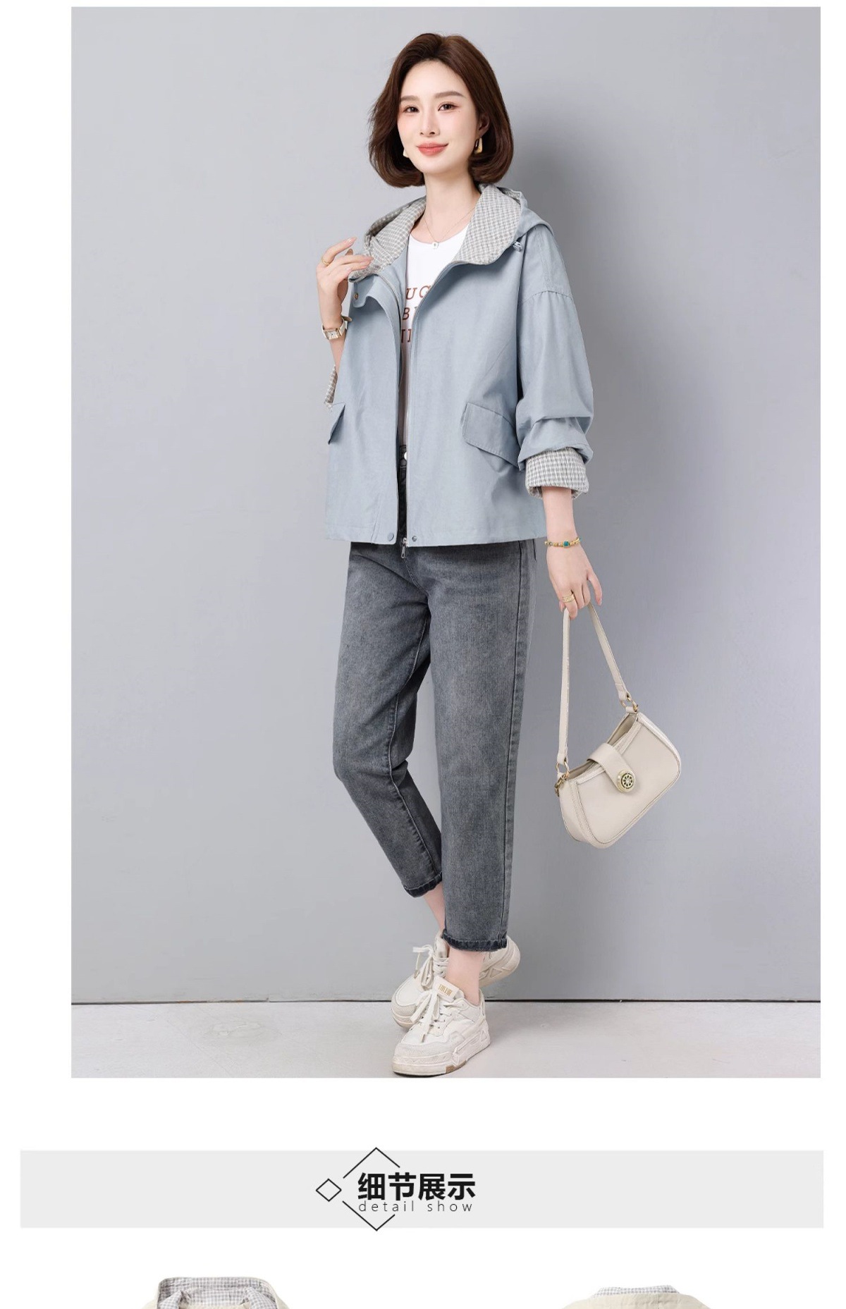 후드 격자 무늬 재킷 여성용 다목적 2025 봄 루즈 캐주얼 패션 재킷 작업복 탑 트렌디스토어 가기