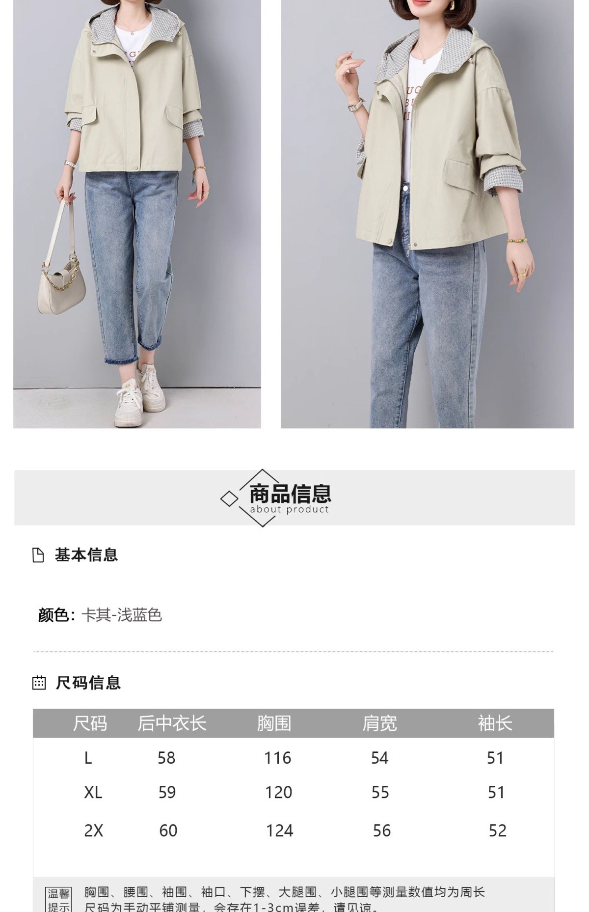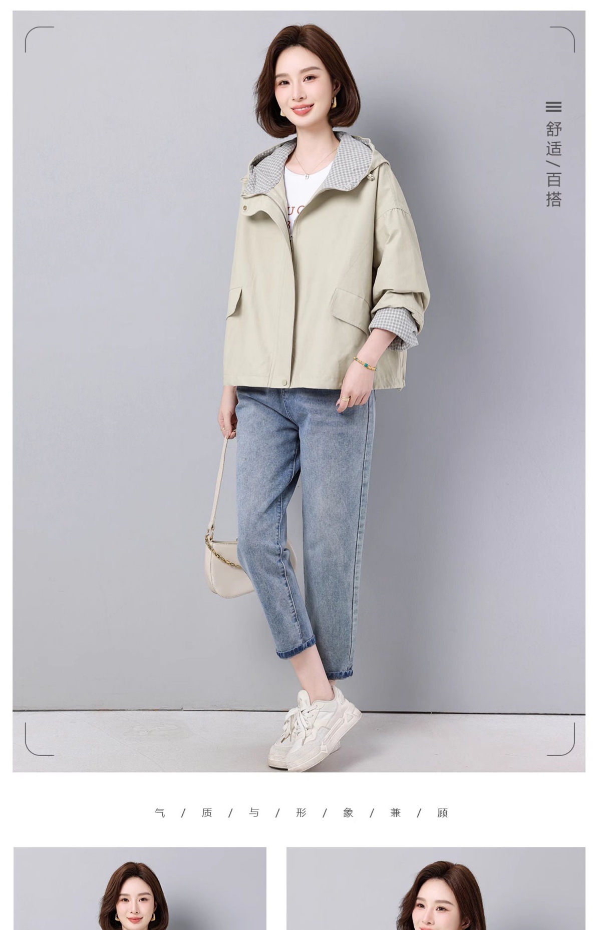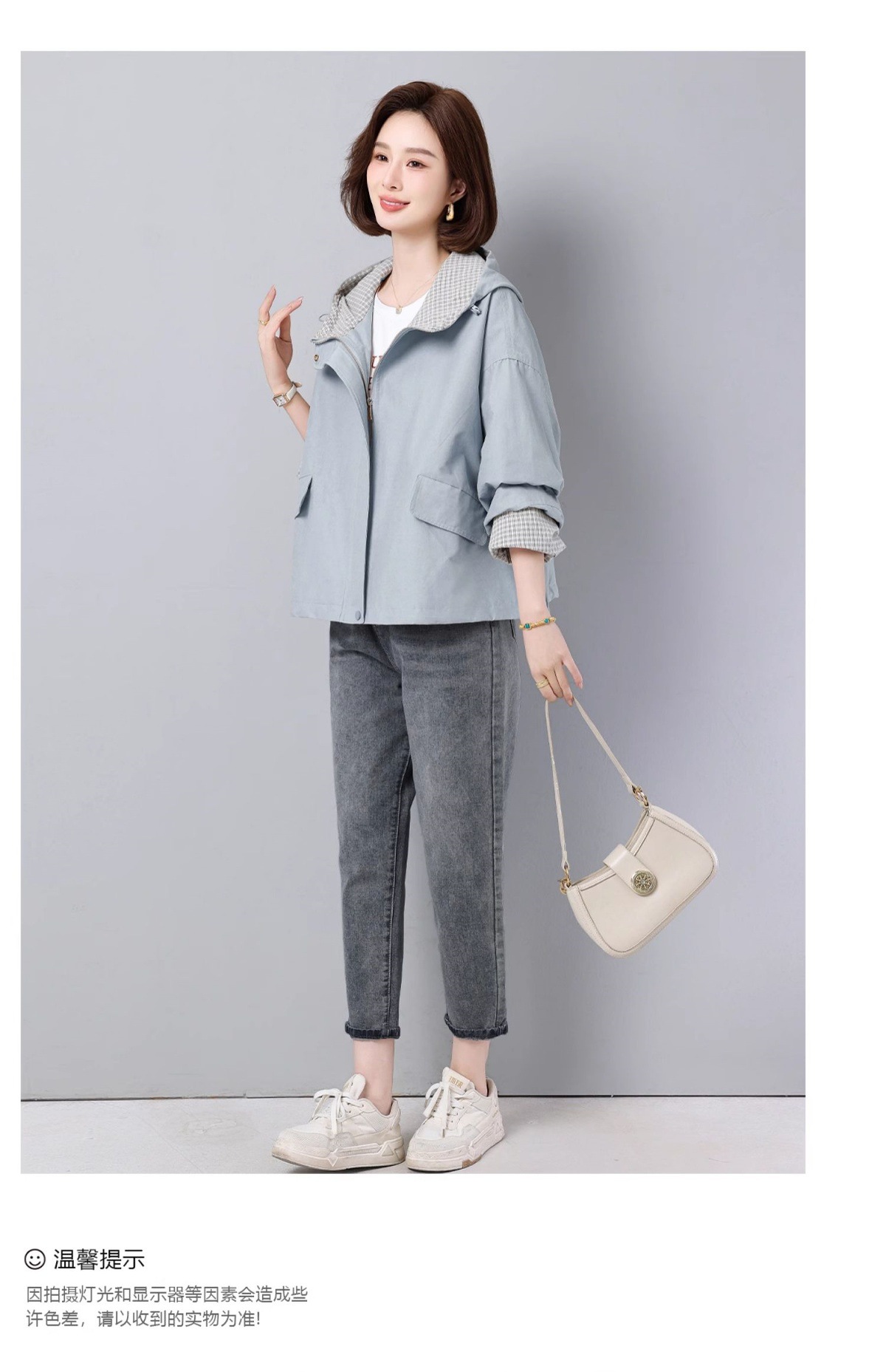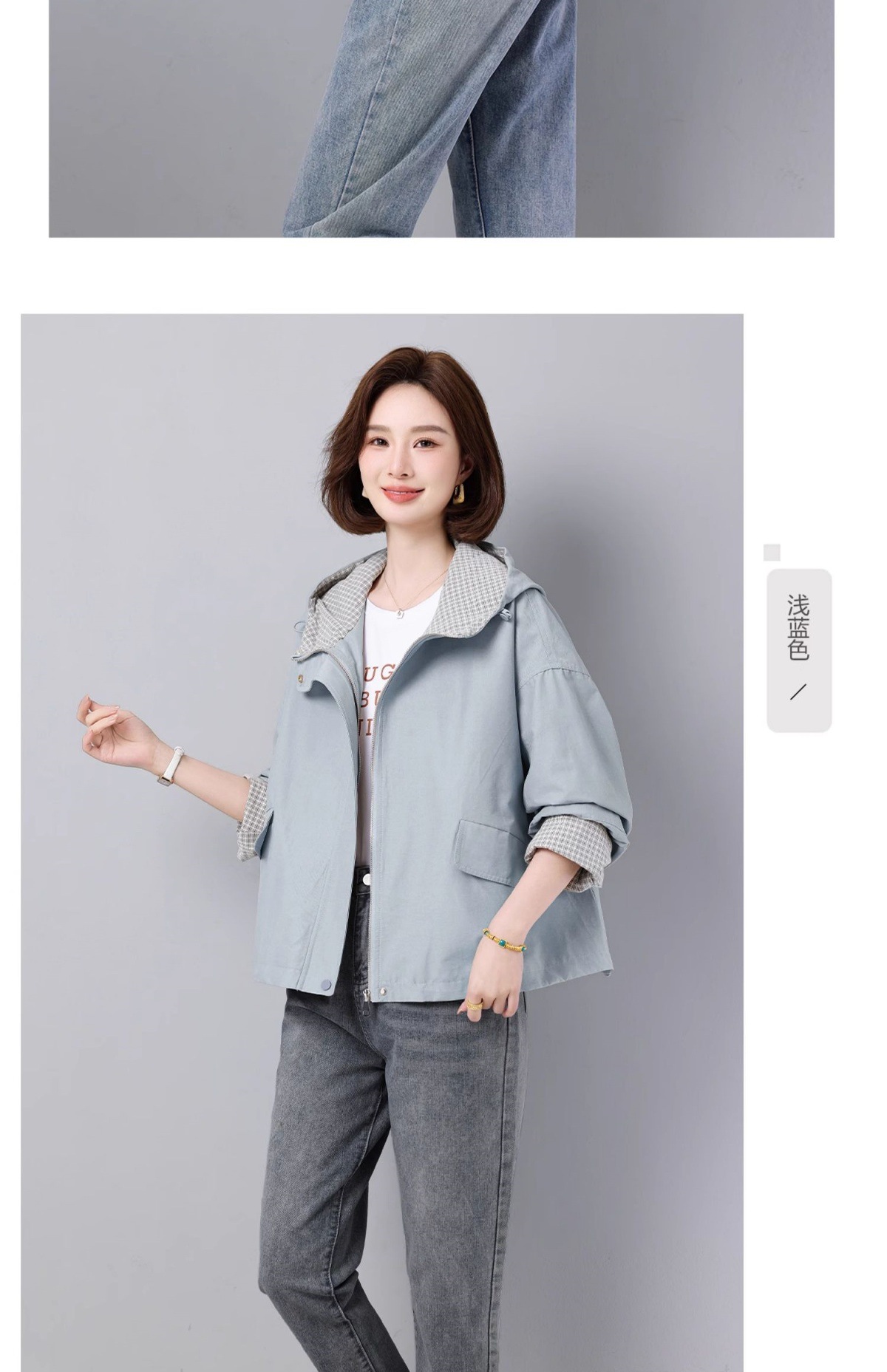 후드 격자 무늬 재킷 여성용 다목적 2025 봄 루즈 캐주얼 패션 재킷 작업복 탑 트렌디스토어 가기