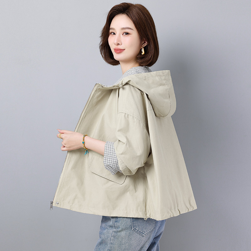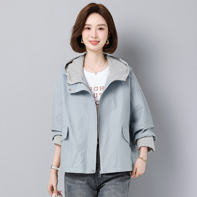 후드 격자 무늬 재킷 여성용 다목적 2025 봄 루즈 캐주얼 패션 재킷 작업복 탑 트렌디