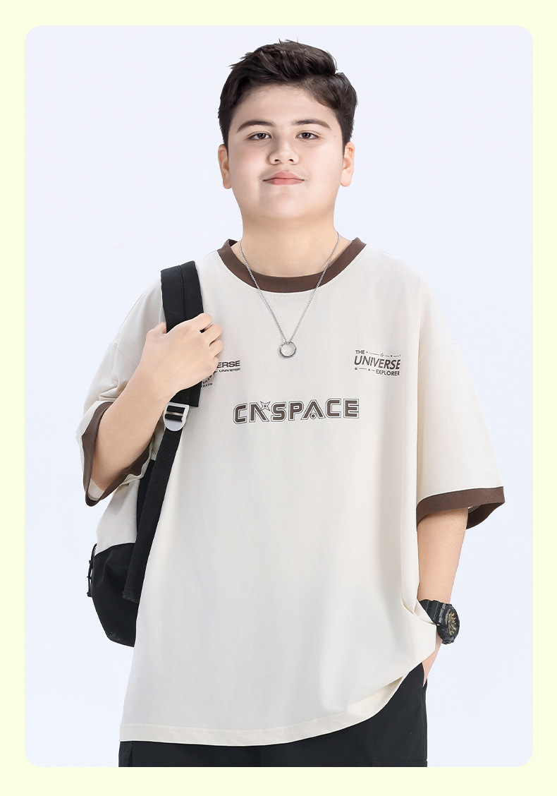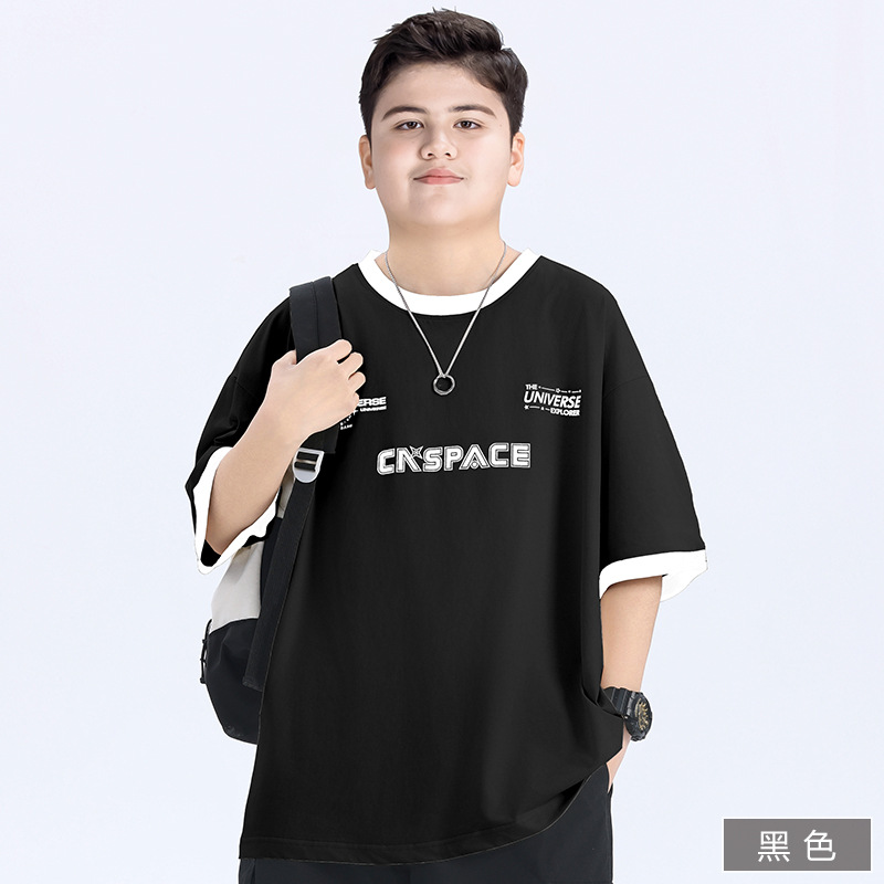 통통한 아동복 소년 반팔 티셔츠 루즈 플러스 팻 플러스 대형 여름 2025 뉴 여름 빅 어린이 티셔츠 반소매 티셔츠