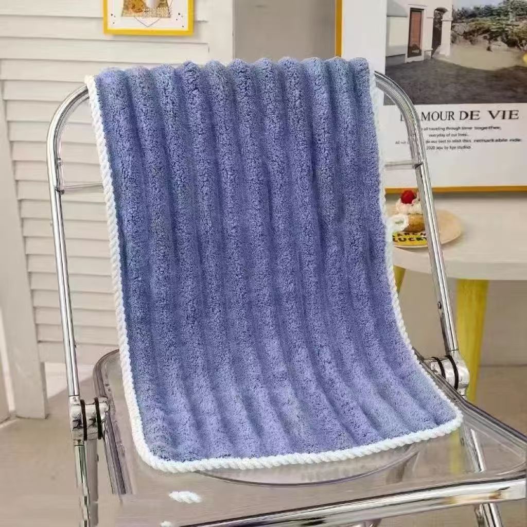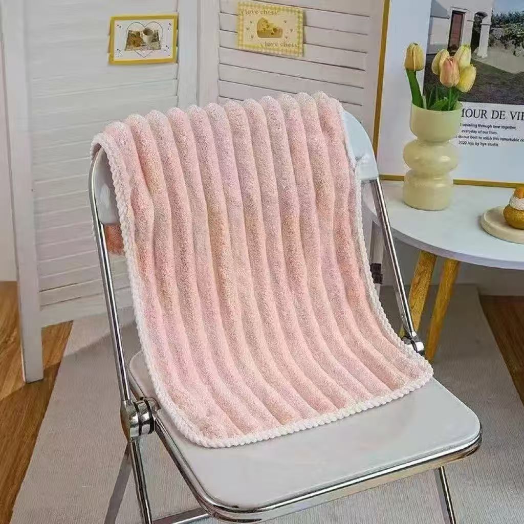 캔디 스트립 벨벳 테두리 산호 양털 대형 스트레이트 타월 얼굴 흡수성 홈 목욕 헤어 빠른 건조 선물 도매