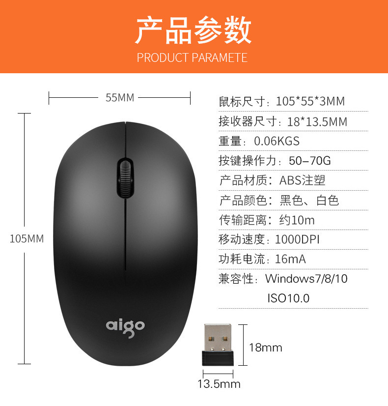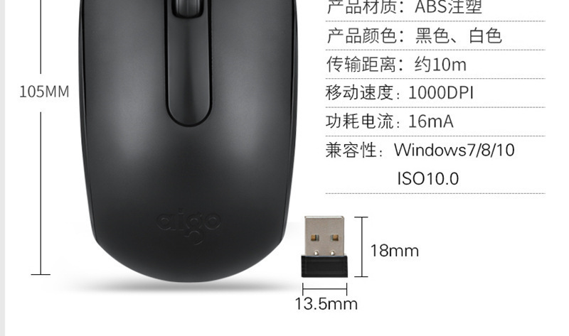 Aiqi Q710 노트북 데스크탑 컴퓨터 2.4G 무선 마우스 사무실 및 가정용 범용에 적합