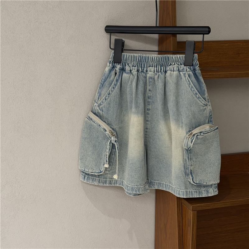 25 여름 새 소년 소녀 아기 어린이 한국 스타일 서양식 지퍼 가방 스프레이 화이트 데님 반바지 캐주얼 유행 어린이 바지스토어 가기