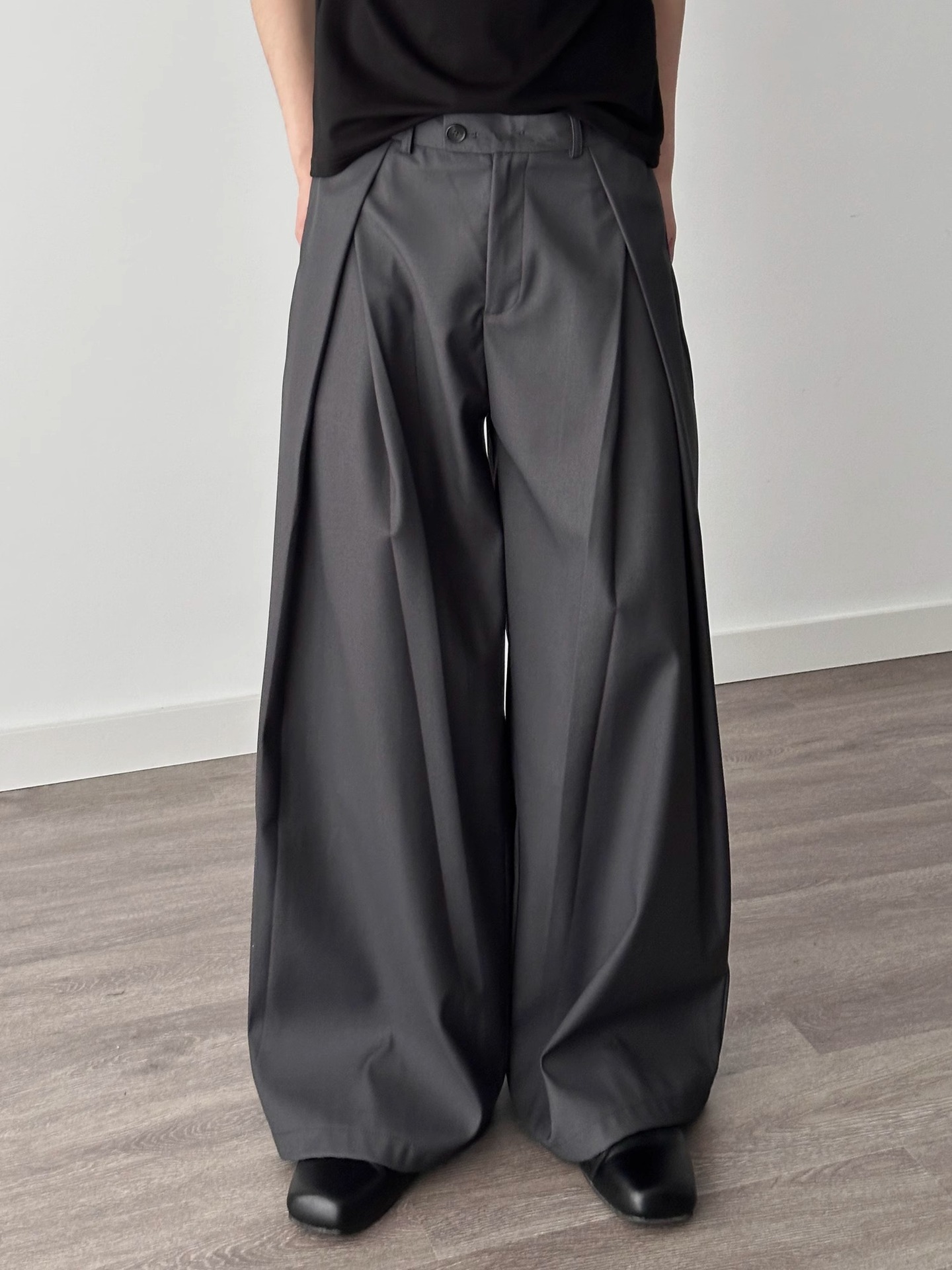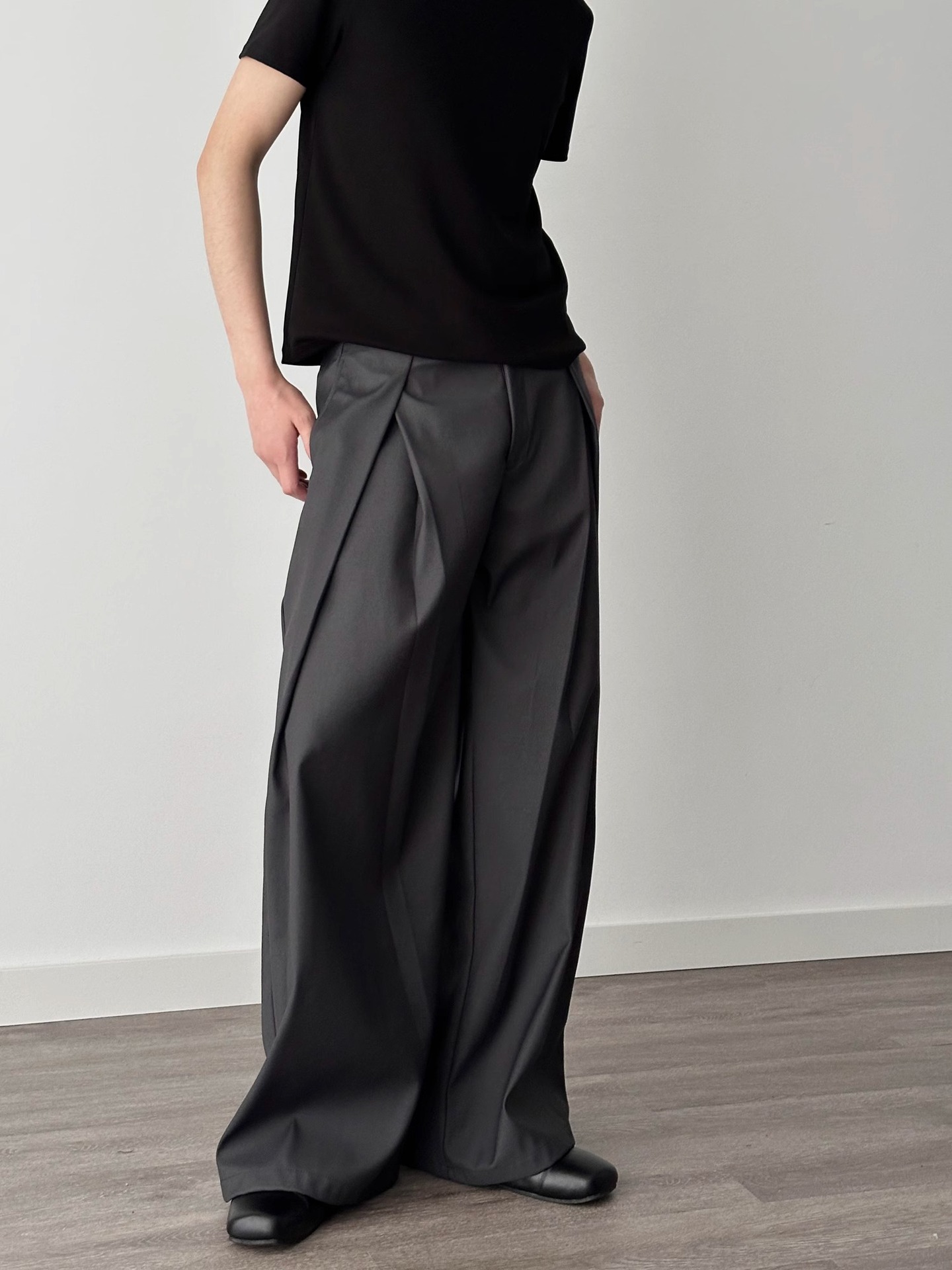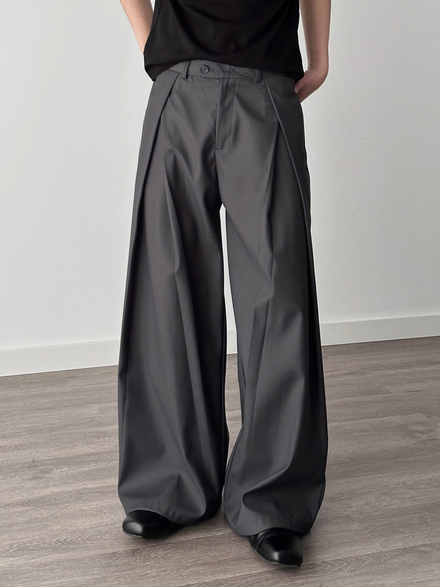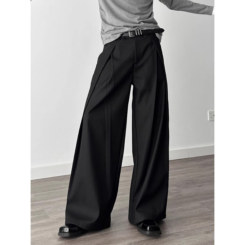 3 차원 주름 넓은 다리 바지 A-프로필 캐주얼 바지 남성 여름 새로운 디자인 감각 느슨한 드레이프 감지 바지스토어 가기