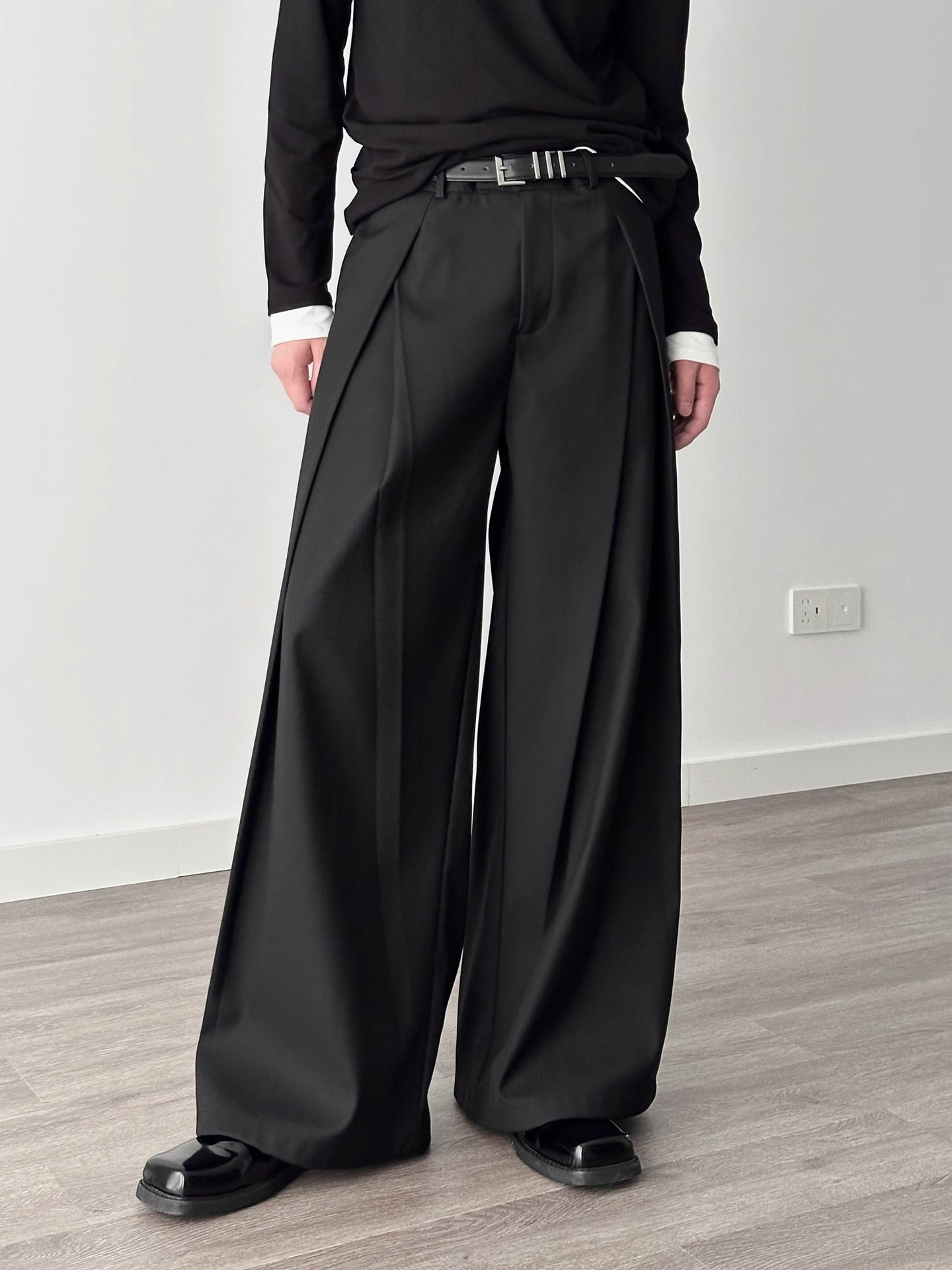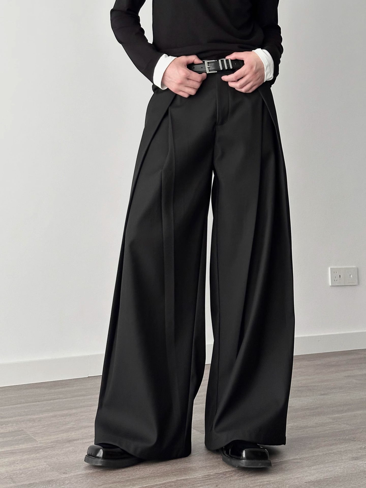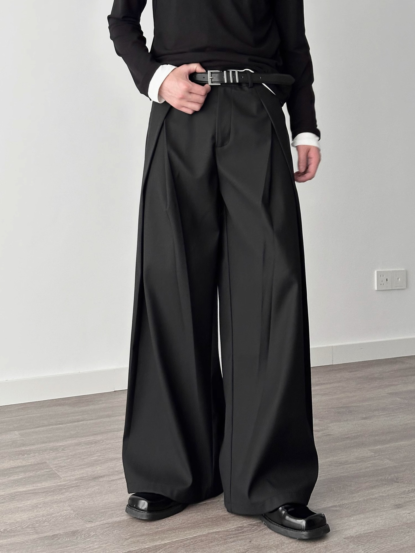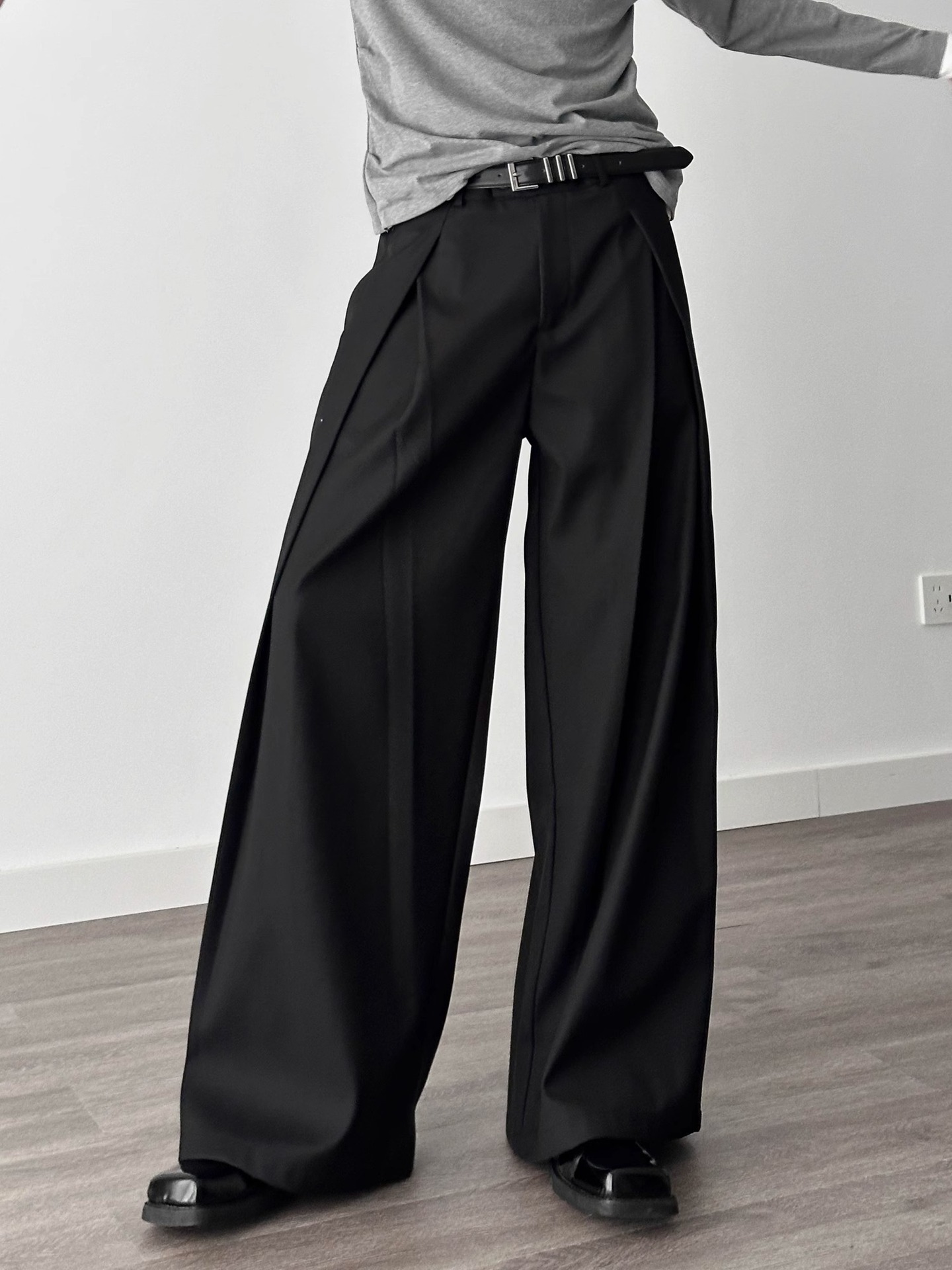 3 차원 주름 넓은 다리 바지 A-프로필 캐주얼 바지 남성 여름 새로운 디자인 감각 느슨한 드레이프 감지 바지스토어 가기