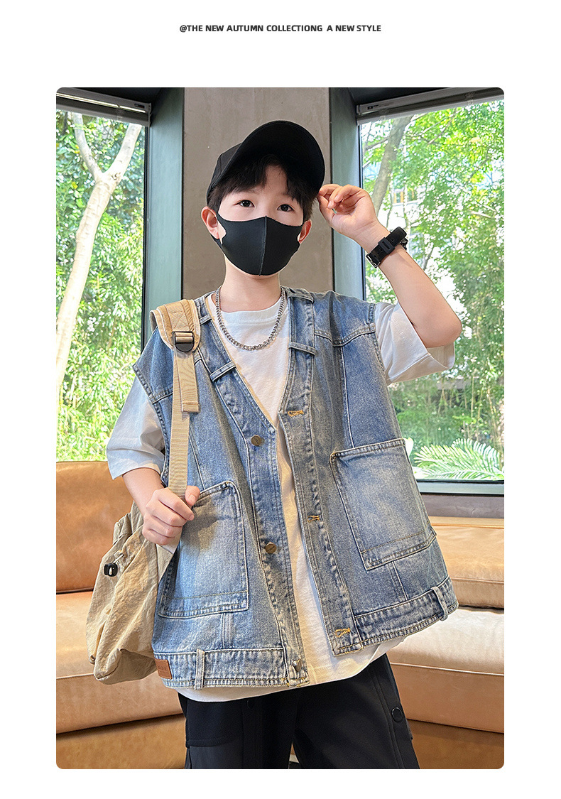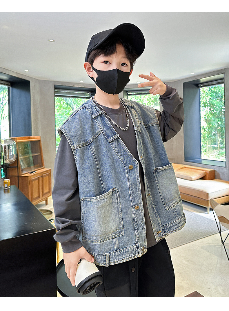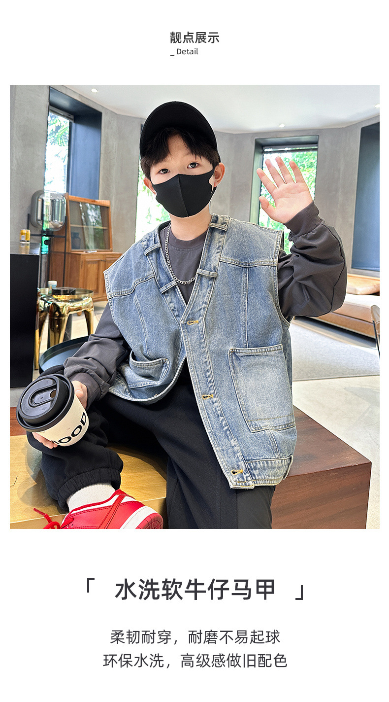 소년 봄 데님 조끼 봄, 가을 2025 새로운 스타일 중대형 소년 봄 조끼 아동 조끼 유행스토어 가기