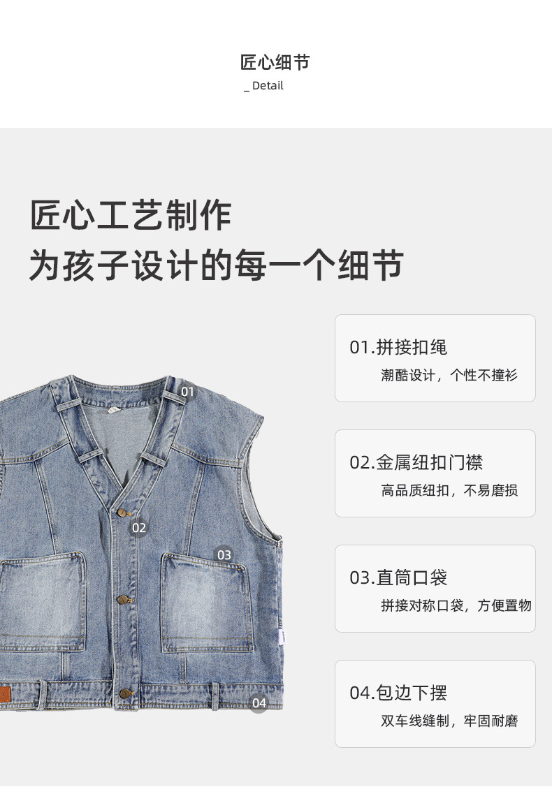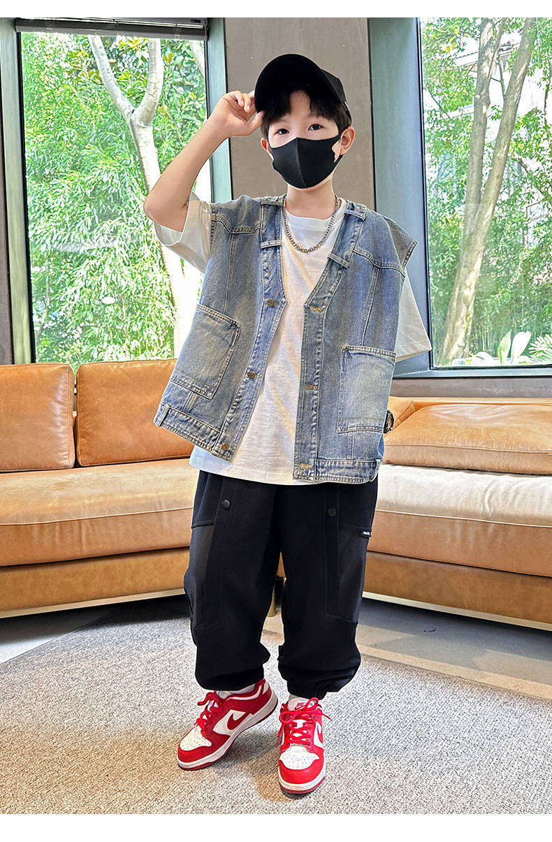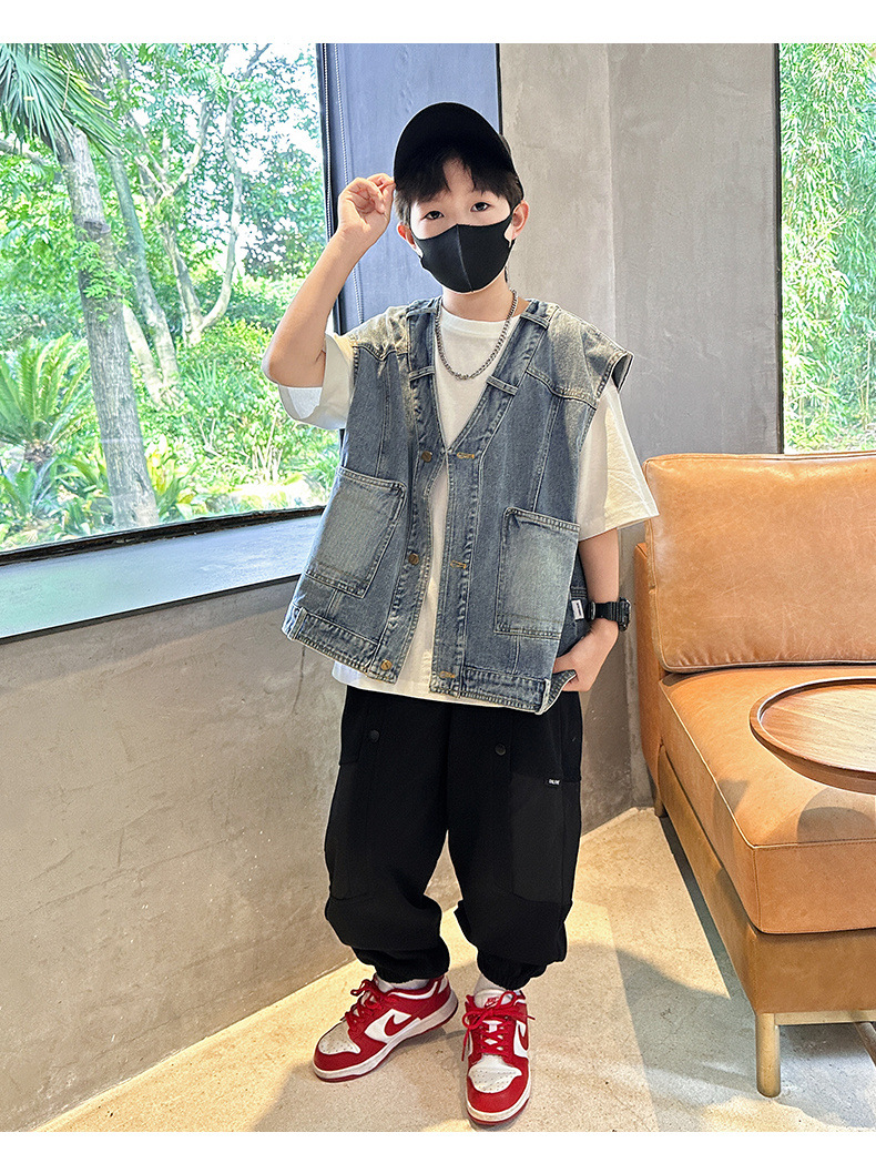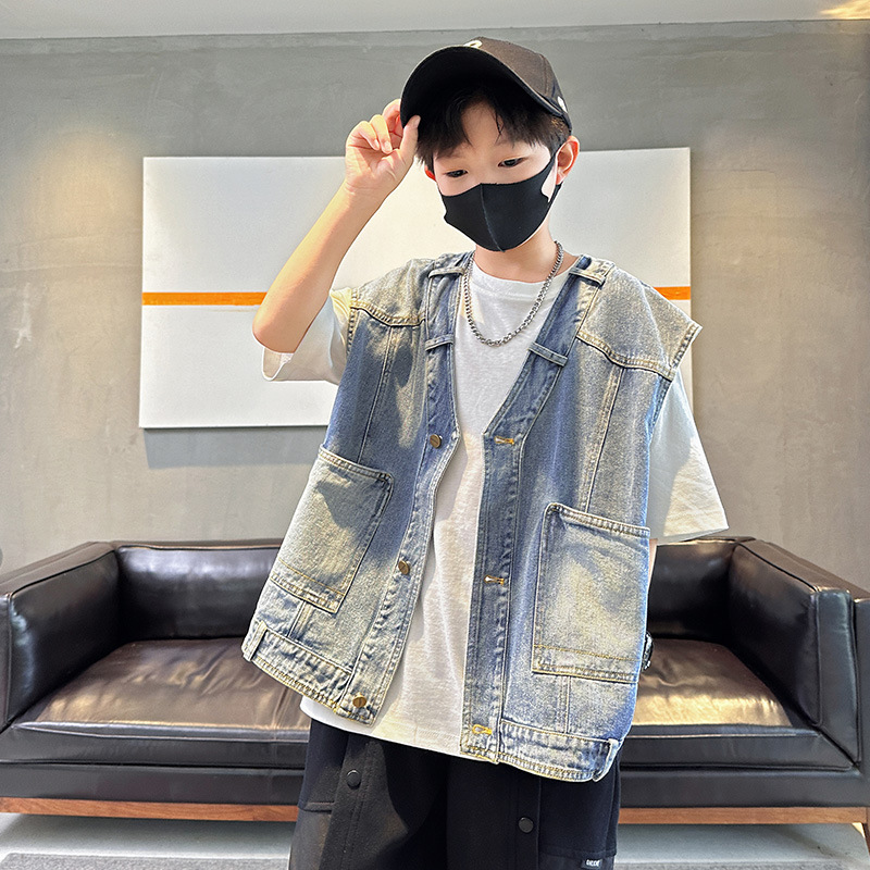 소년 봄 데님 조끼 봄, 가을 2025 새로운 스타일 중대형 소년 봄 조끼 아동 조끼 유행스토어 가기