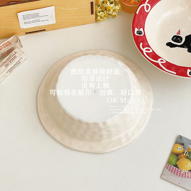 • 손으로 꼬집은 8inch 밀짚모자 트레이 - 빨간모자 고양이