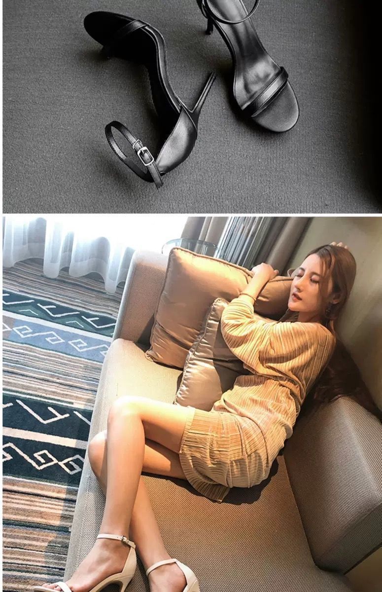 여성용 샌들 2025 여름 신작 원라인 버클 스트랩 스틸레토 오픈 토 인터넷 연예인 하이힐 다용도 요정 스타일 트렌드