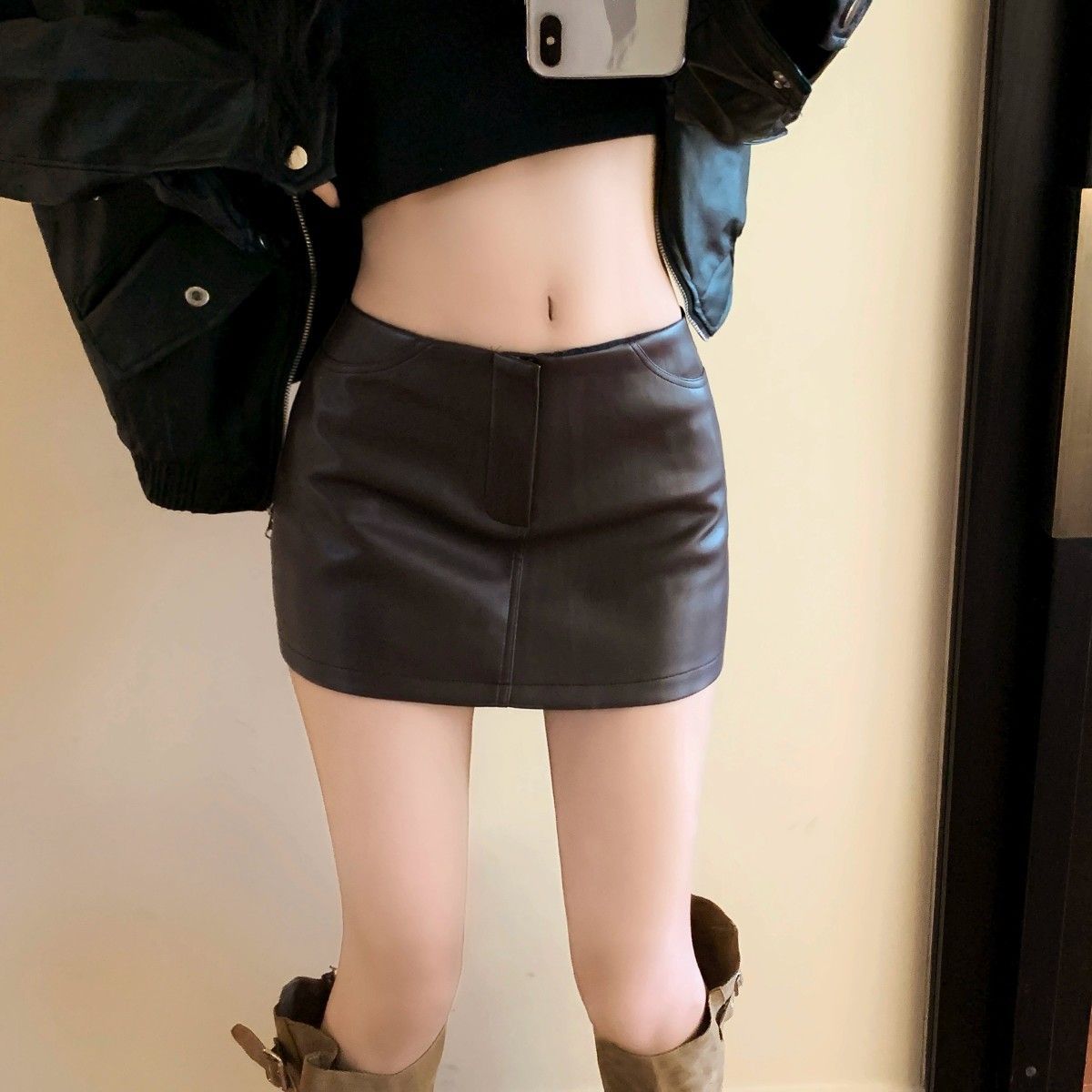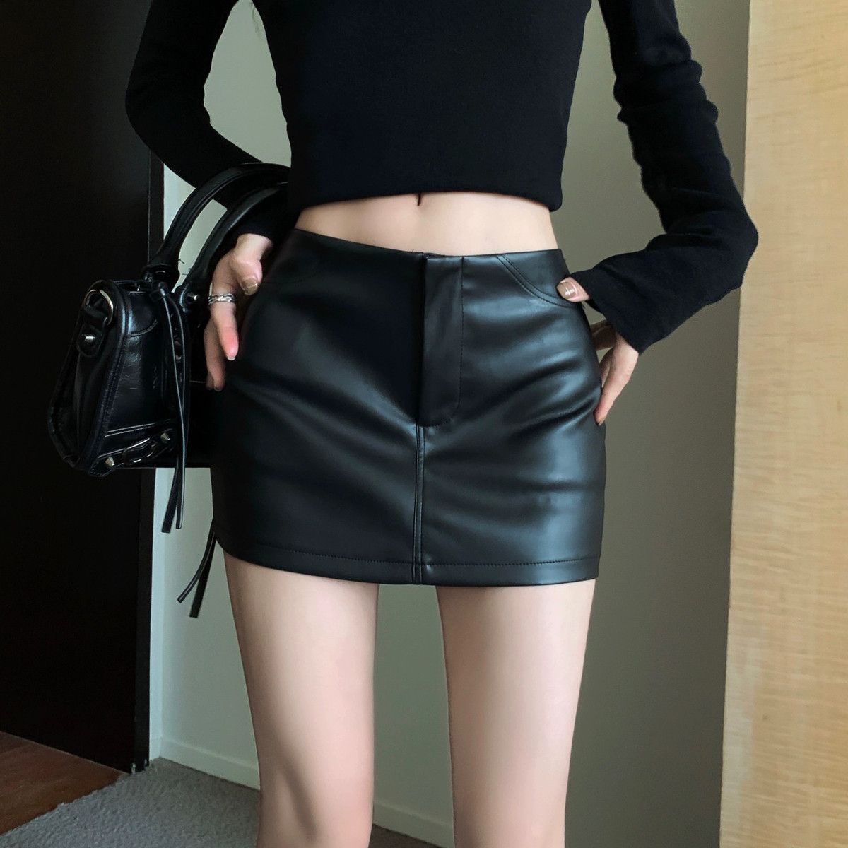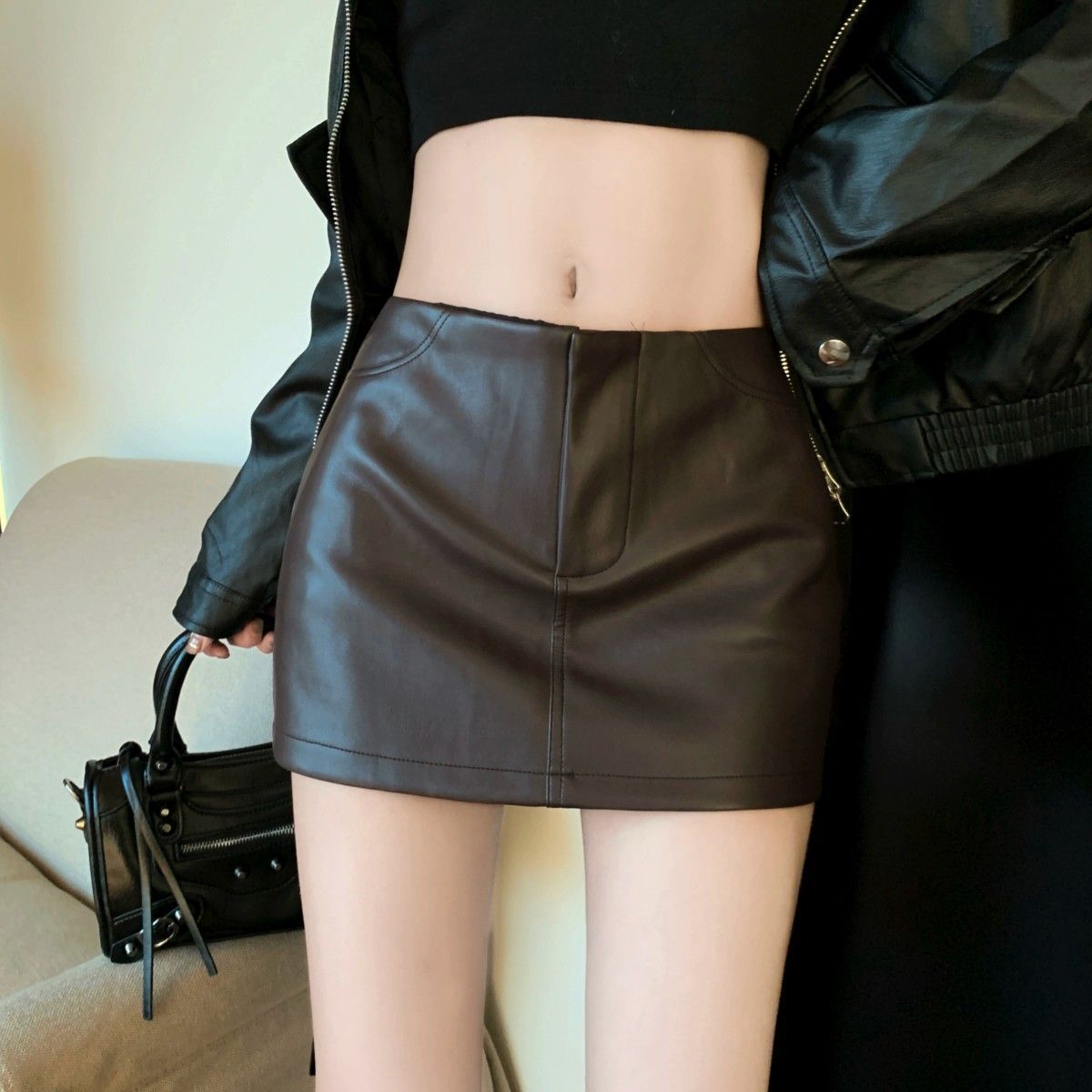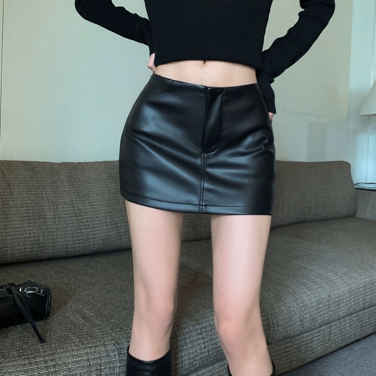 Maillard 패션 핫 소녀 가죽 스커트 여성 봄 새로운 블랙 하이 웨이스트 힙 스커트 슬림 캐주얼 짧은 스커트스토어 가기