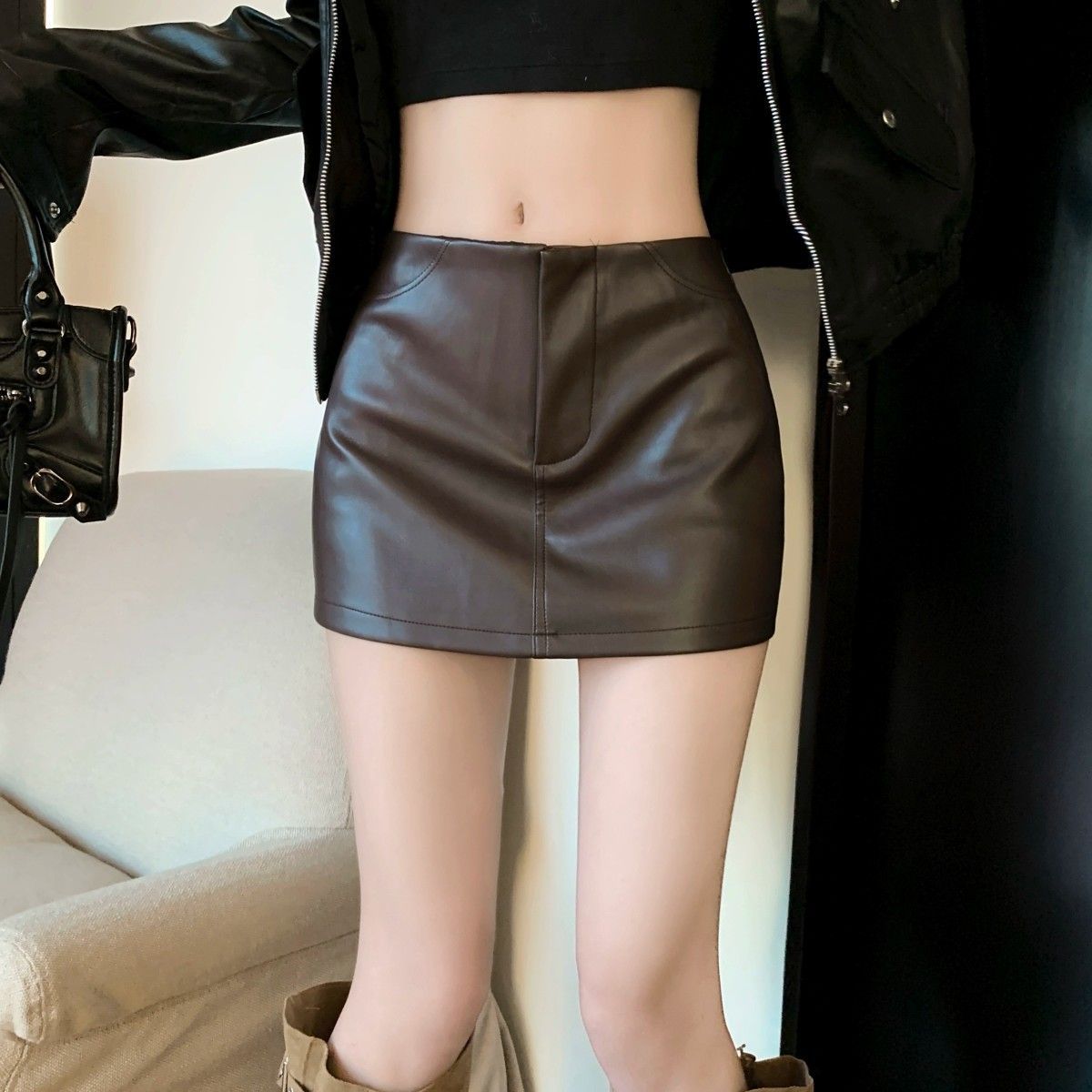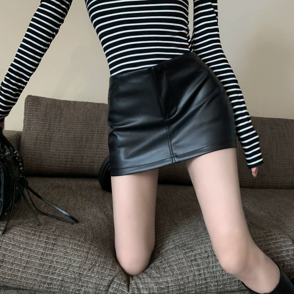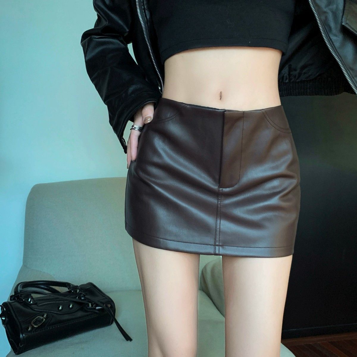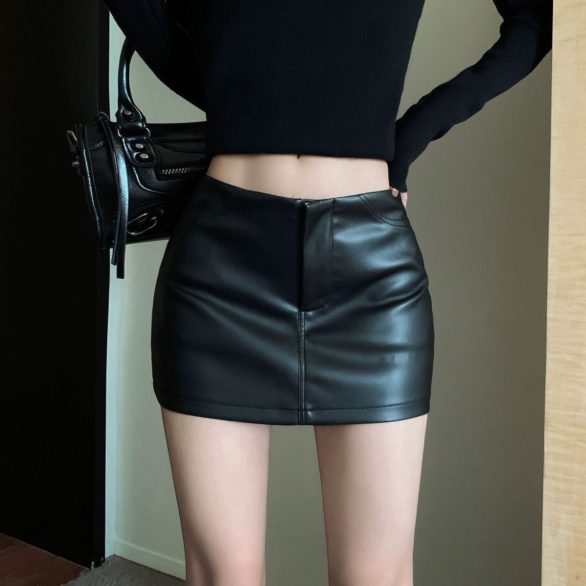 Maillard 패션 핫 소녀 가죽 스커트 여성 봄 새로운 블랙 하이 웨이스트 힙 스커트 슬림 캐주얼 짧은 스커트스토어 가기