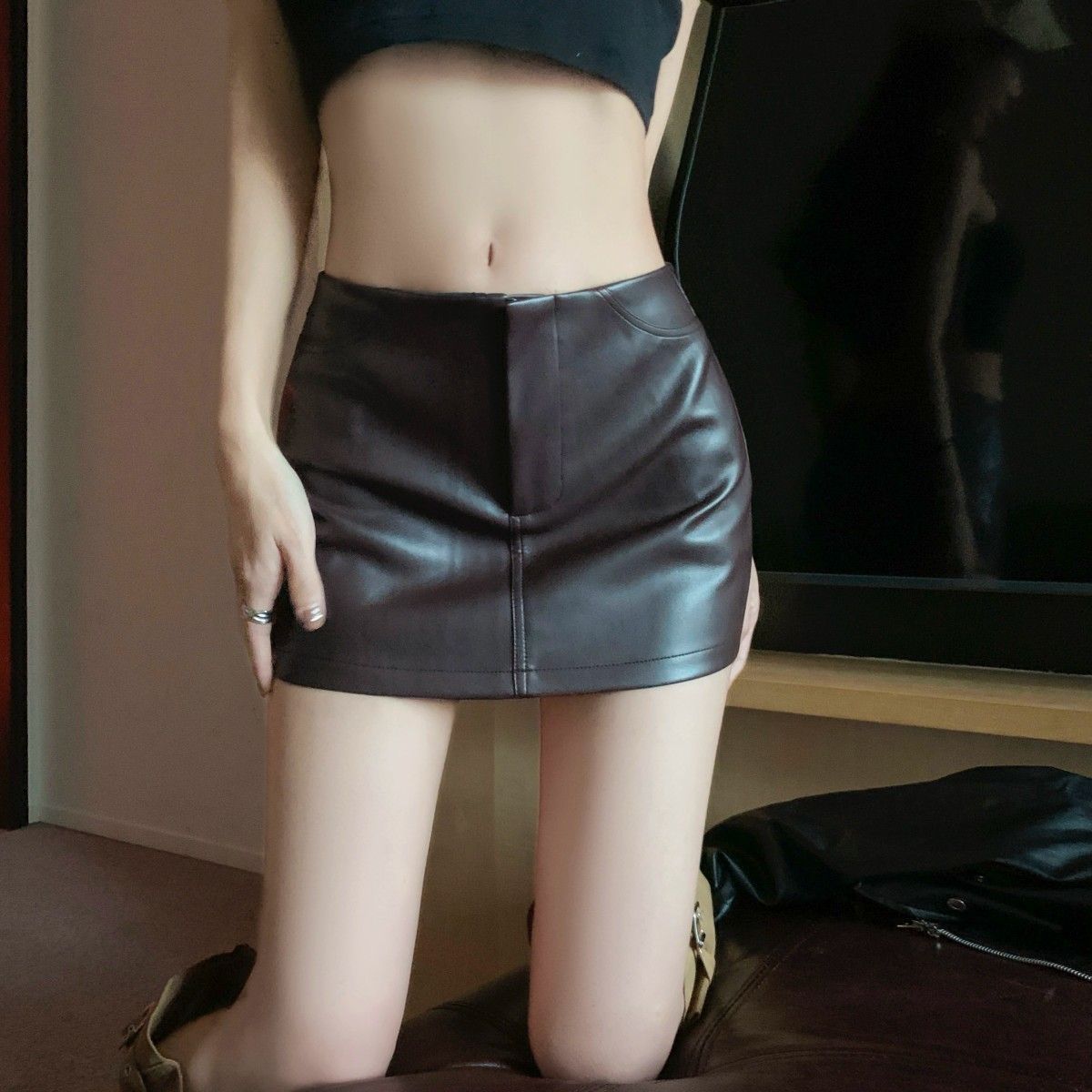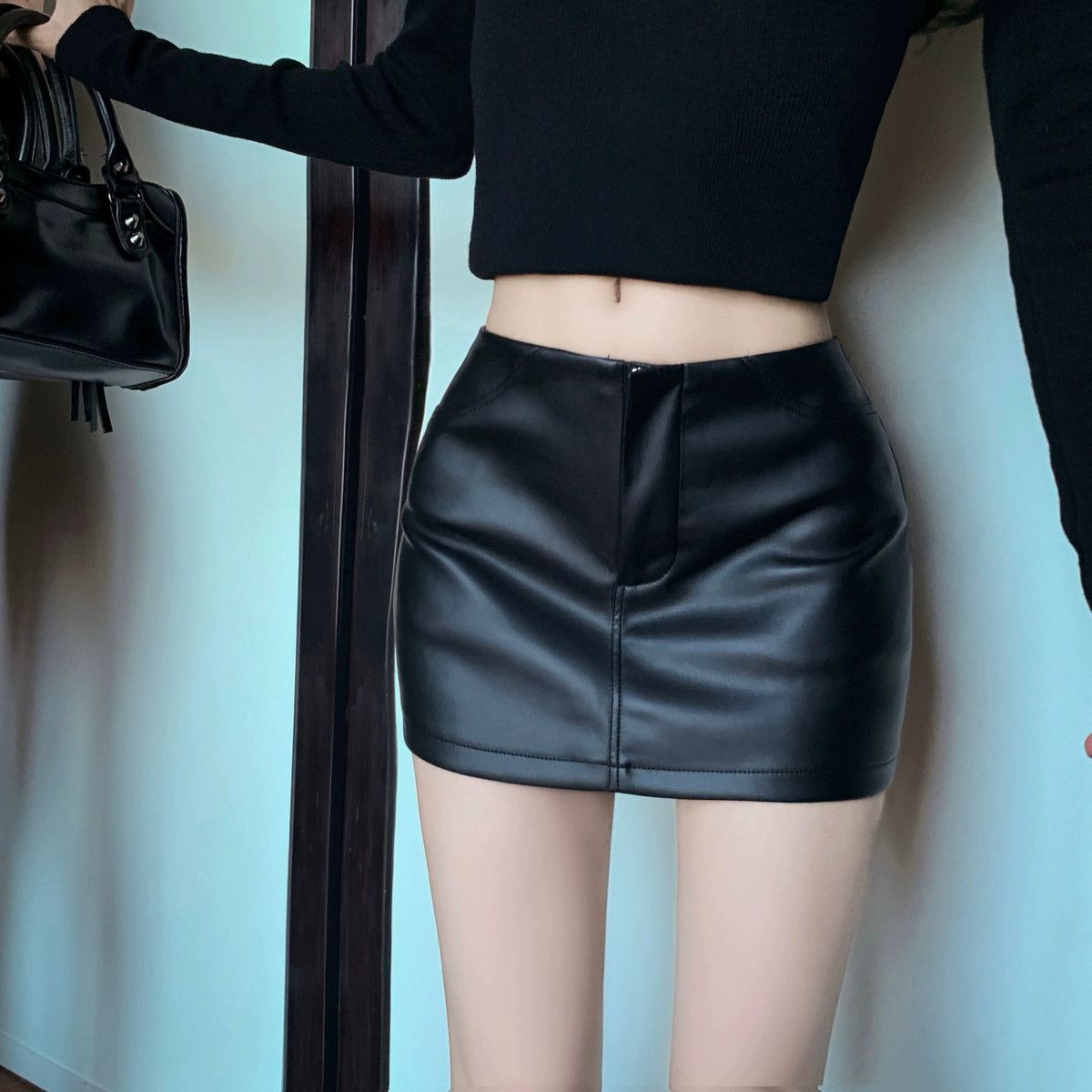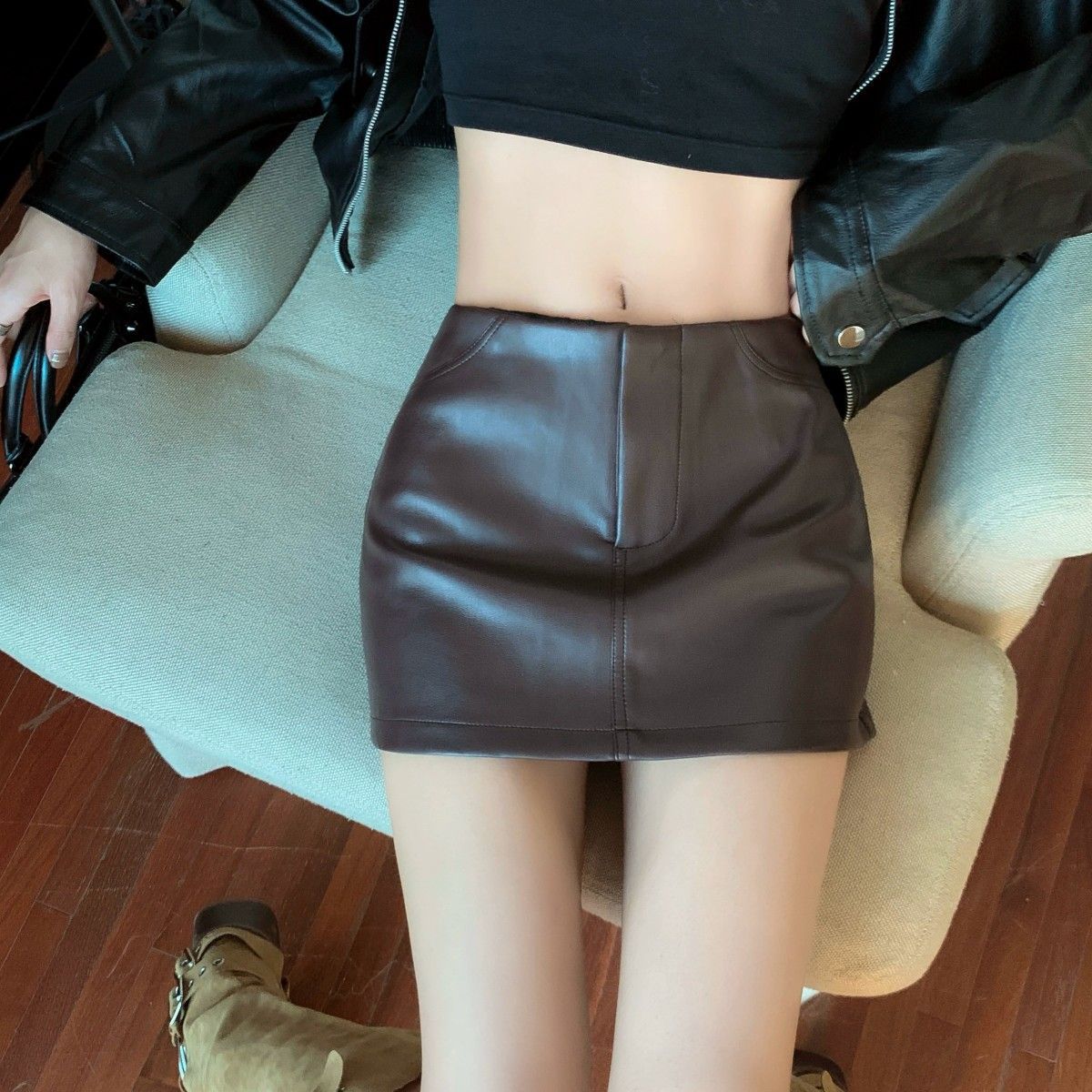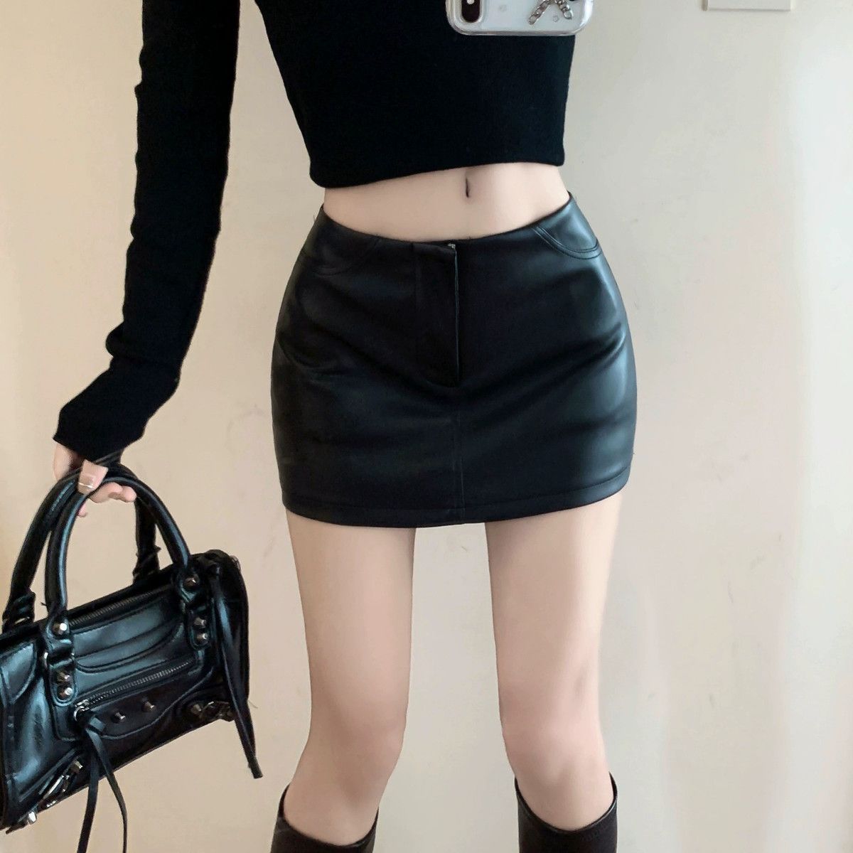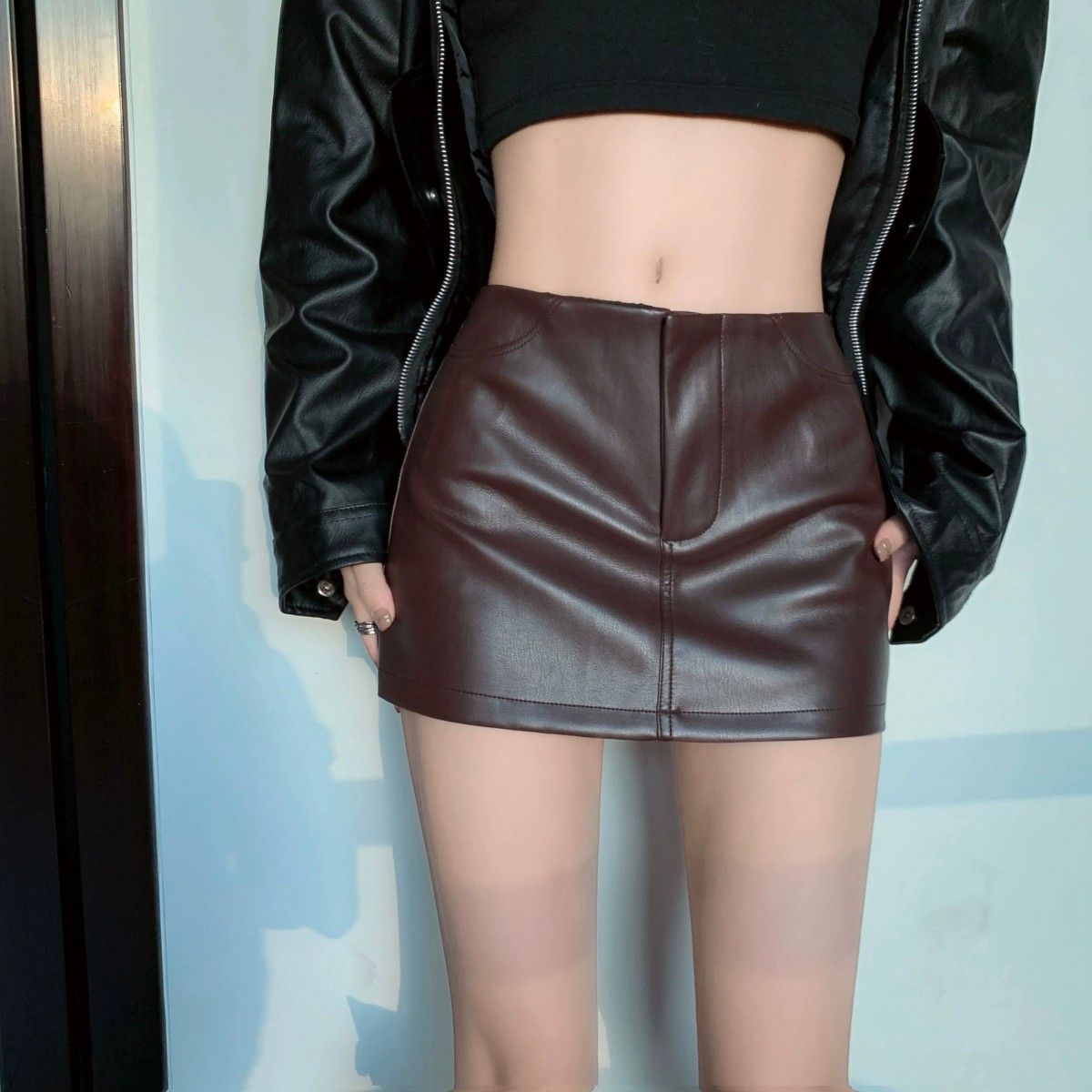Maillard 패션 핫 소녀 가죽 스커트 여성 봄 새로운 블랙 하이 웨이스트 힙 스커트 슬림 캐주얼 짧은 스커트스토어 가기