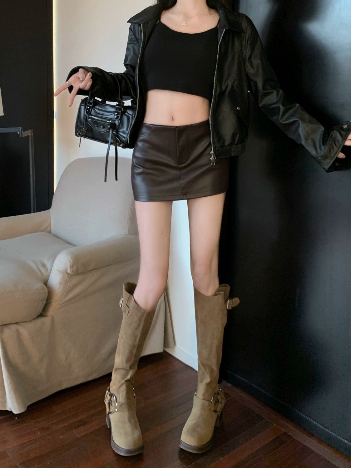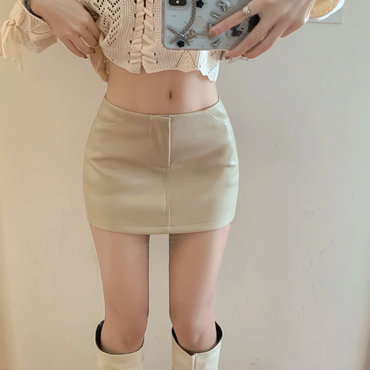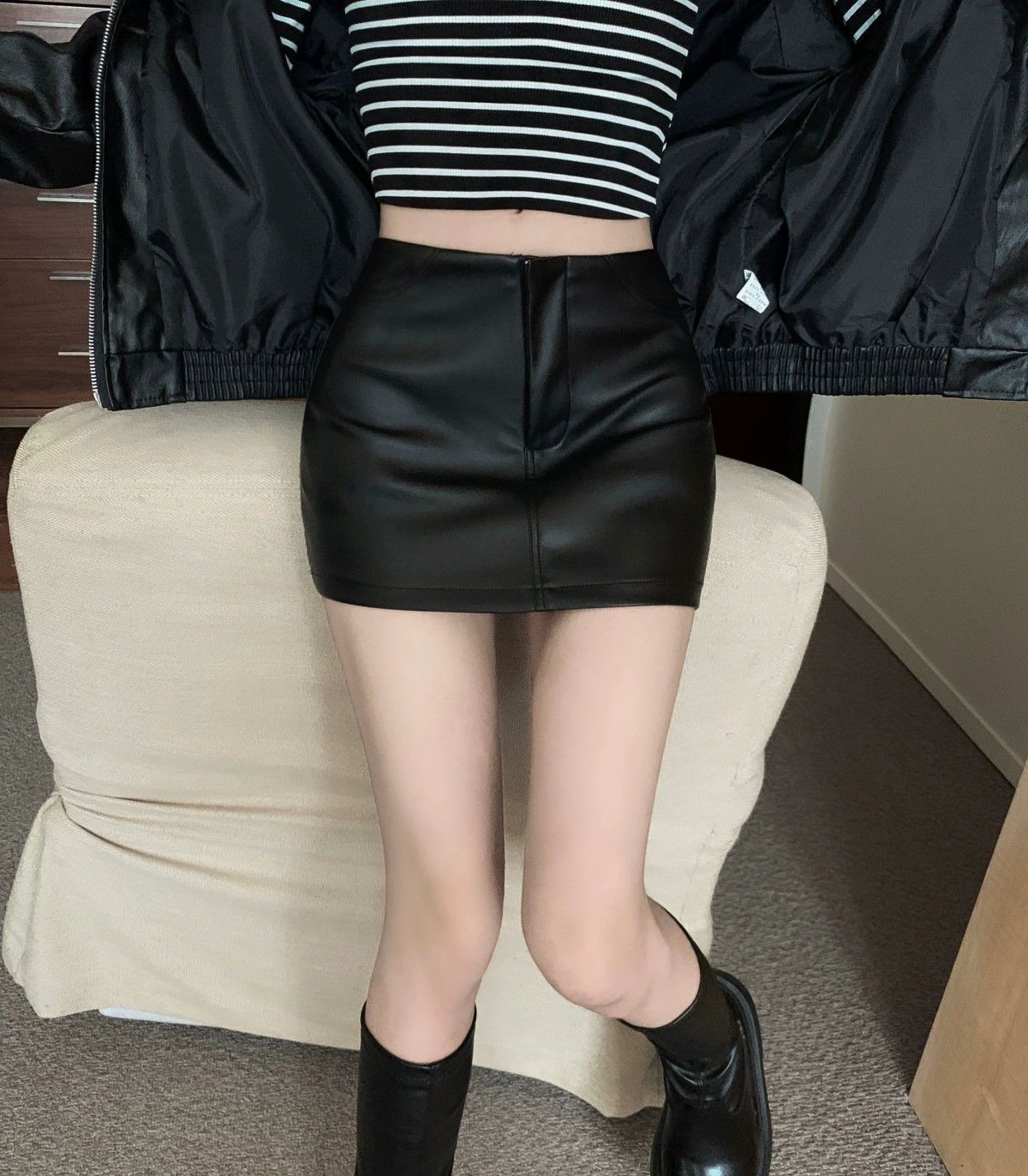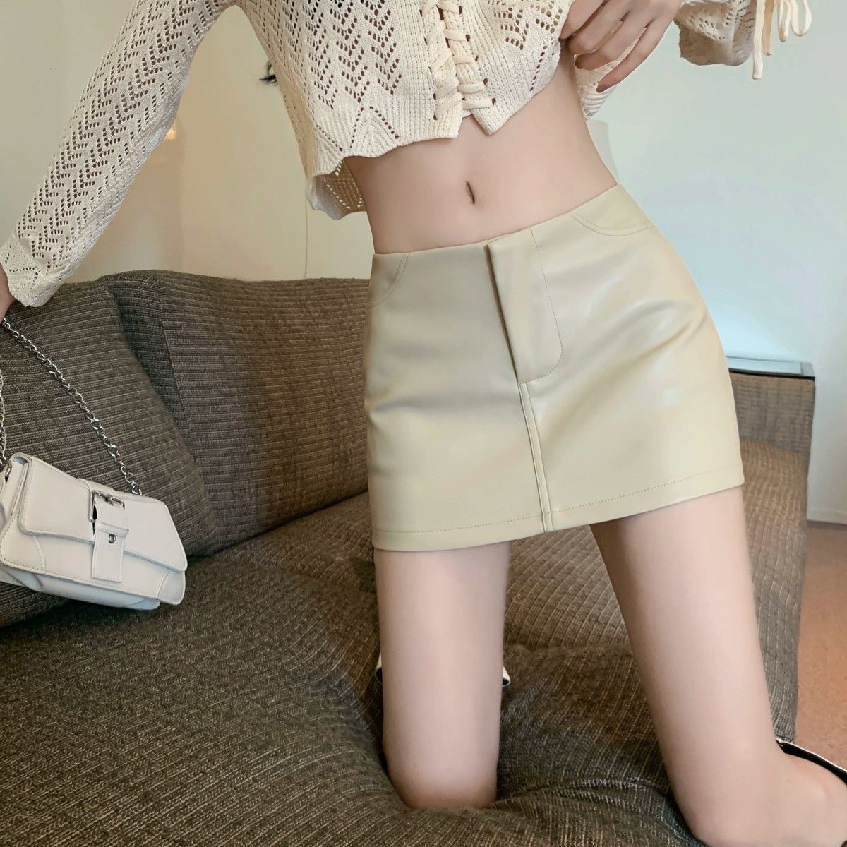 Maillard 패션 핫 소녀 가죽 스커트 여성 봄 새로운 블랙 하이 웨이스트 힙 스커트 슬림 캐주얼 짧은 스커트스토어 가기