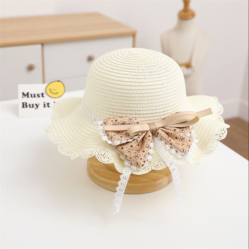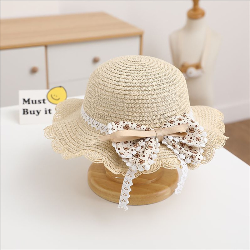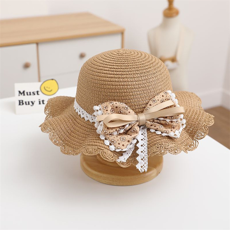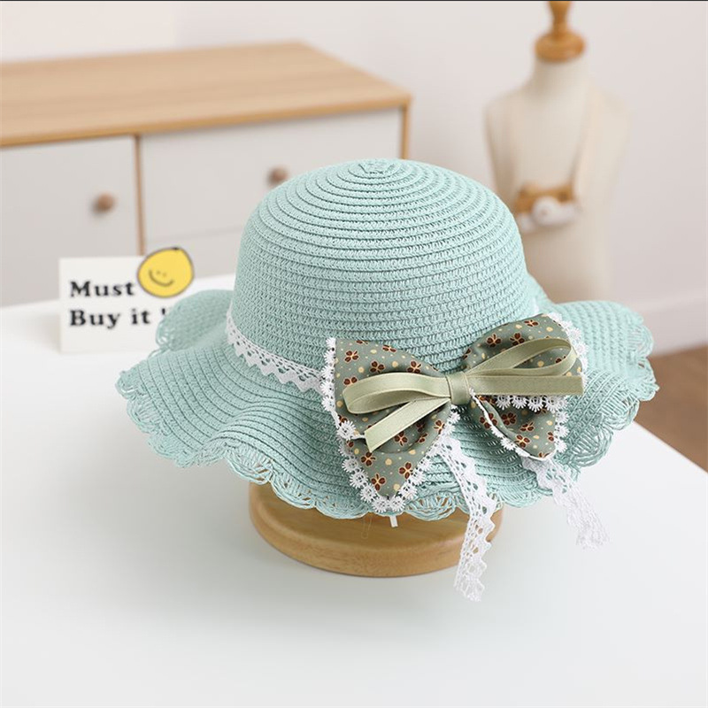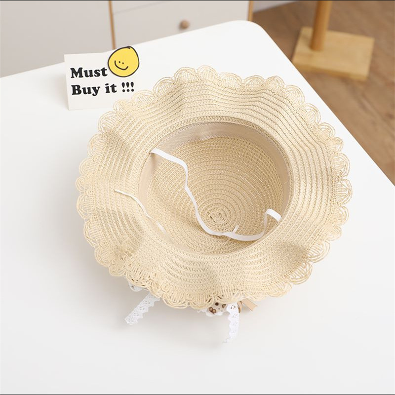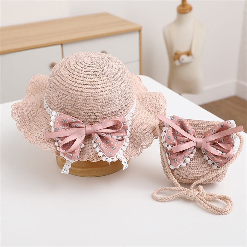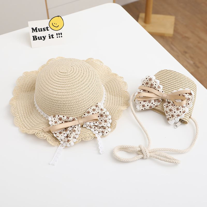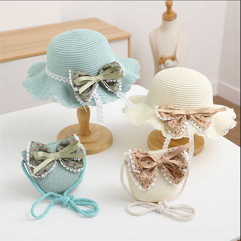 어린이 밀짚 모자 활 가방 세트 여름 태양 모자 한국 소녀 봄 가을을위한 귀여운 슈퍼 귀여운 선 스크린 모자