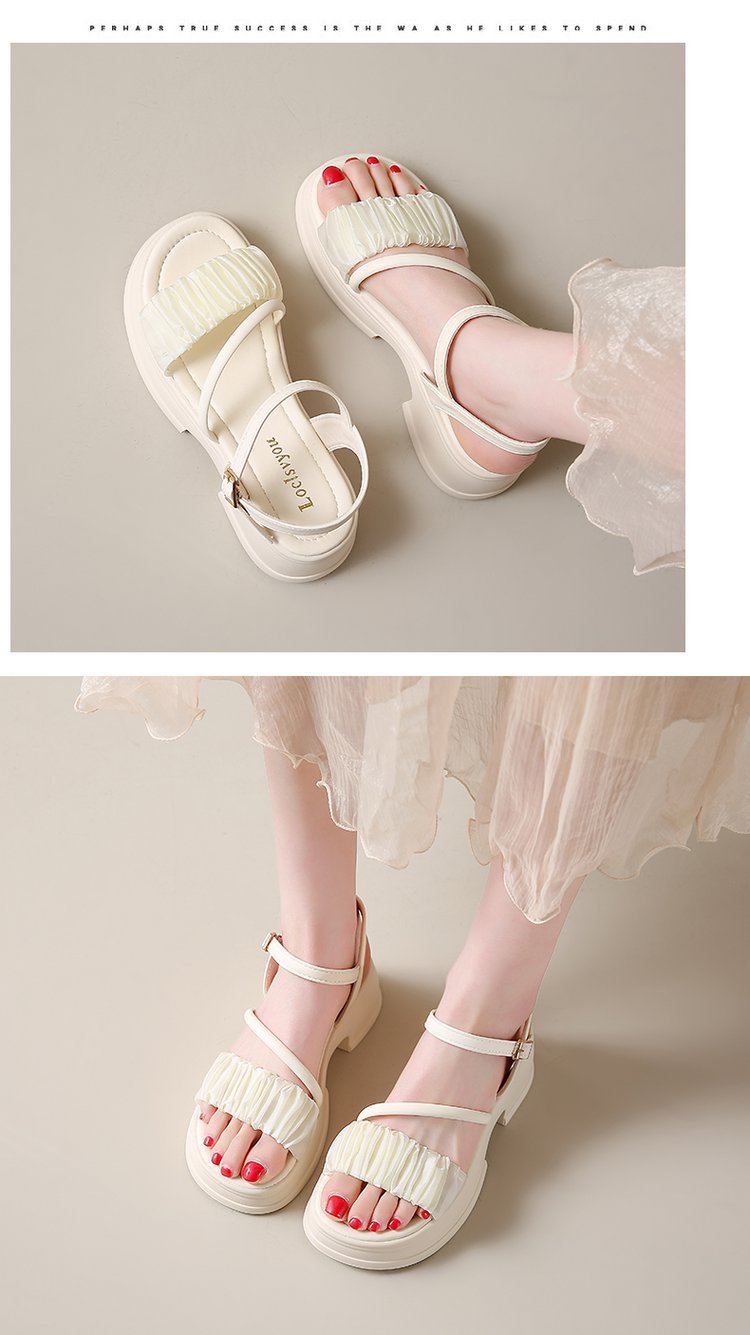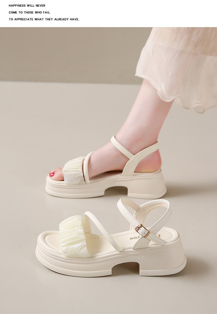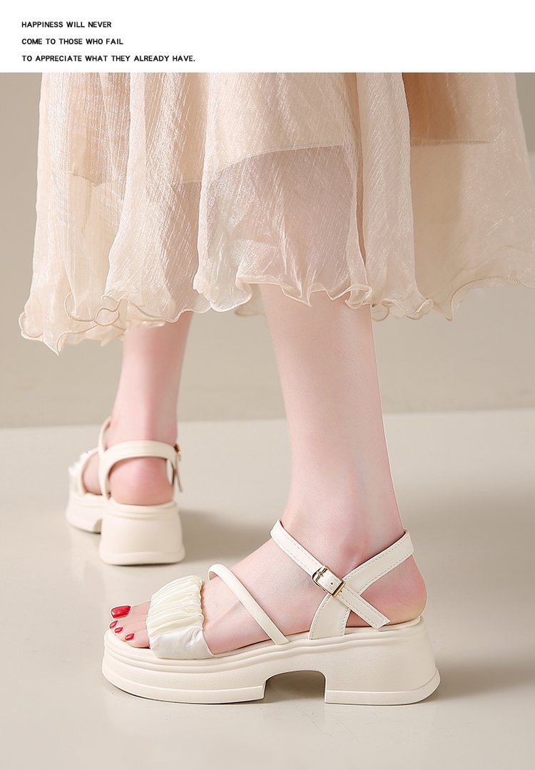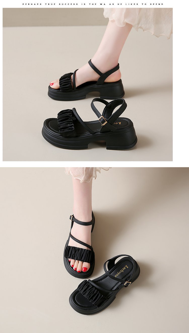 2025 여름 새로운 두꺼운 밑창 샌들 여성의 작은 높이 증가 요정 스타일 캐주얼 올 매치 유행 두꺼운 비치 슈즈스토어 가기