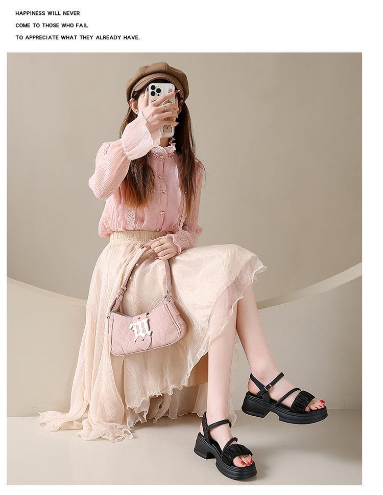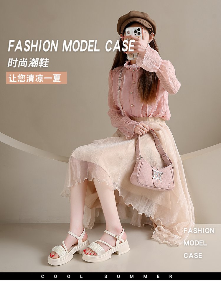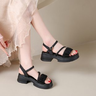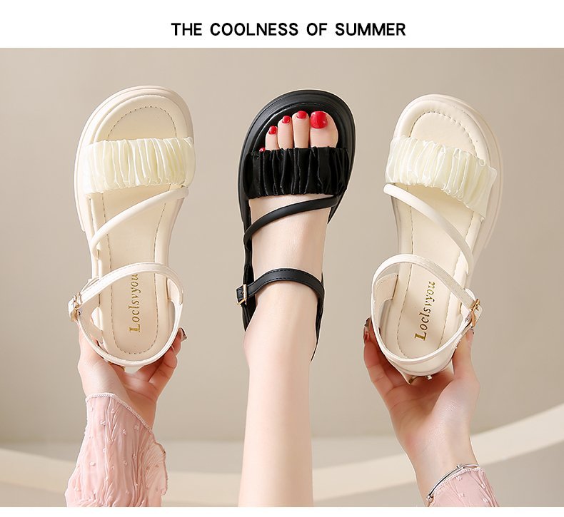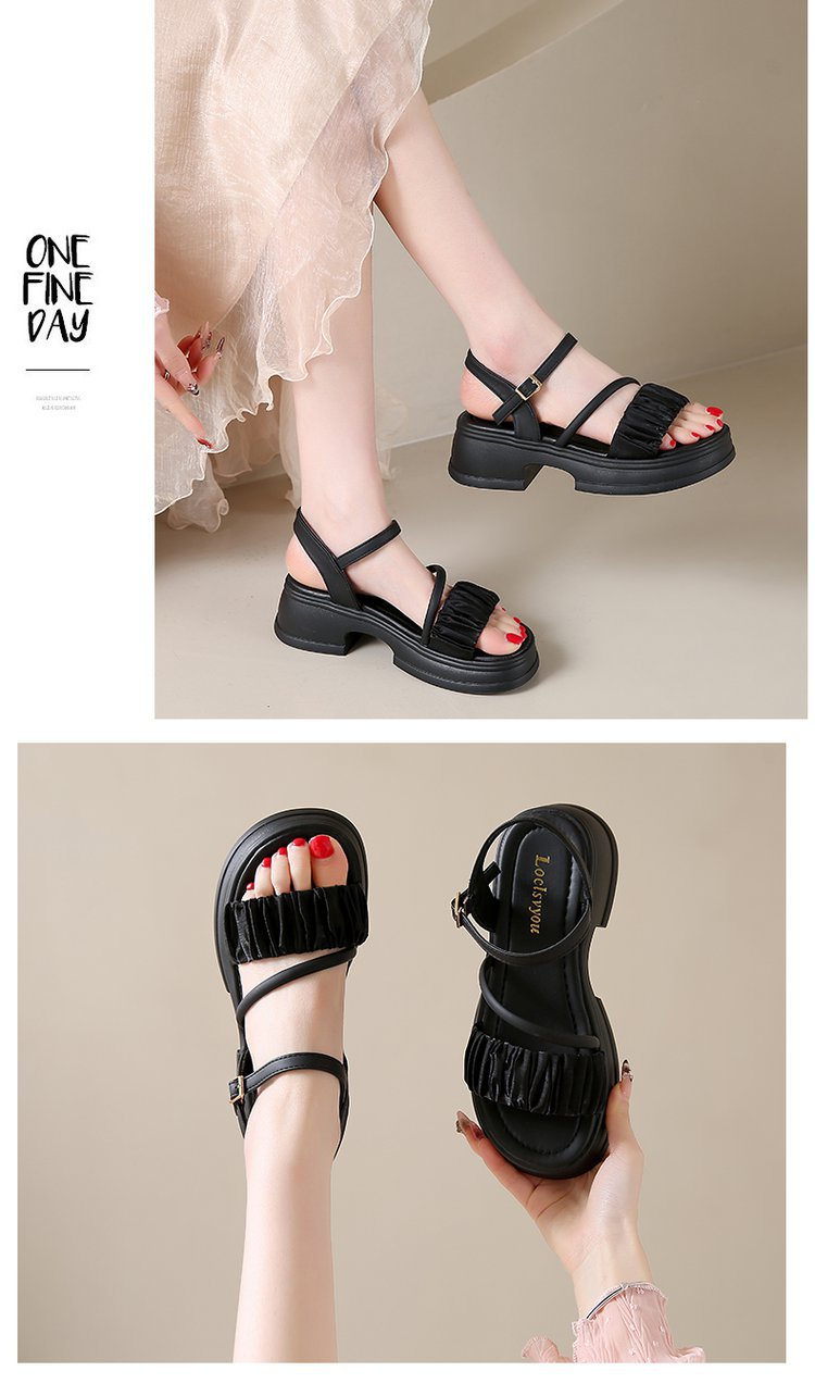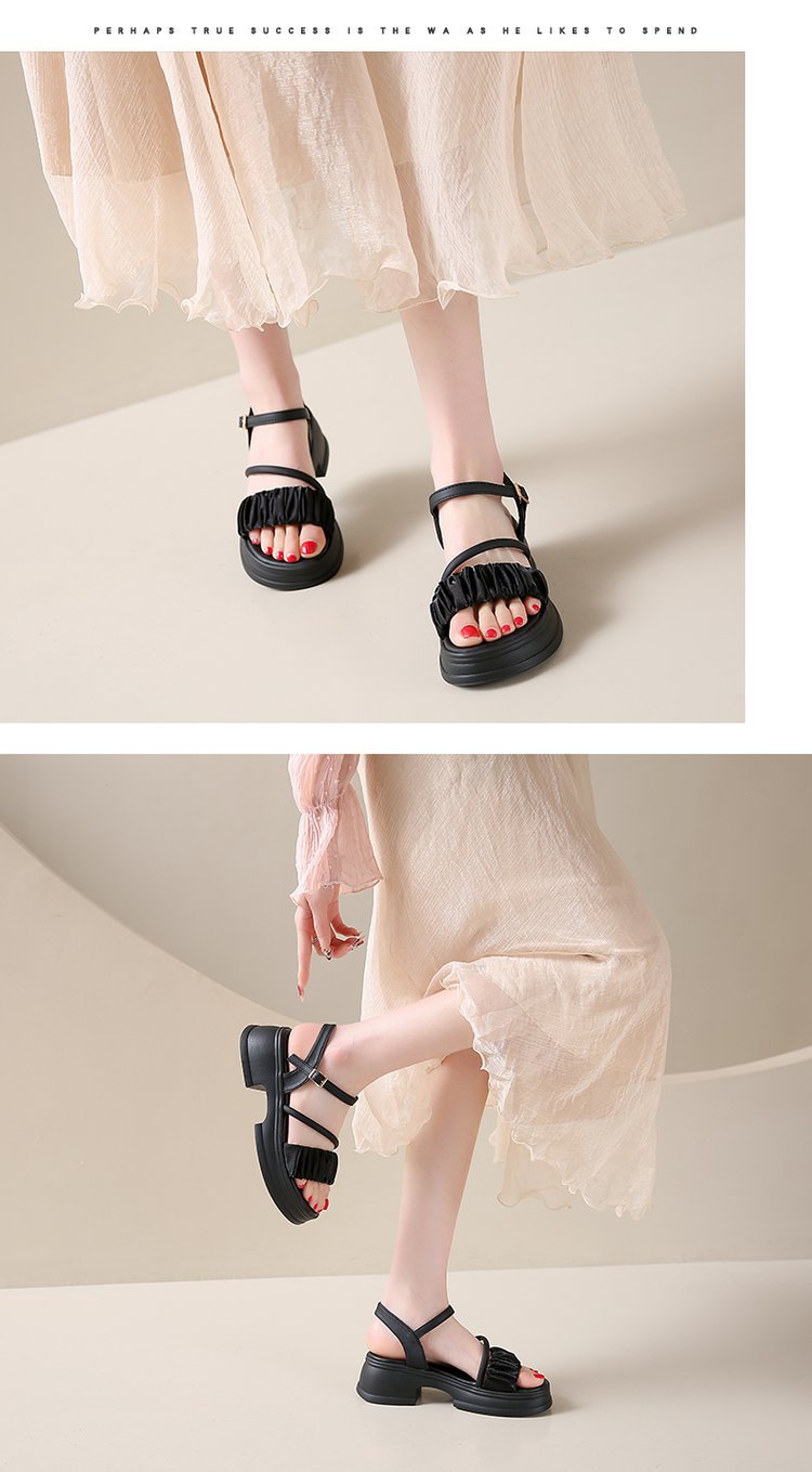 2025 여름 새로운 두꺼운 밑창 샌들 여성의 작은 높이 증가 요정 스타일 캐주얼 올 매치 유행 두꺼운 비치 슈즈스토어 가기