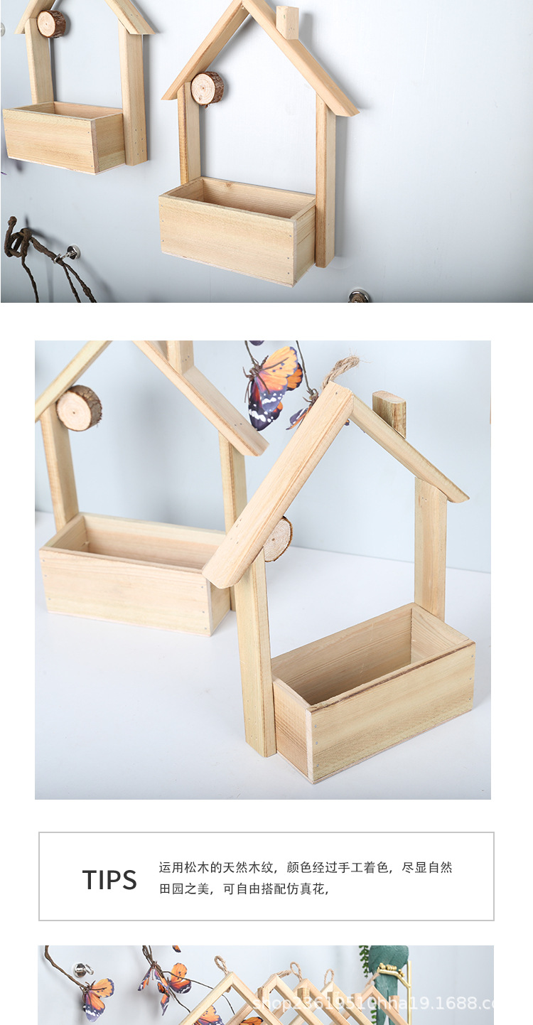 벽걸이형 새집, 벽걸이 화분 장식, 나무 공예품, 인조 꽃 나무집 장식품, 가정용스토어 가기