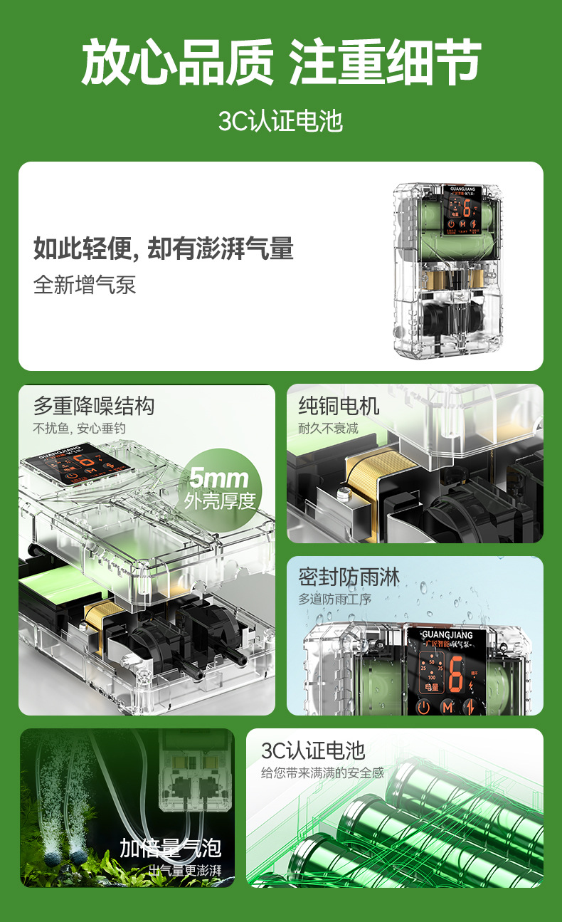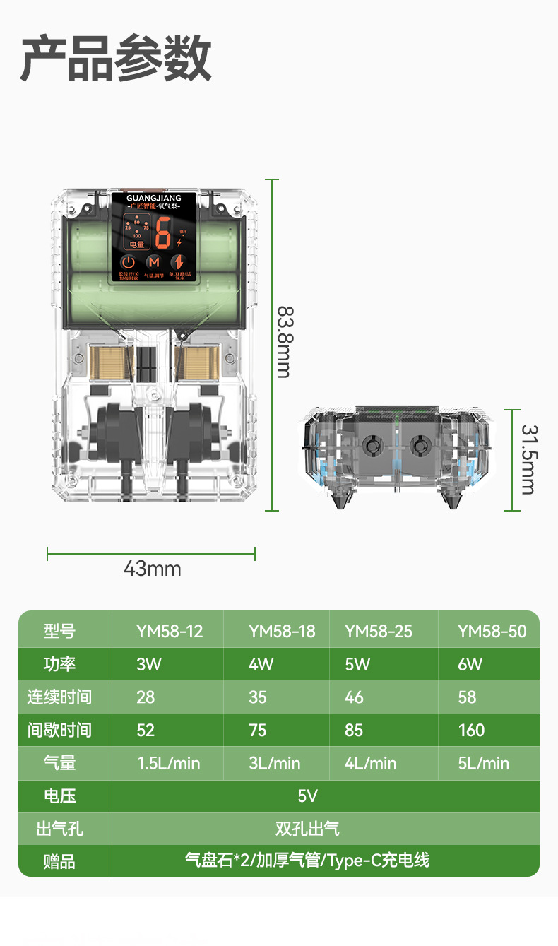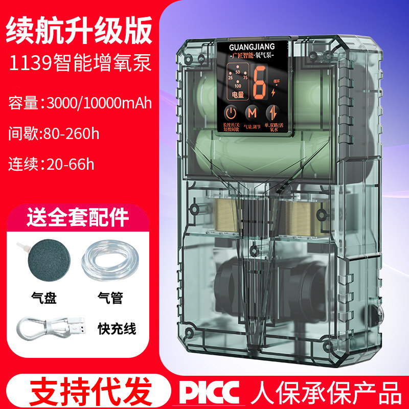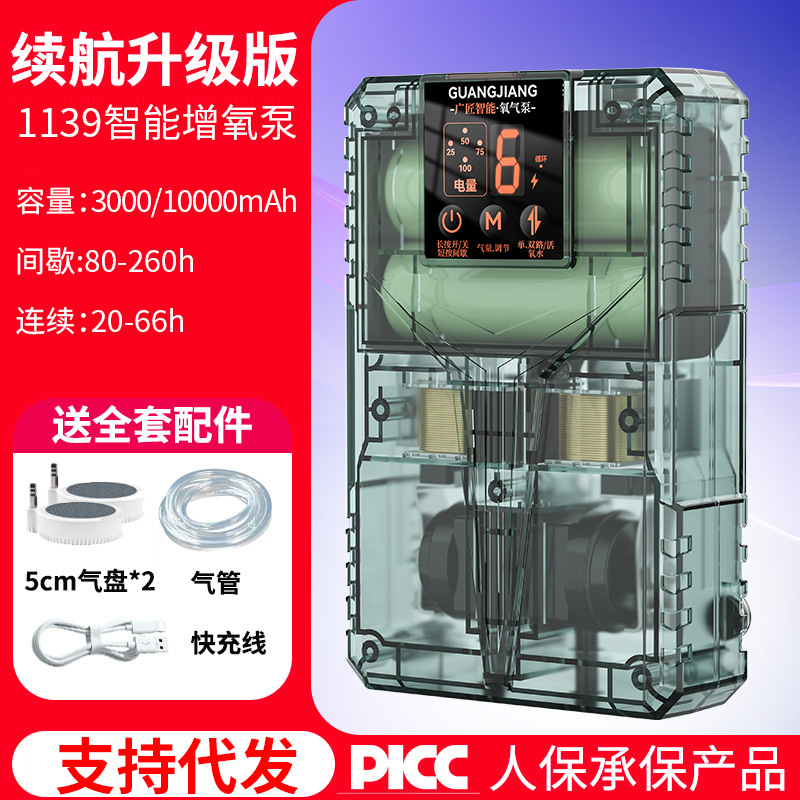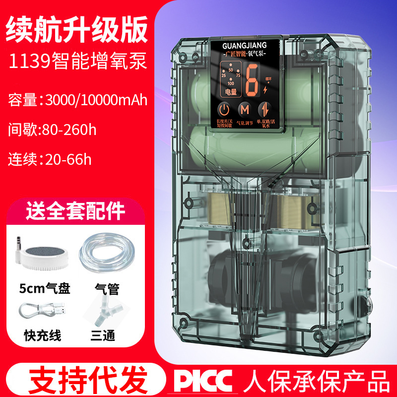 • 추천! 업그레이드된 6000mAh + 투명 + 5CM 나노 기포 발생기 * 1