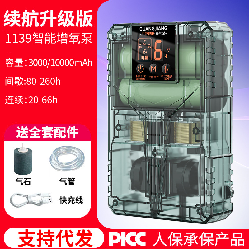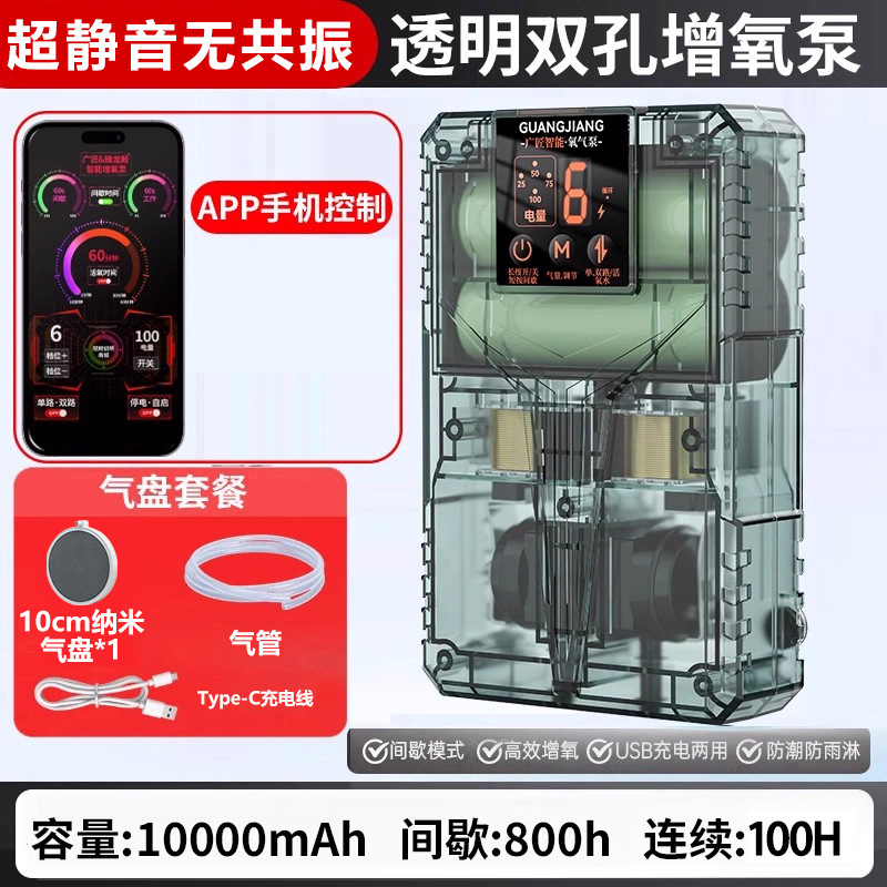 • 추천! 업그레이드된 6000mAh + 투명 + 10CM 나노 기포 발생기 * 1