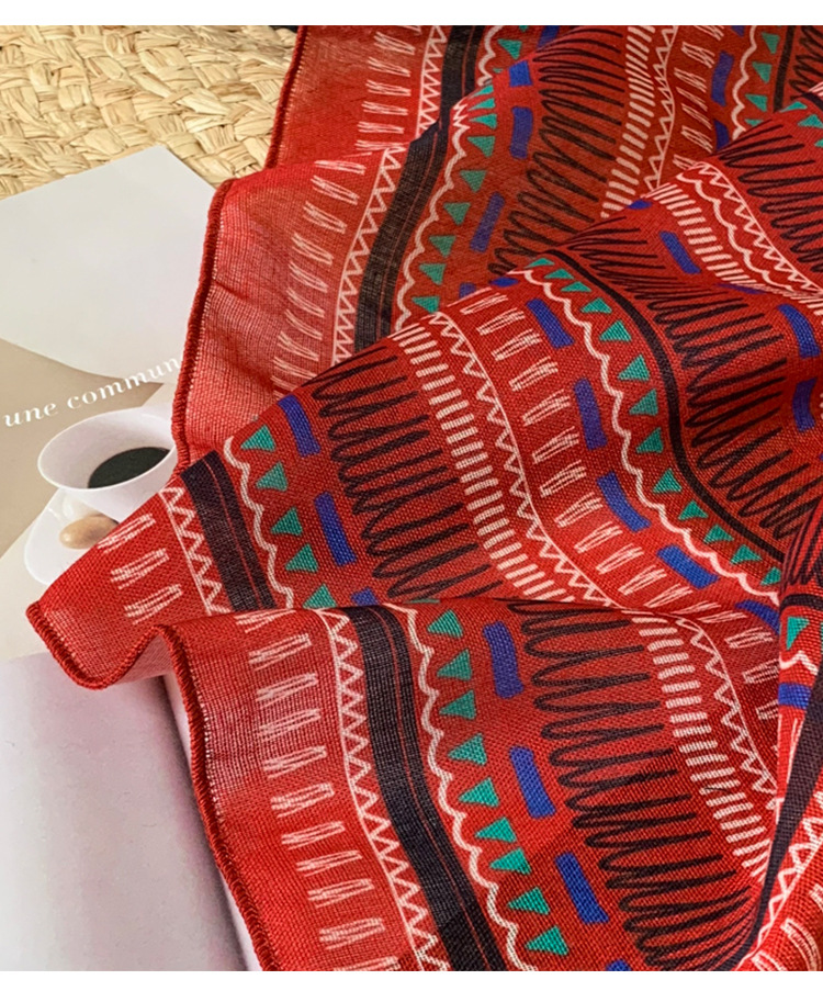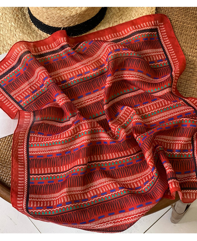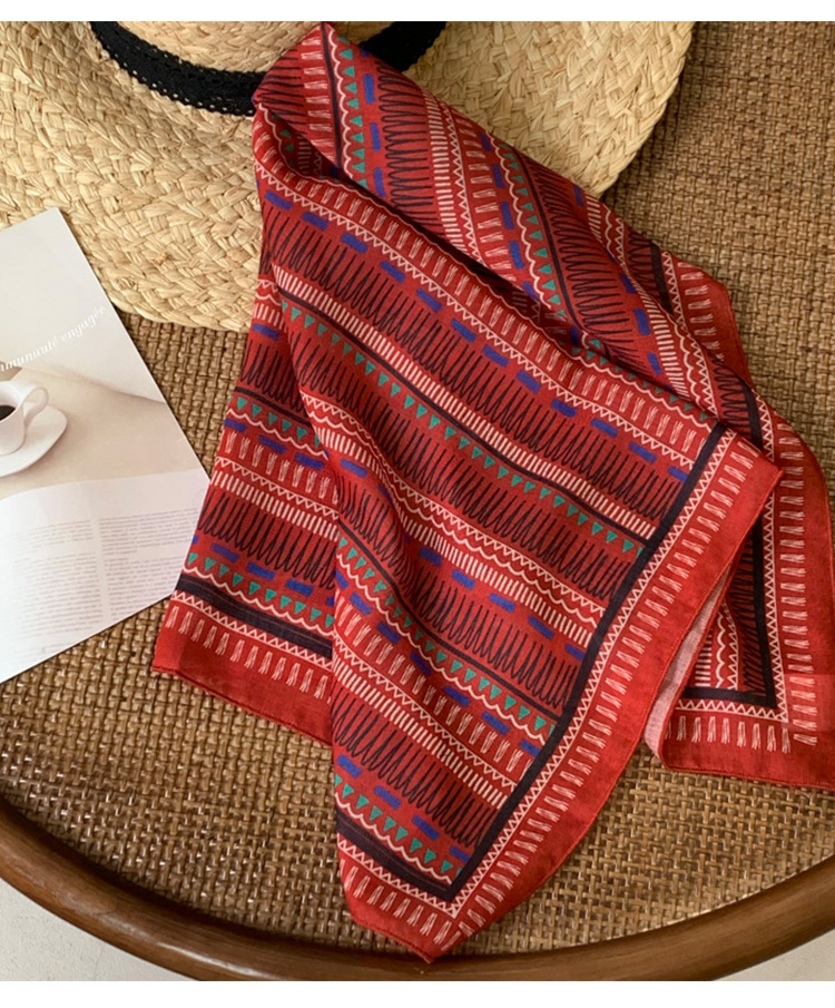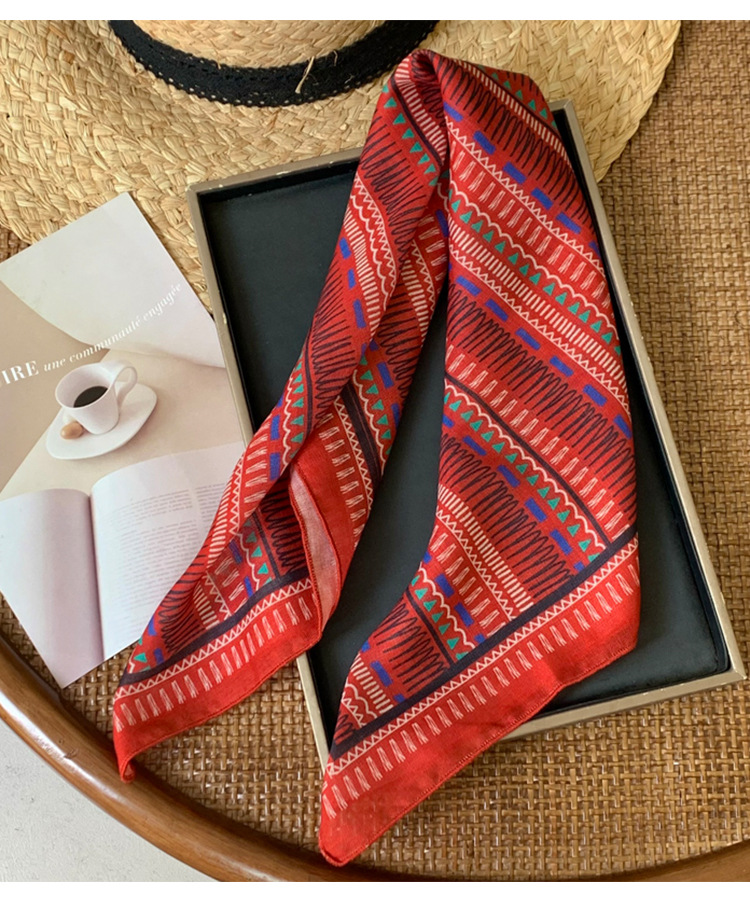 빈티지 레드 코튼 및 리넨 헤어 밴드 실크 스카프 작은 스퀘어 스카프 여성의 봄과 가을 스카프 넥타이 가방 장식 스카프 발가락 포장 스카프 올 매치