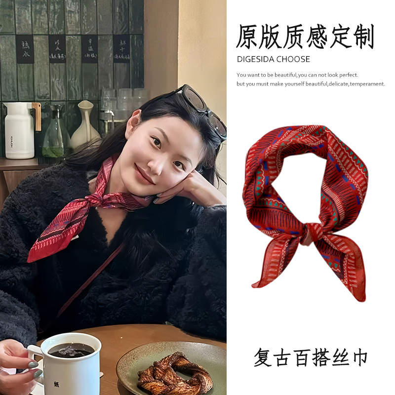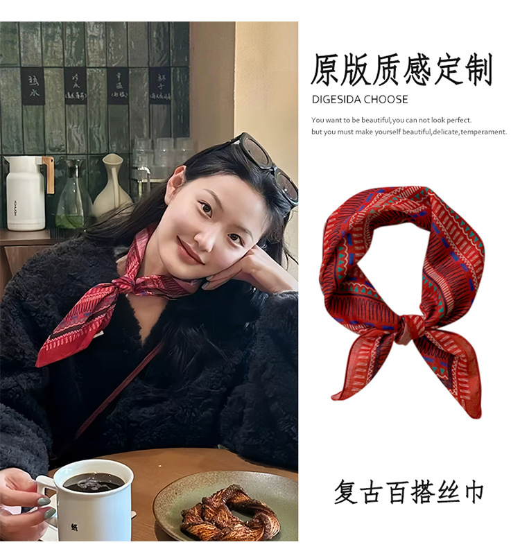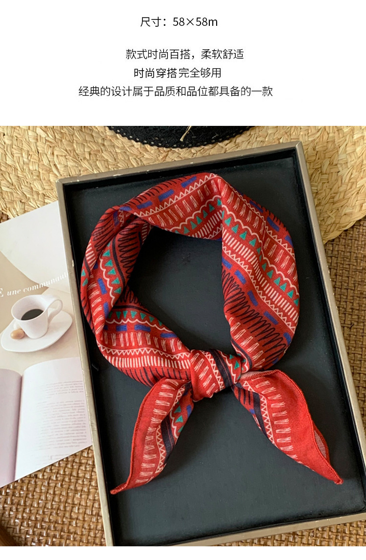 빈티지 레드 코튼 및 리넨 헤어 밴드 실크 스카프 작은 스퀘어 스카프 여성의 봄과 가을 스카프 넥타이 가방 장식 스카프 발가락 포장 스카프 올 매치스토어 가기