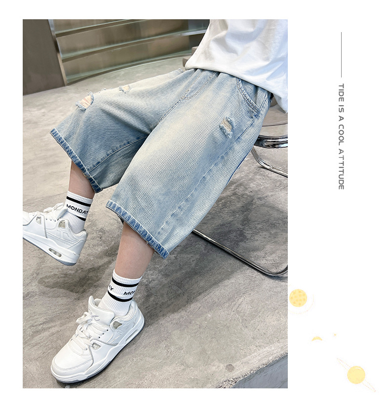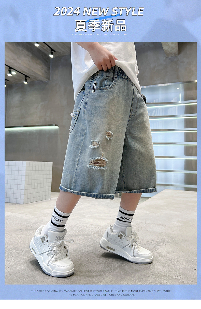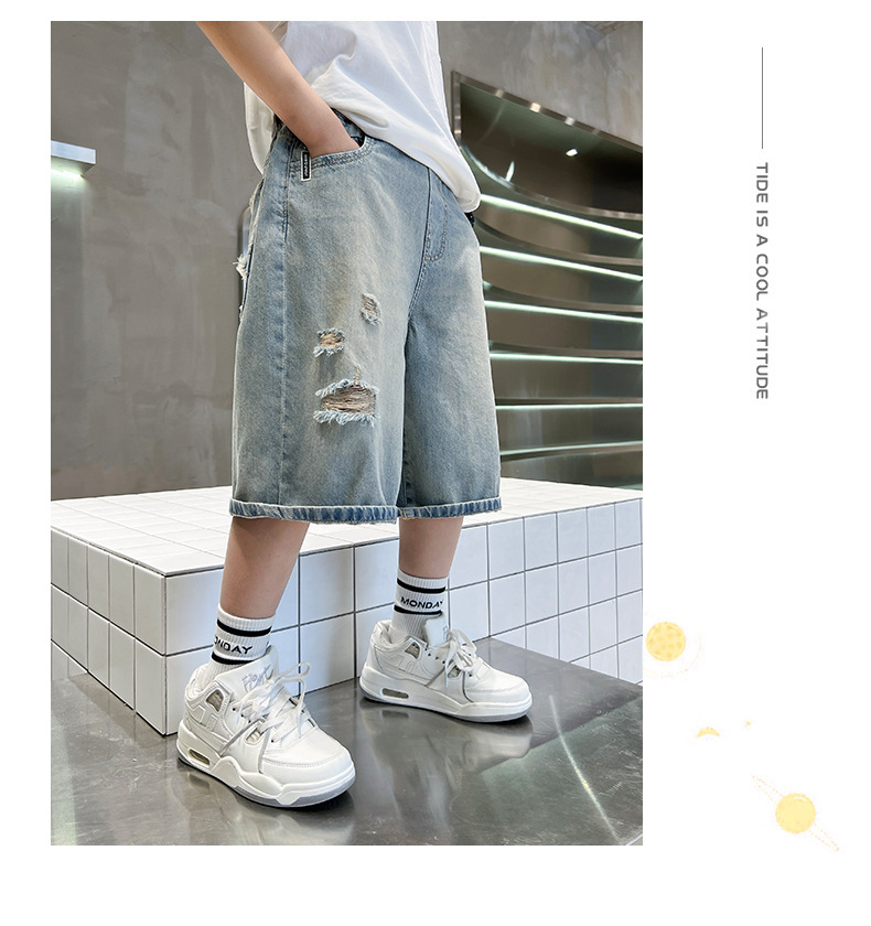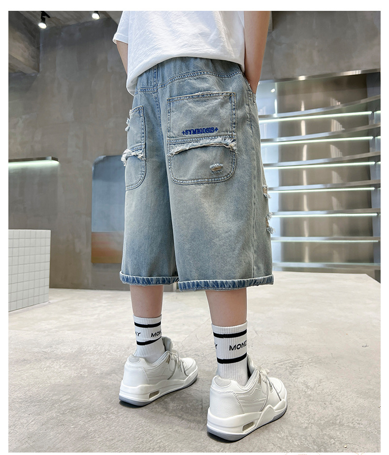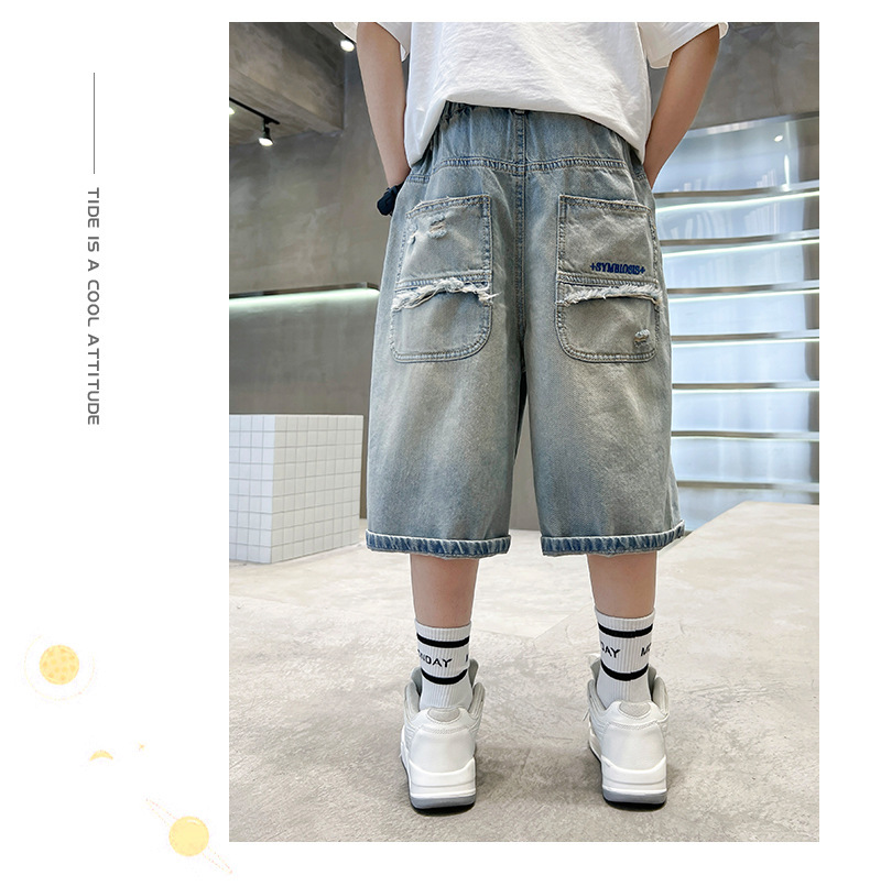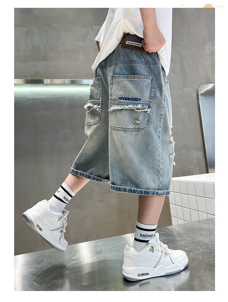 남아용 멋진 데미지 데님 반바지 2026년 신상 아동용 중대형 남아 5부/7부 중간 길이 바지 트렌디스토어 가기