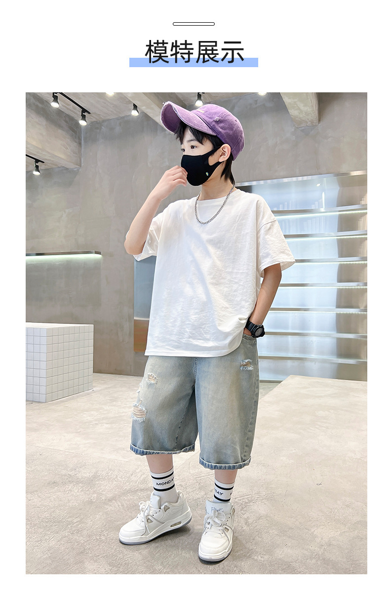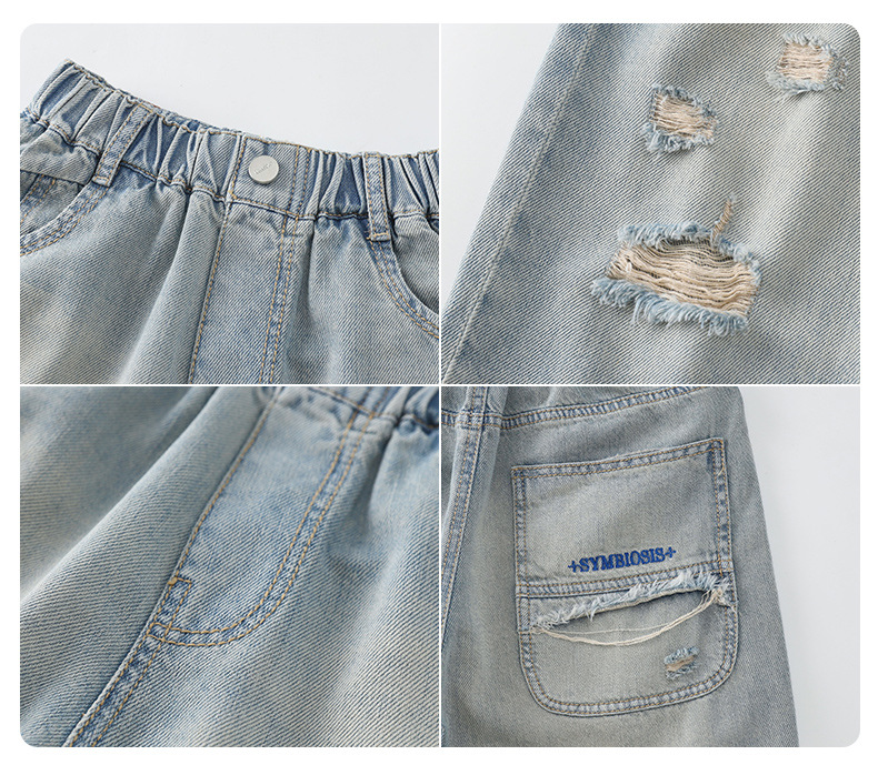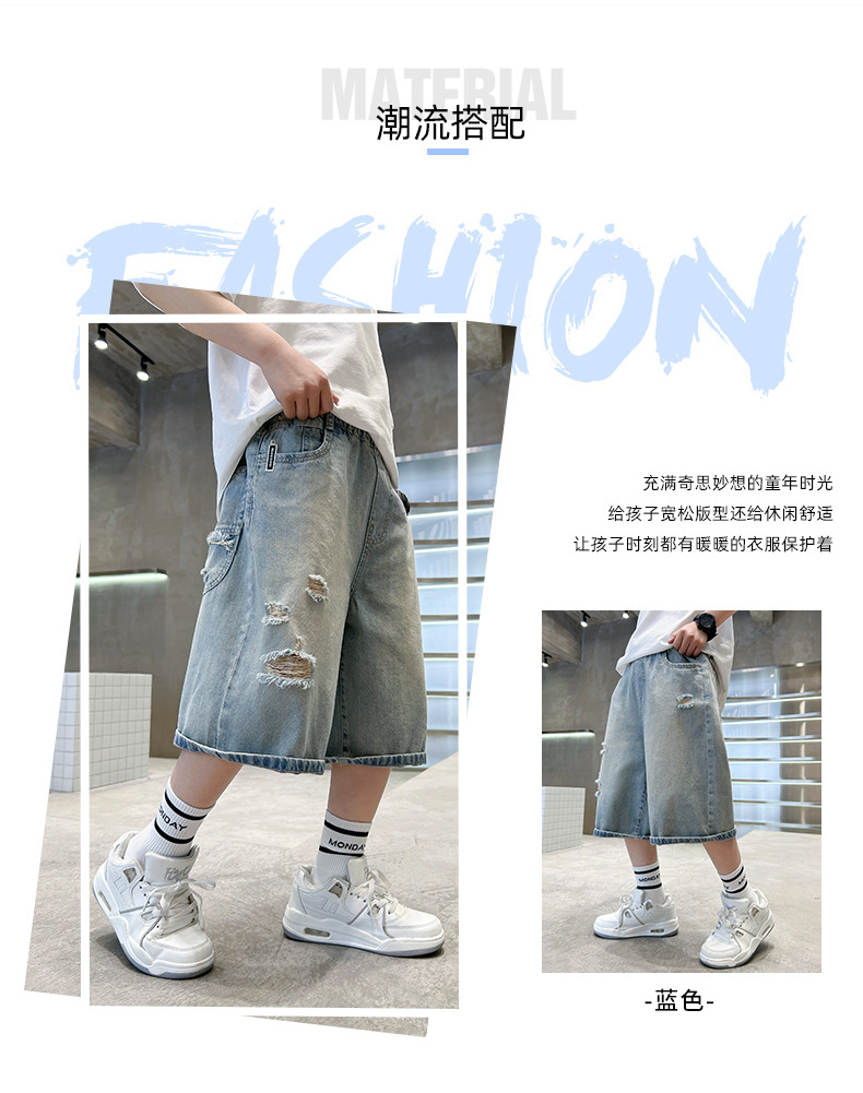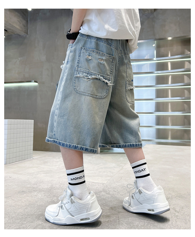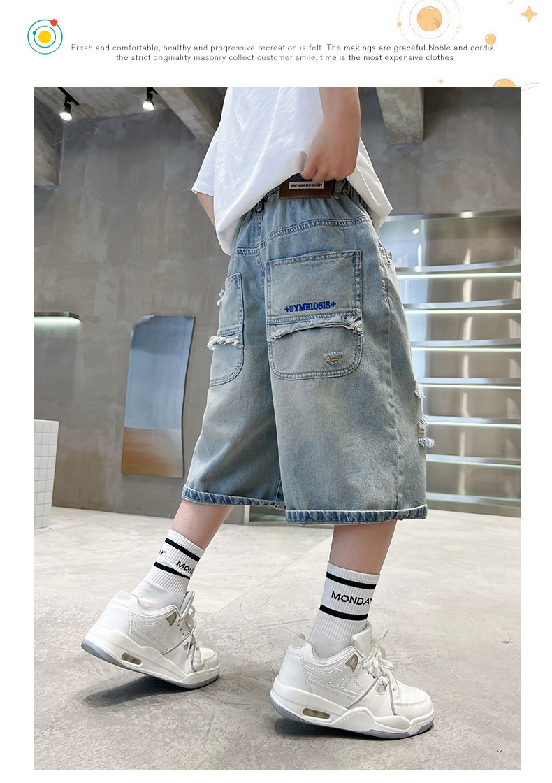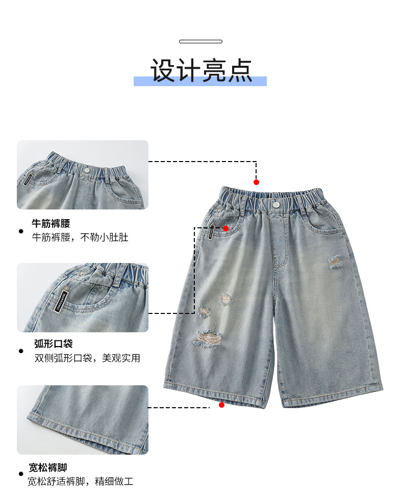 남아용 멋진 데미지 데님 반바지 2026년 신상 아동용 중대형 남아 5부/7부 중간 길이 바지 트렌디스토어 가기