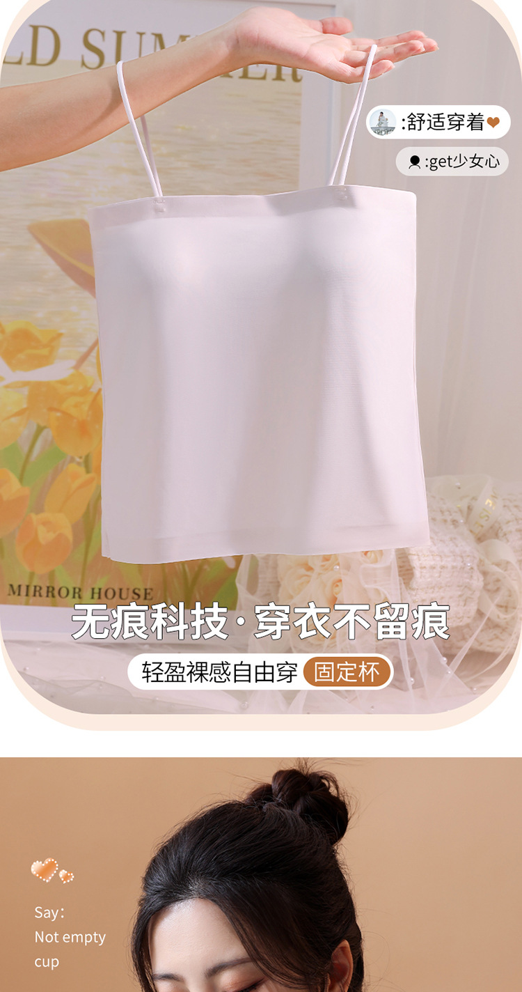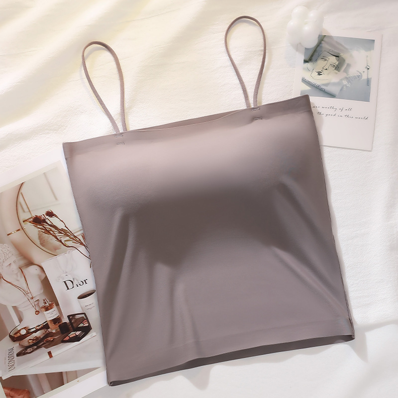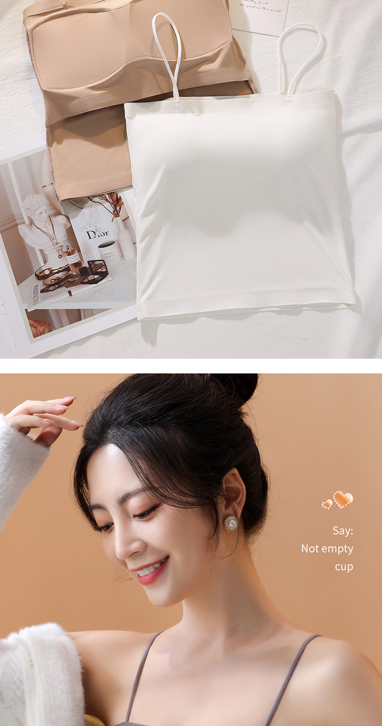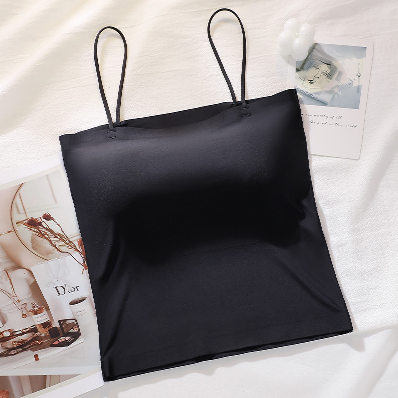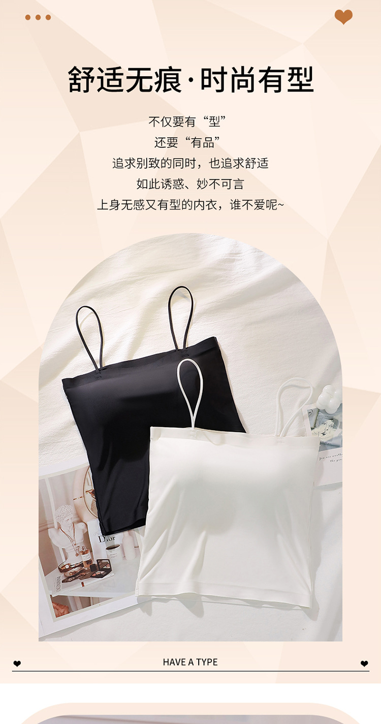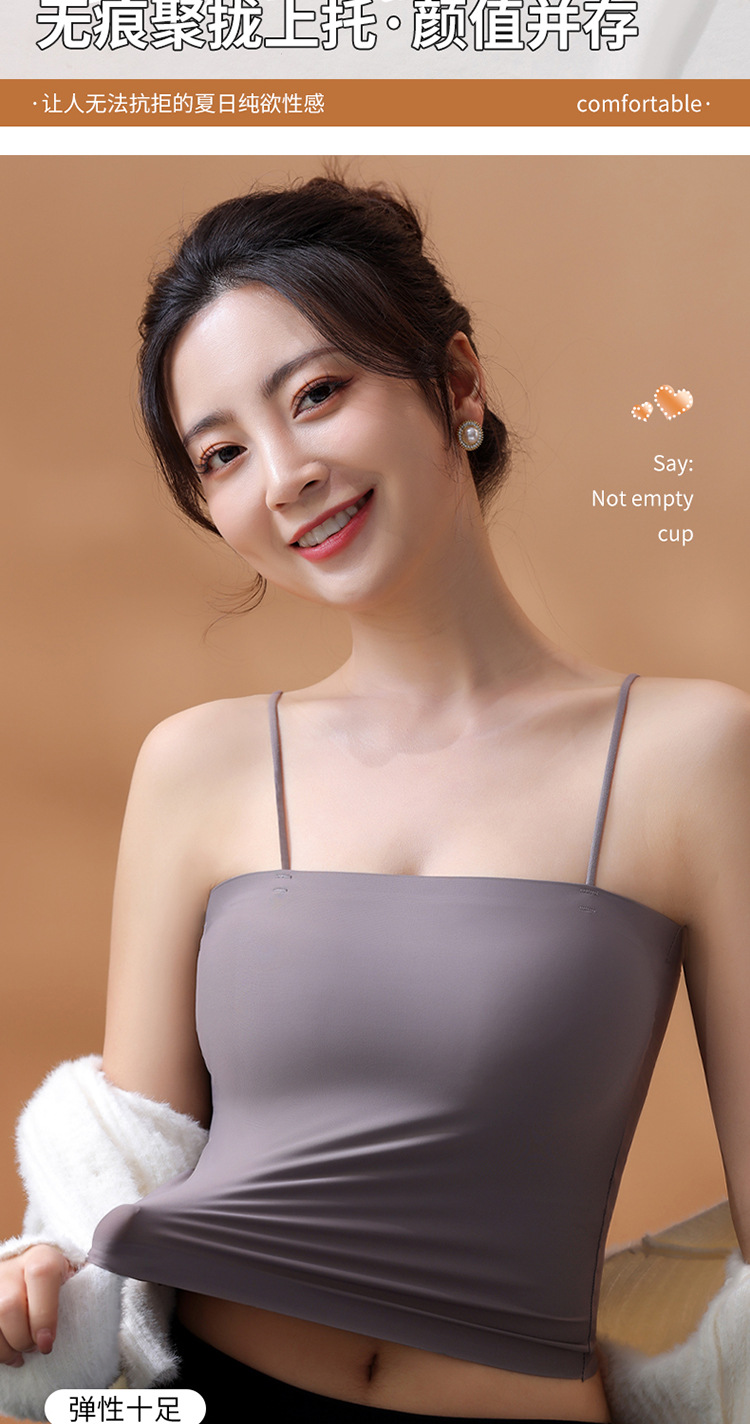 아이스 실크 트레이스리스 베이스 카미솔 조끼 여성용 외부 착용 안티 워킹 아름다운 백 튜브 탑 가슴 패드 내부 탑스토어 가기