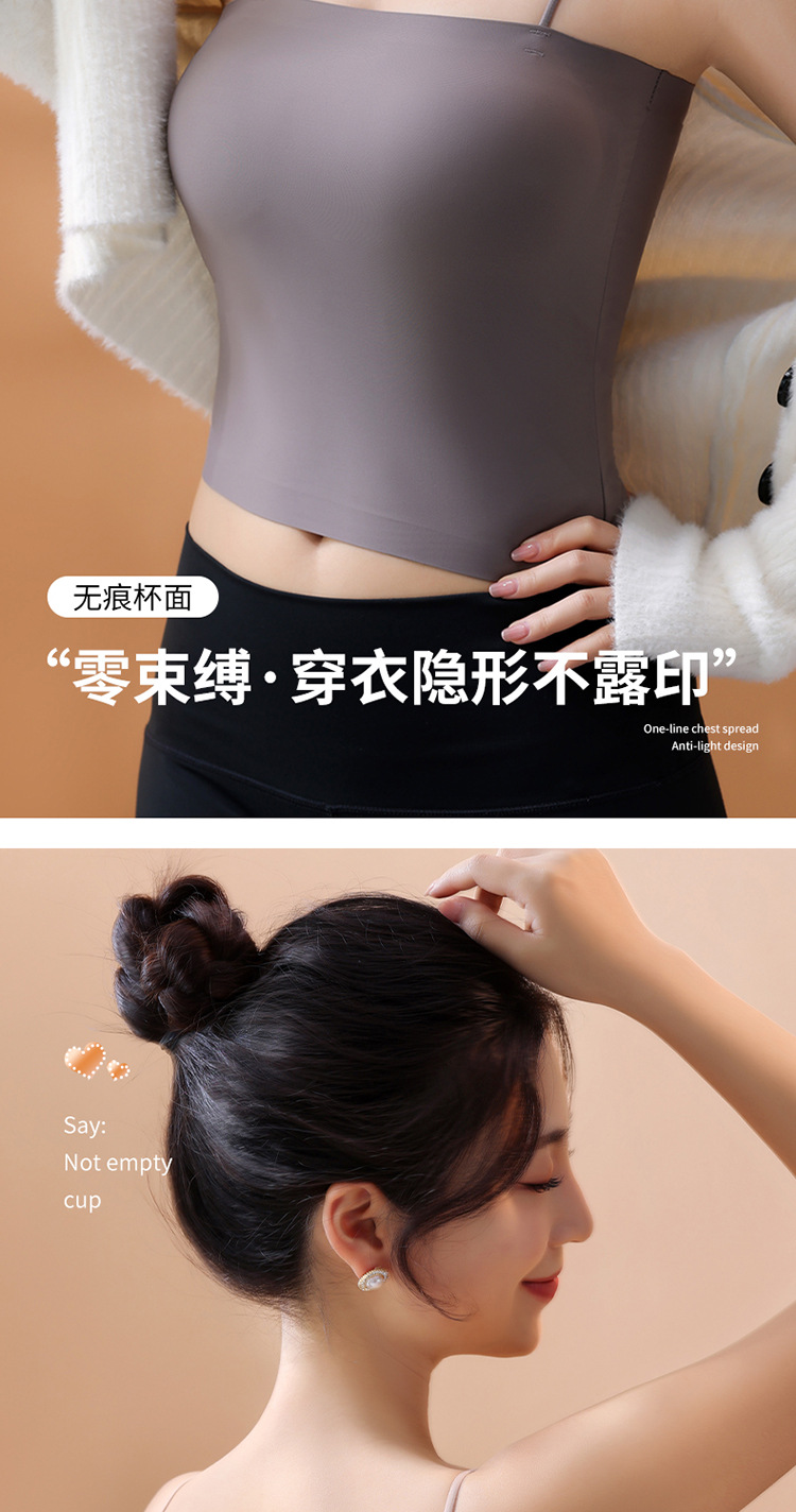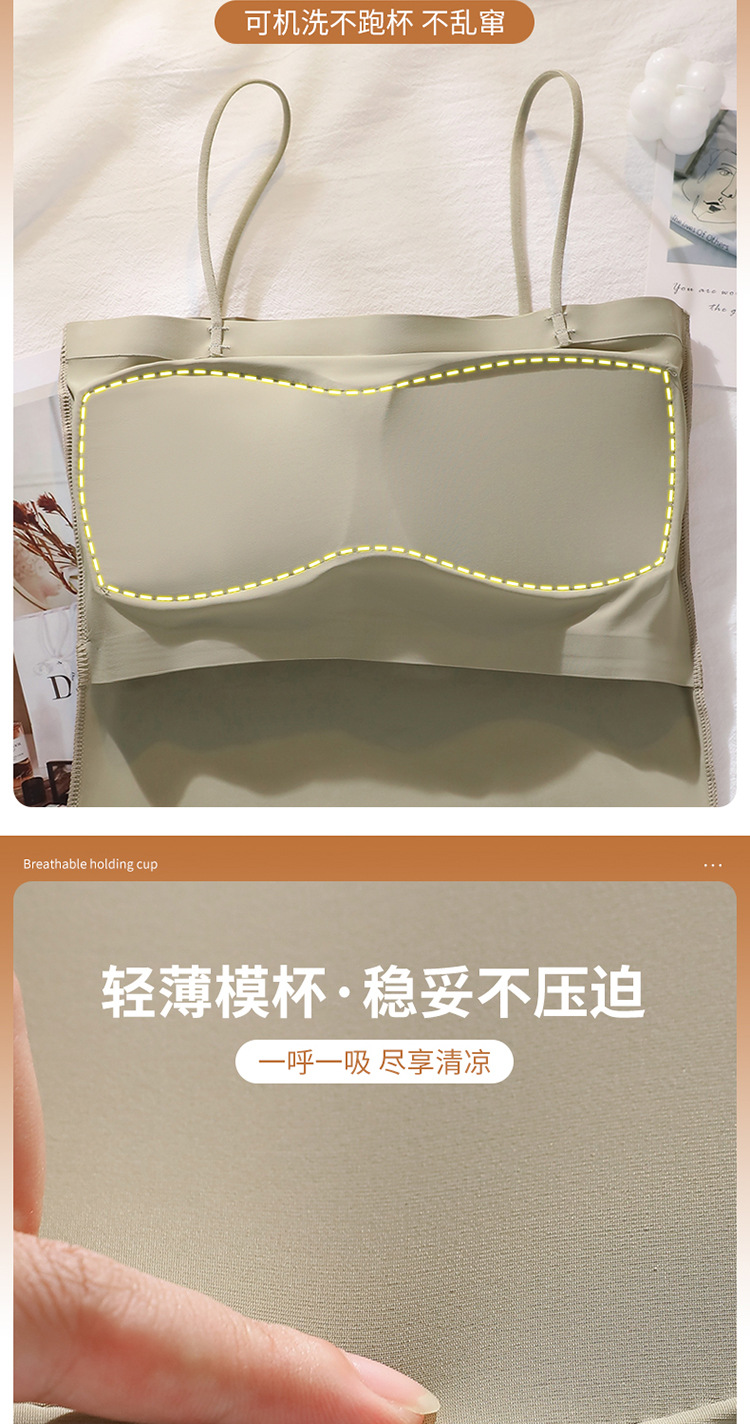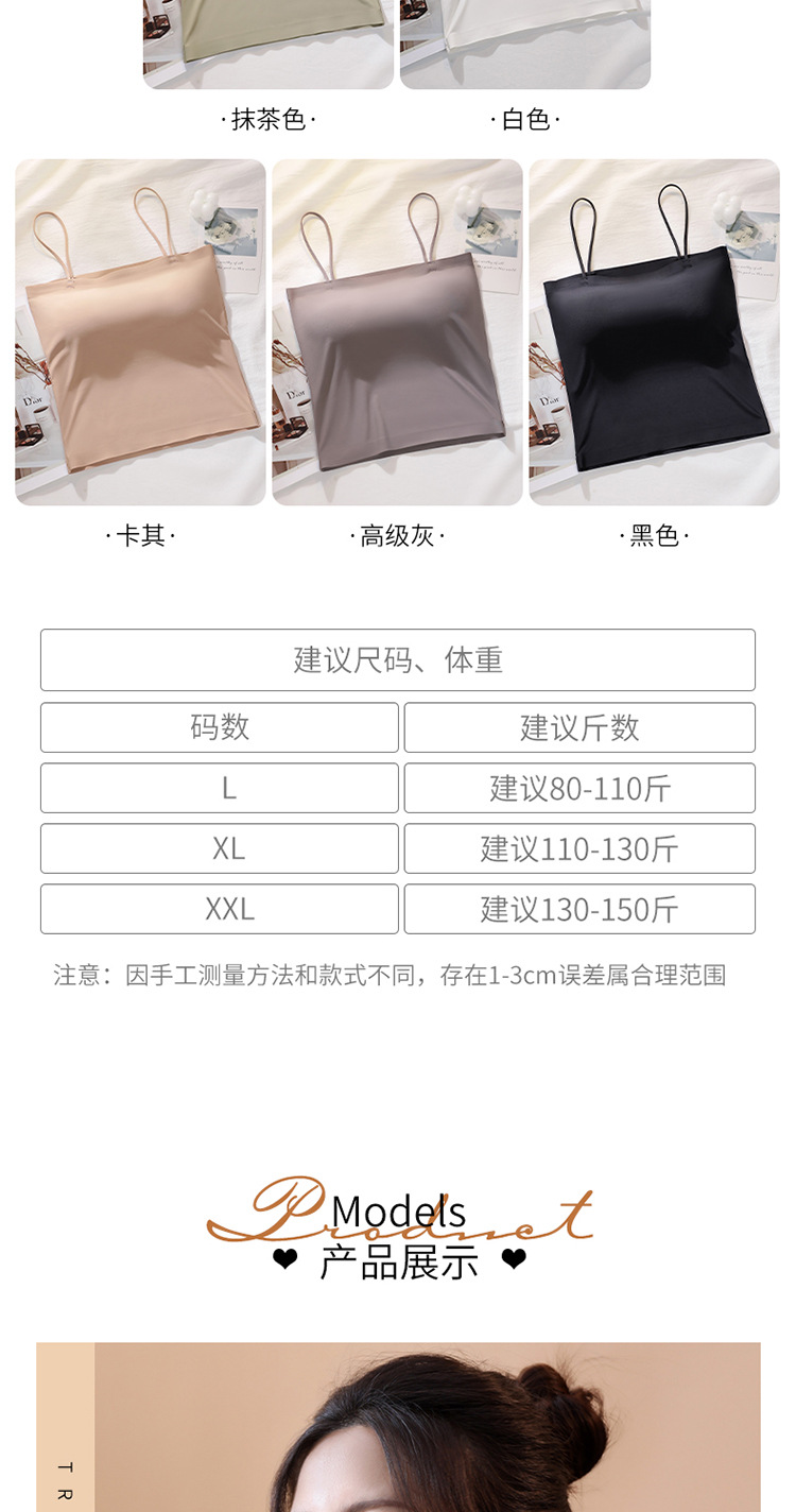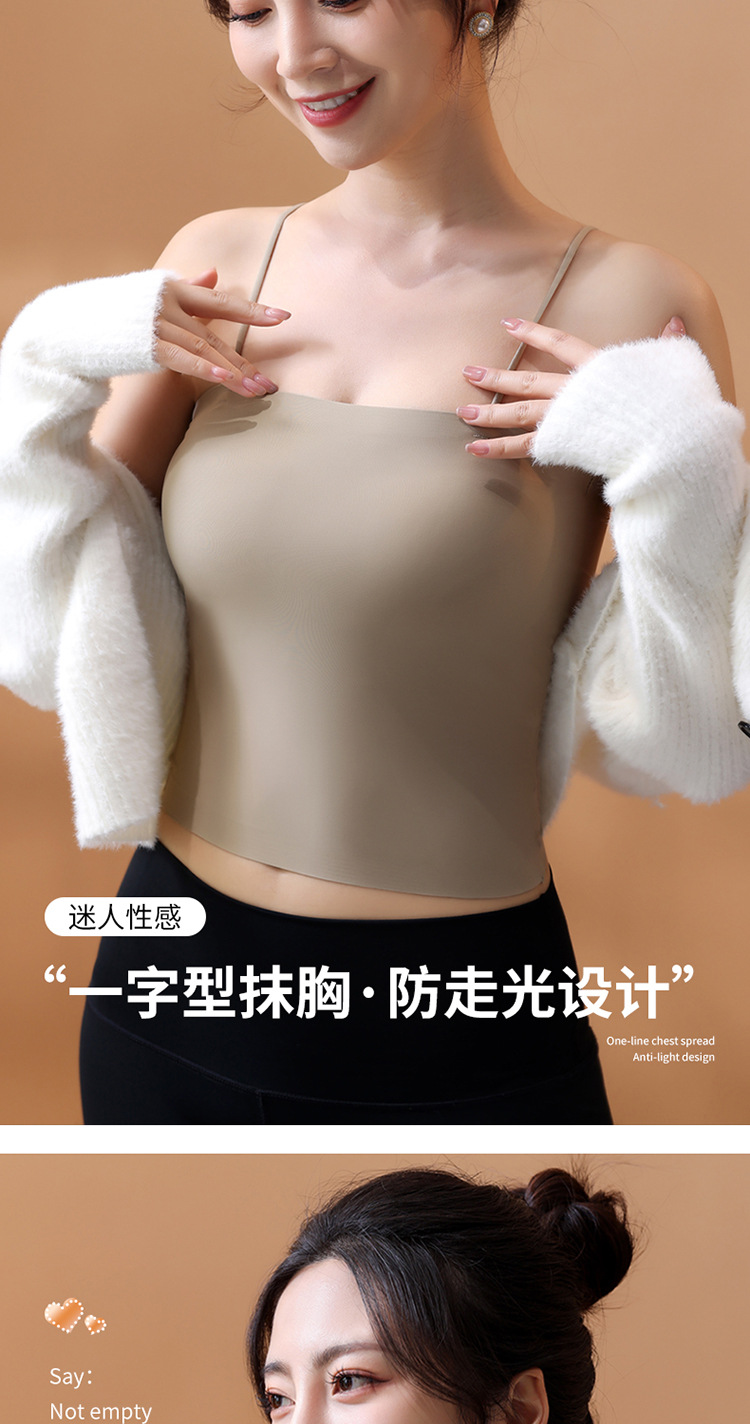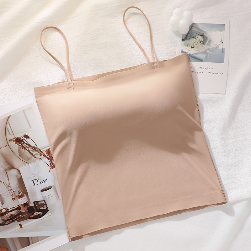 아이스 실크 트레이스리스 베이스 카미솔 조끼 여성용 외부 착용 안티 워킹 아름다운 백 튜브 탑 가슴 패드 내부 탑스토어 가기