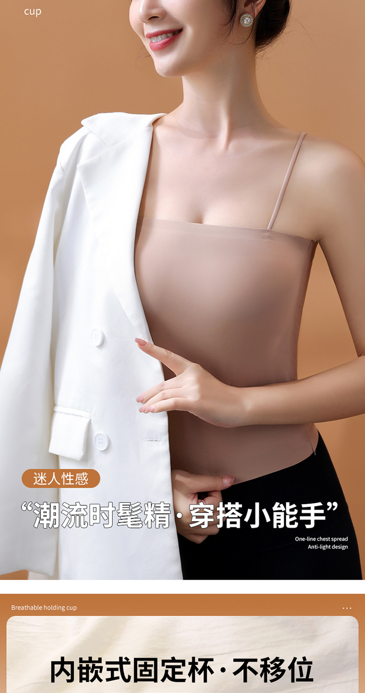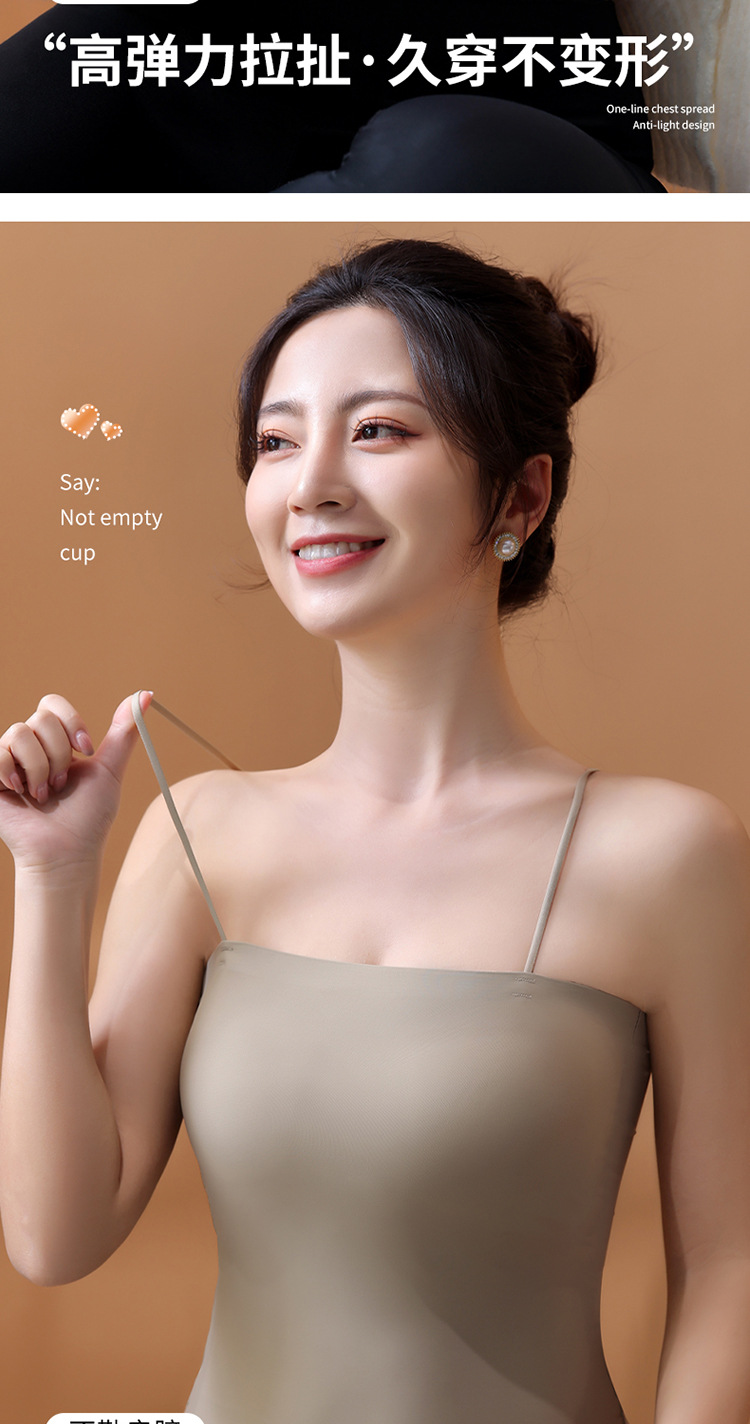 아이스 실크 트레이스리스 베이스 카미솔 조끼 여성용 외부 착용 안티 워킹 아름다운 백 튜브 탑 가슴 패드 내부 탑