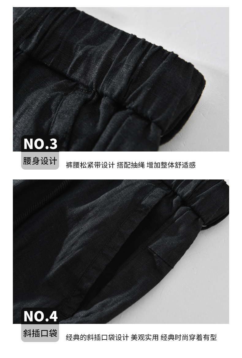1360 봄 여름 린넨 캐주얼 바지 남성용 일본식 신선한 솔리드 컬러 탄성 허리 드로스트링 린넨 스트레이트 바지 남성용스토어 가기