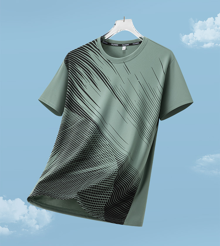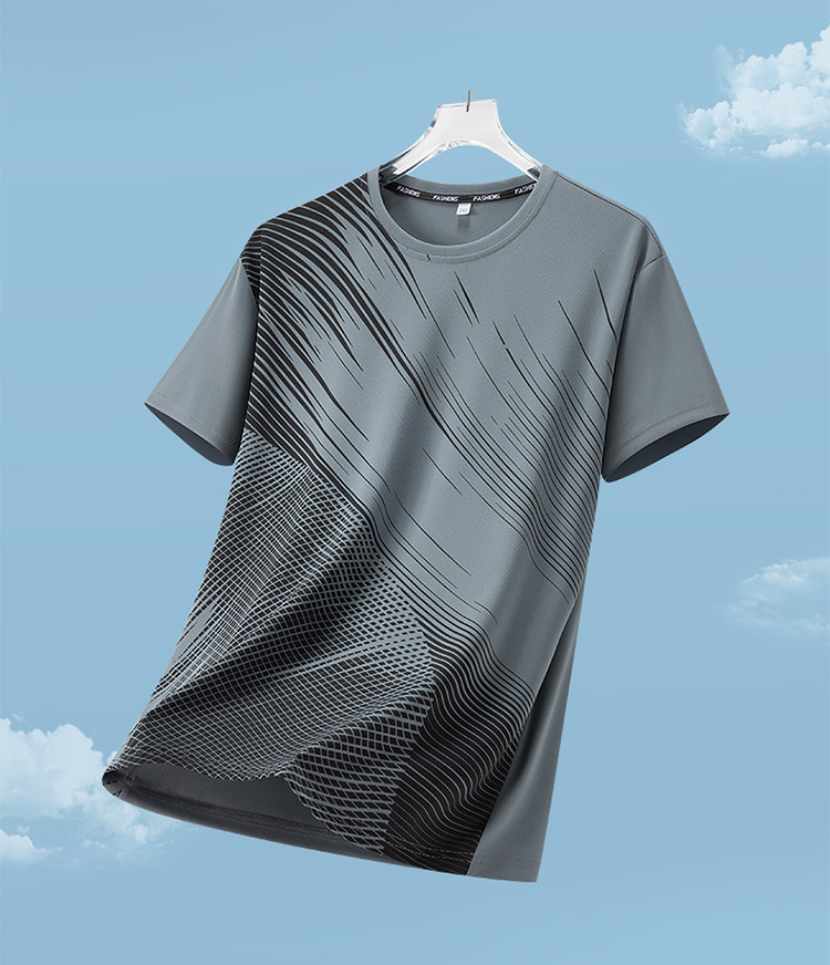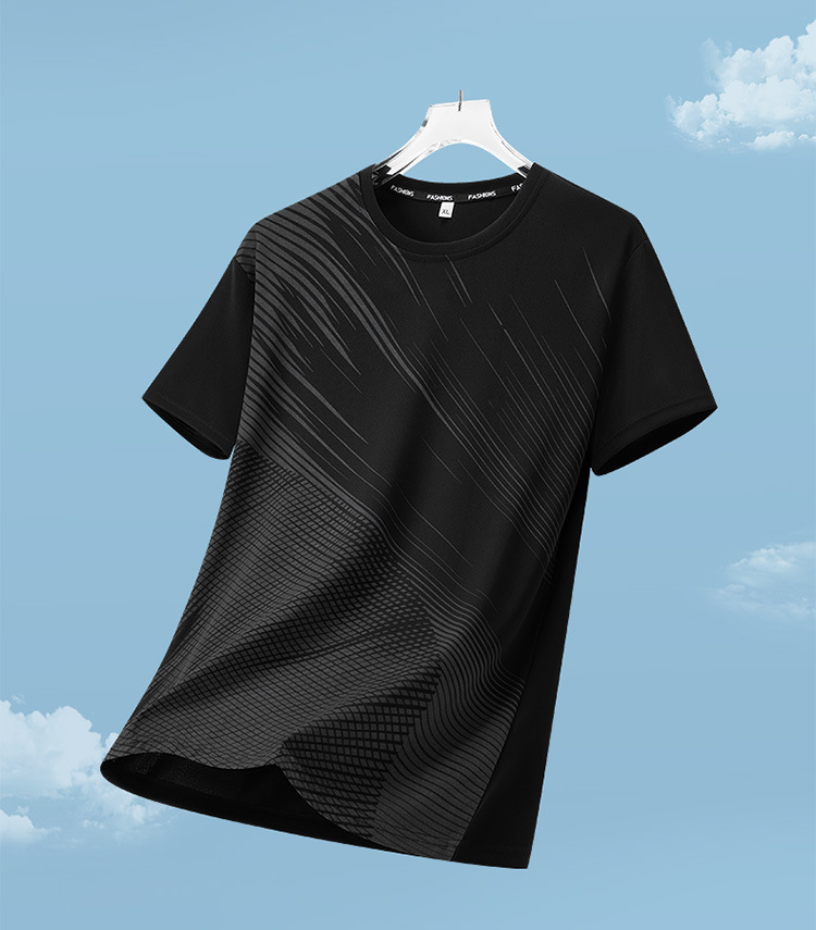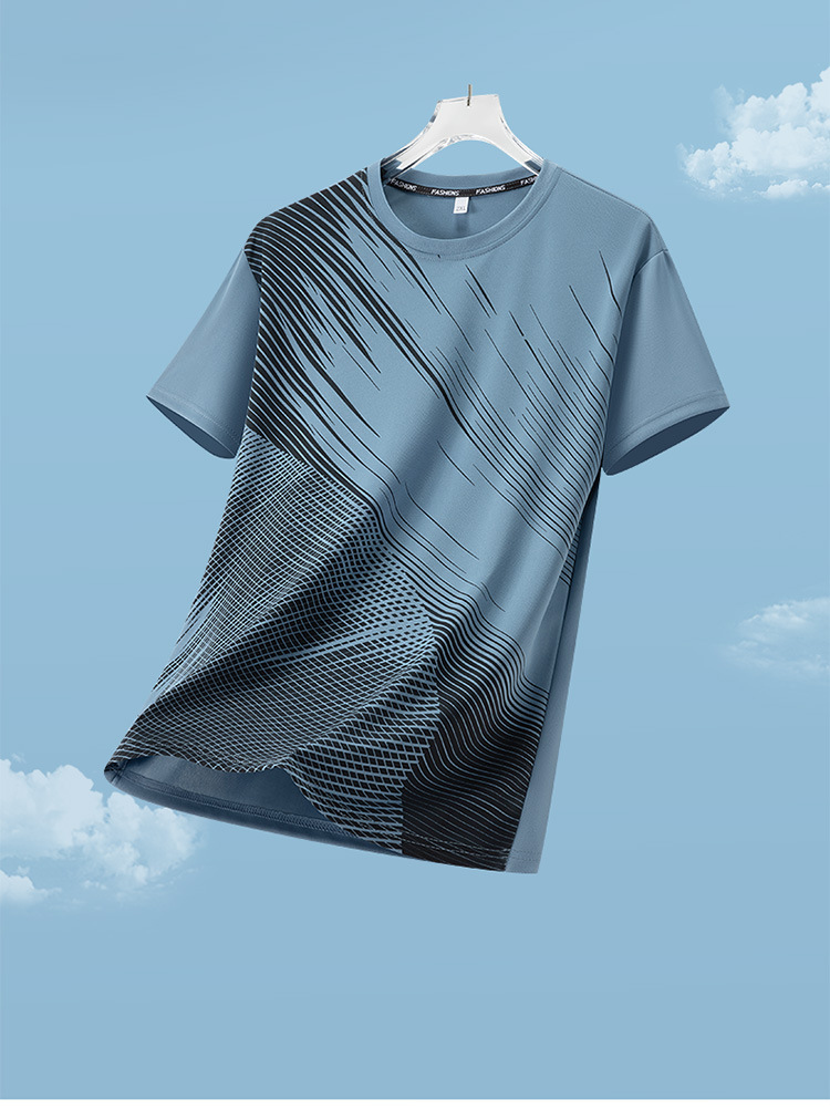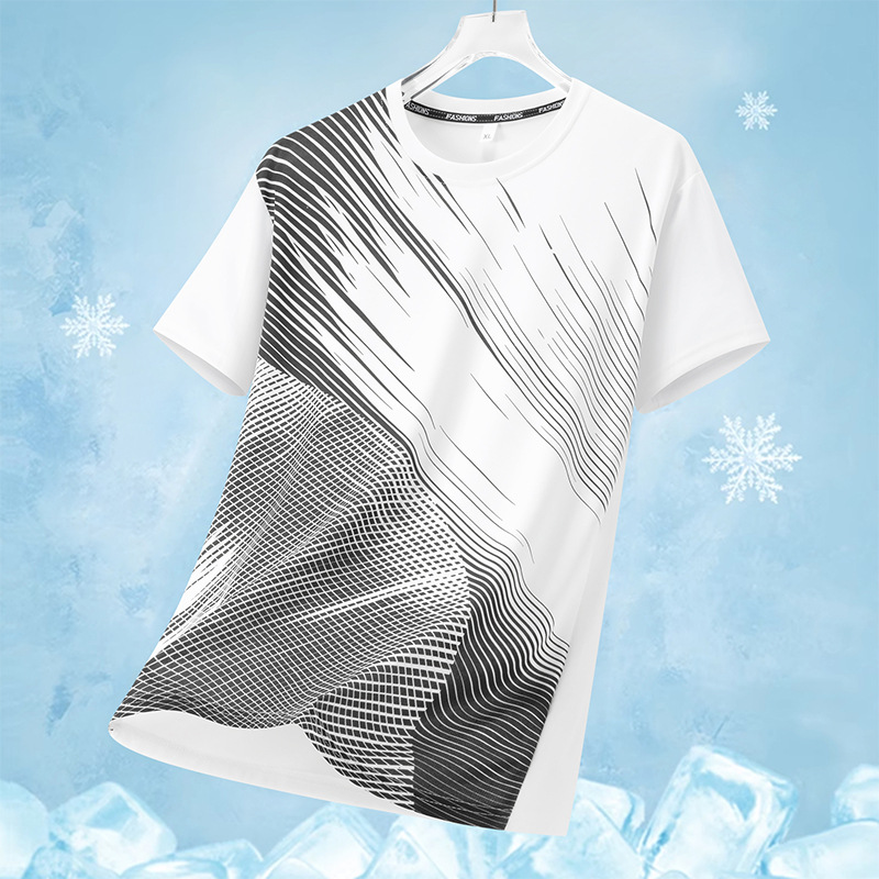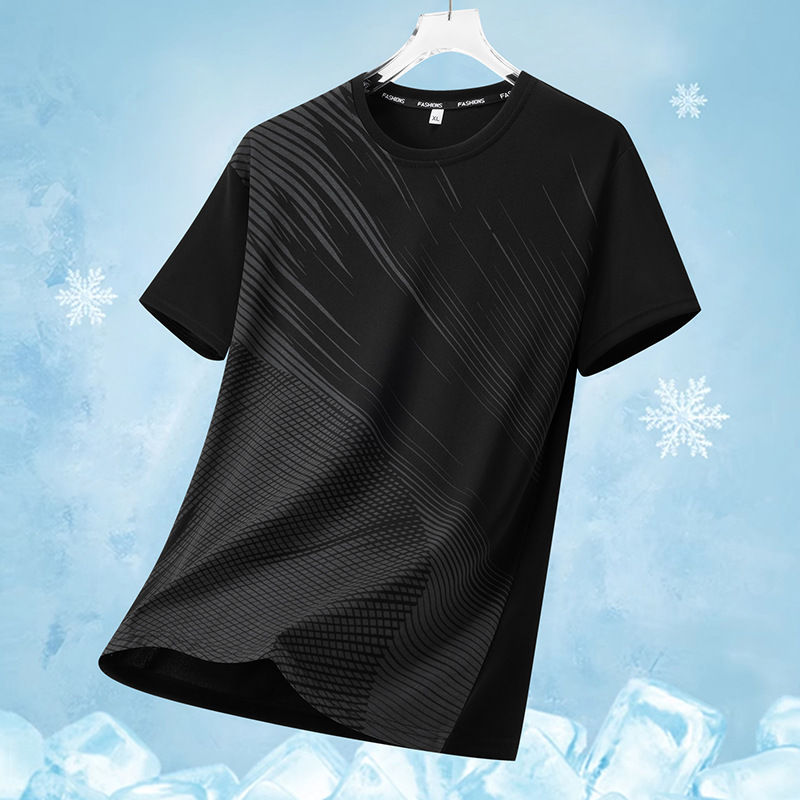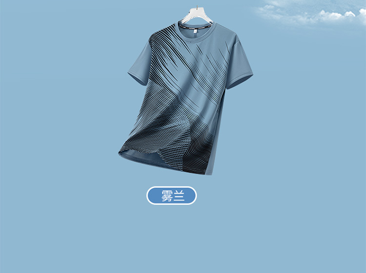 크로스보더 남성용 아웃도어 아이스 실크 속건 반팔 티셔츠 트렌디하고 개성 있는 캐주얼 라운드넥 스포츠 러닝 그라데이션 탑